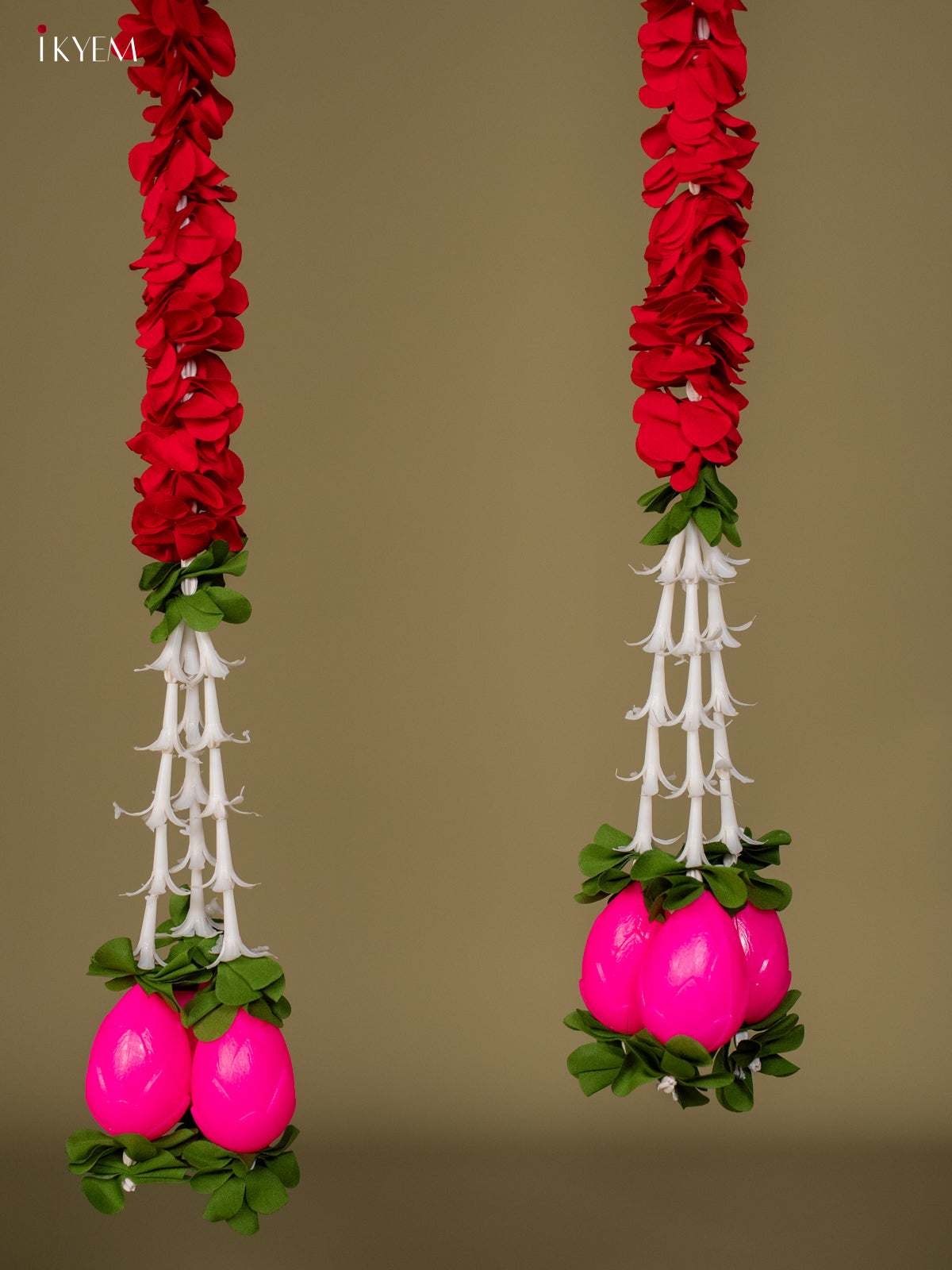 - Enhance your festive and ceremonial spaces with this Artificial Flowers Toran in red and pink.