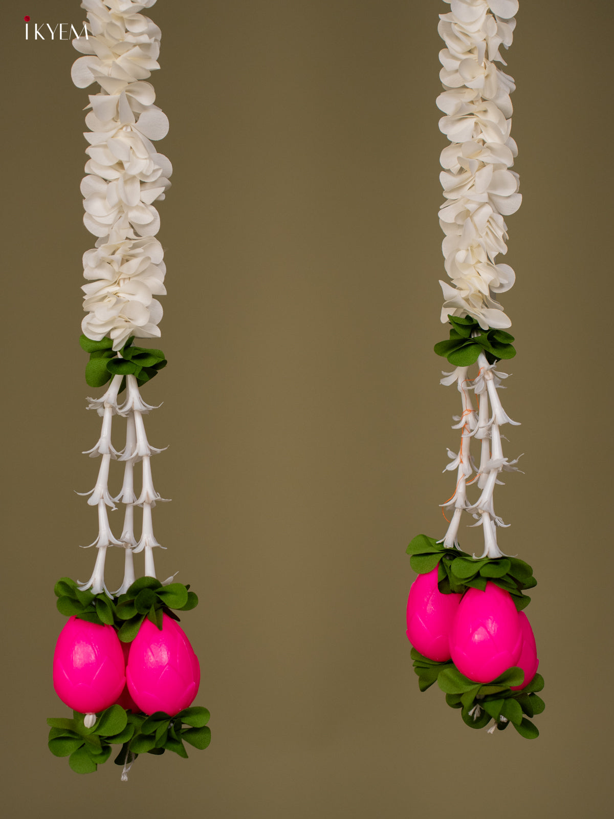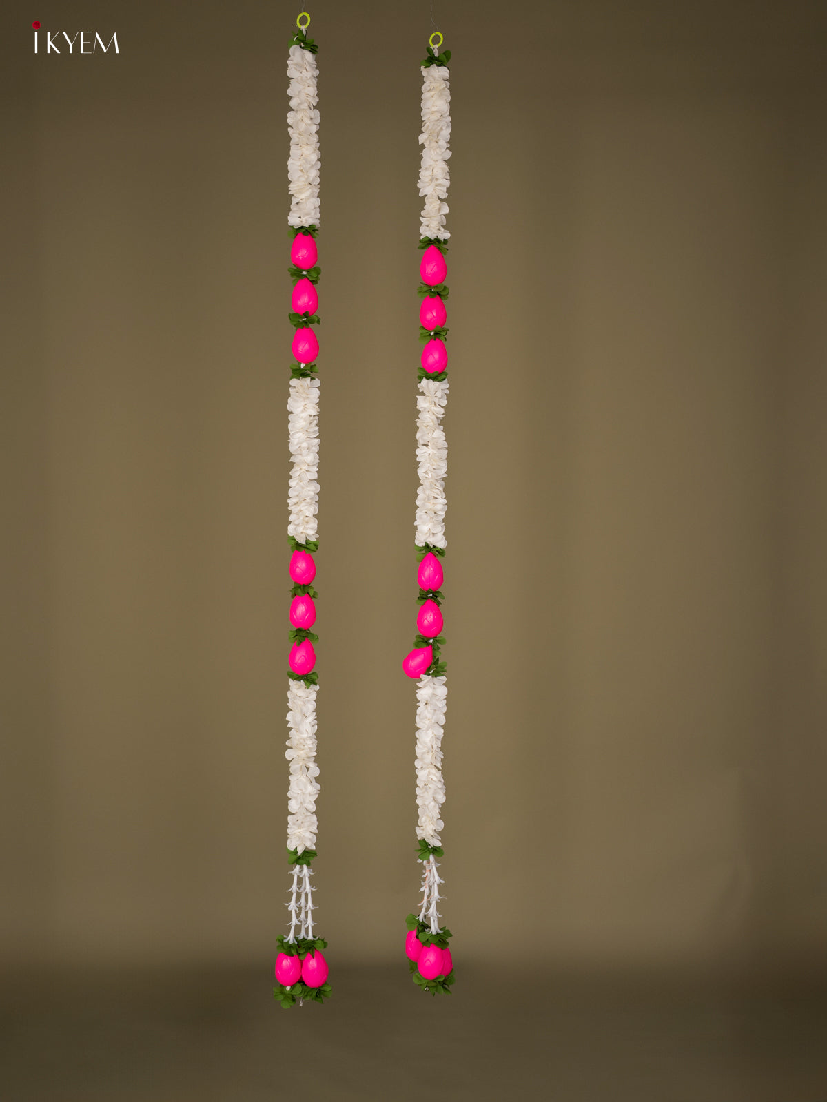 - Enhance your festive and ceremonial spaces with this Artificial Flowers Toran in white and pink.
