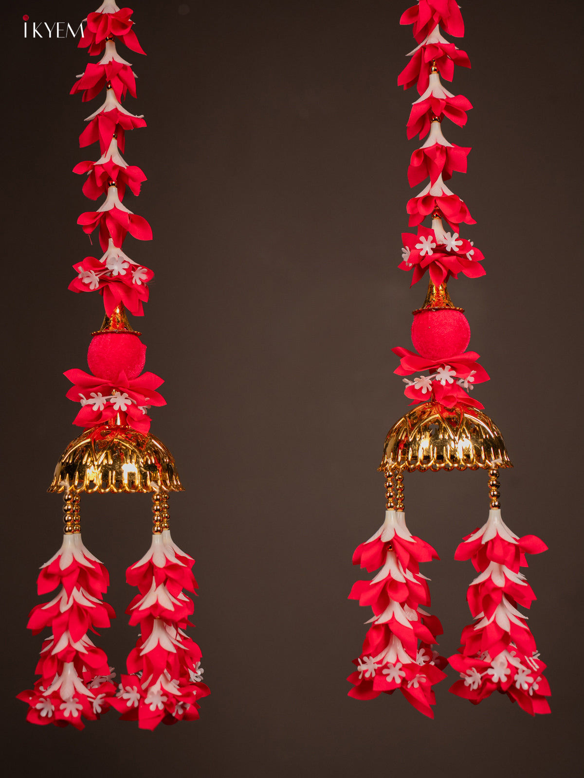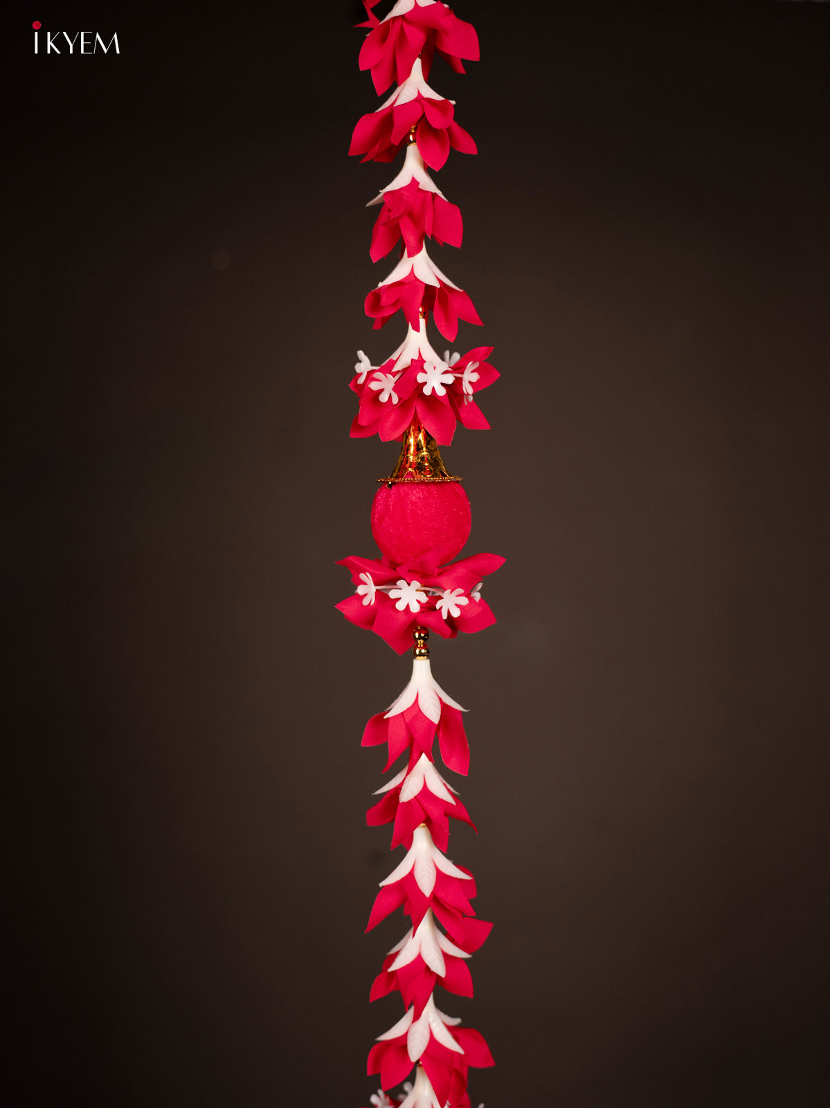 - Enhance your pooja space or any special occasion with this elegant artificial flower Toran in dark pink and white.