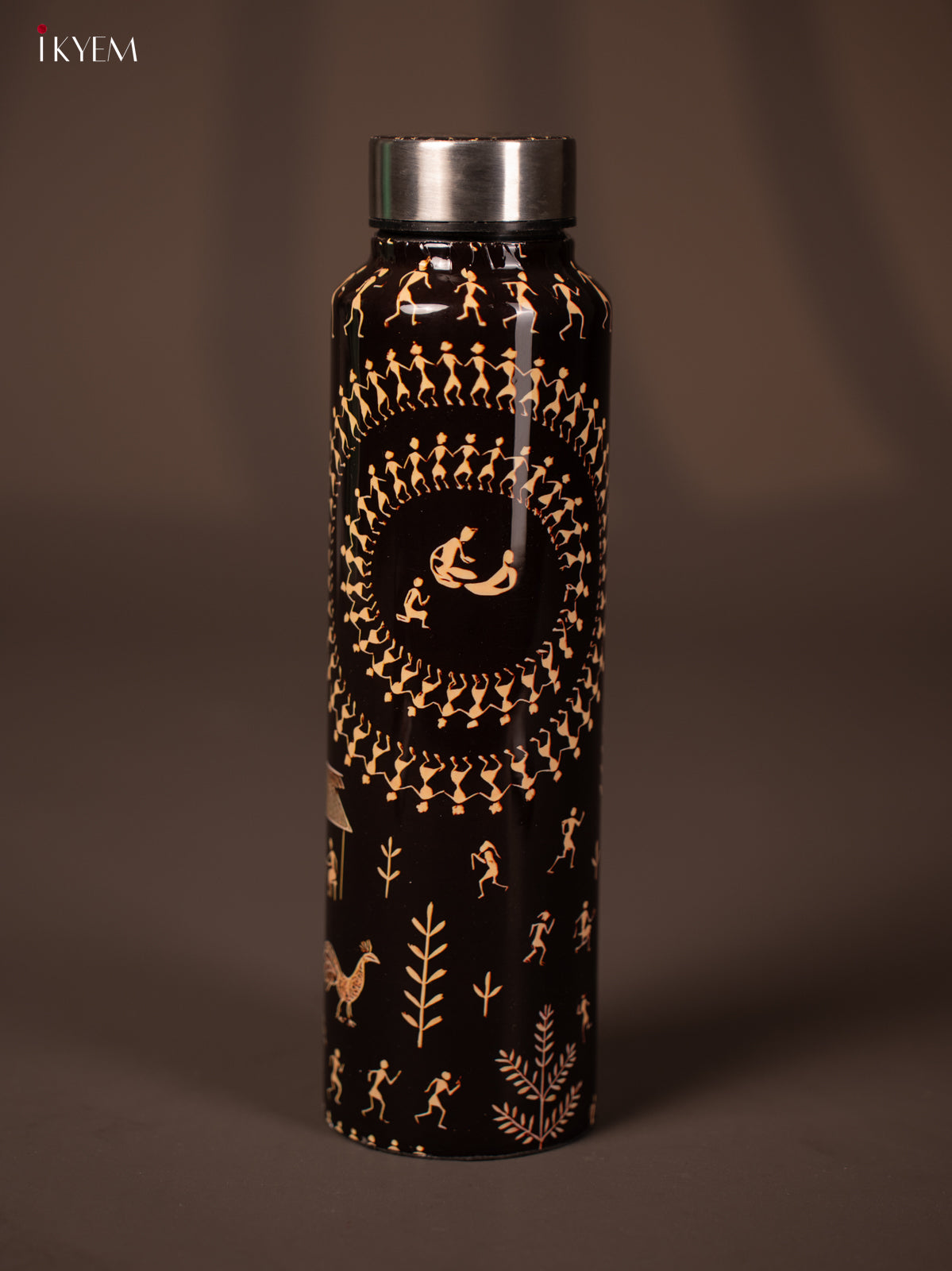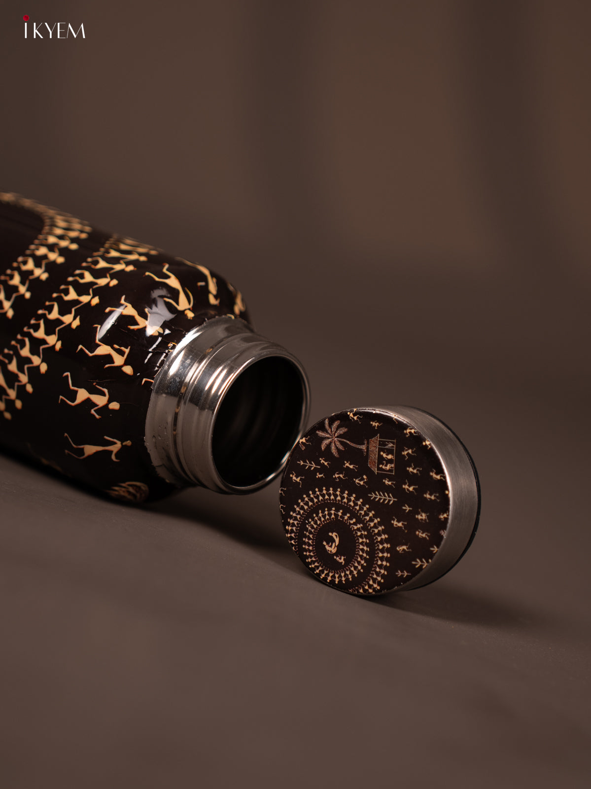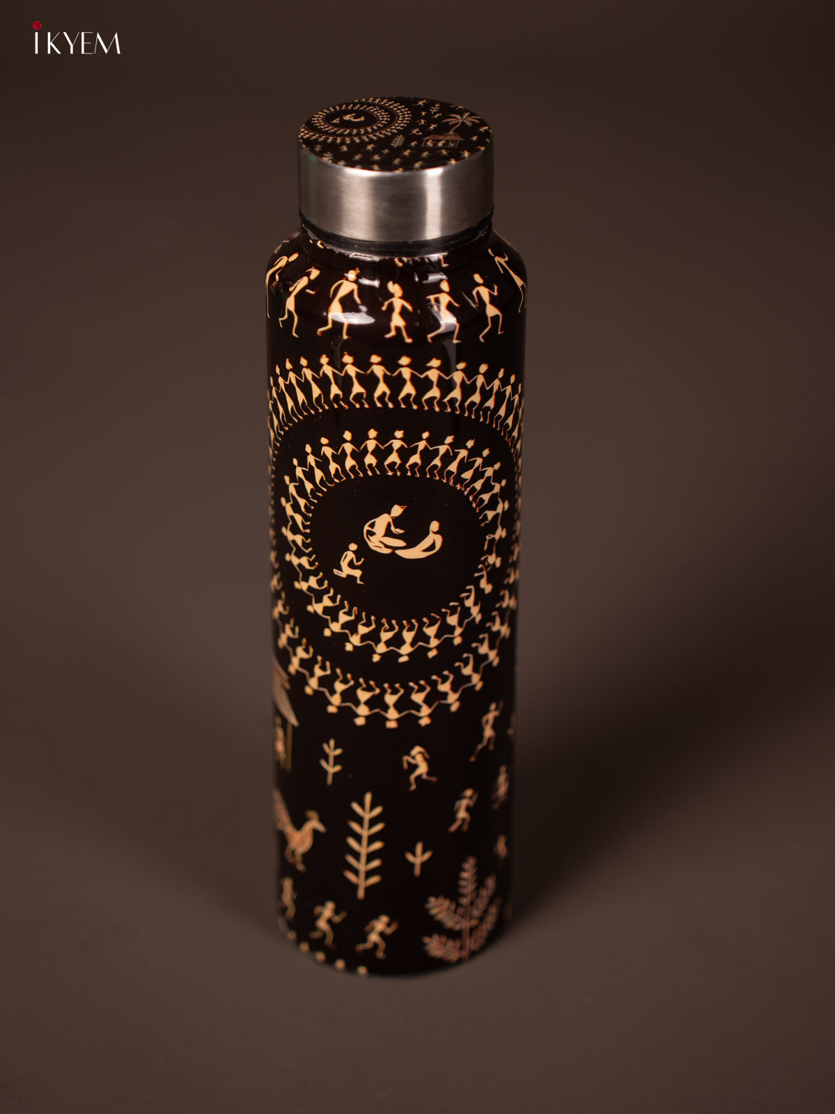 - This stainless-steel water bottle showcases a unique Warli design through precise digital printing, blending traditional artistry with contemporary style.