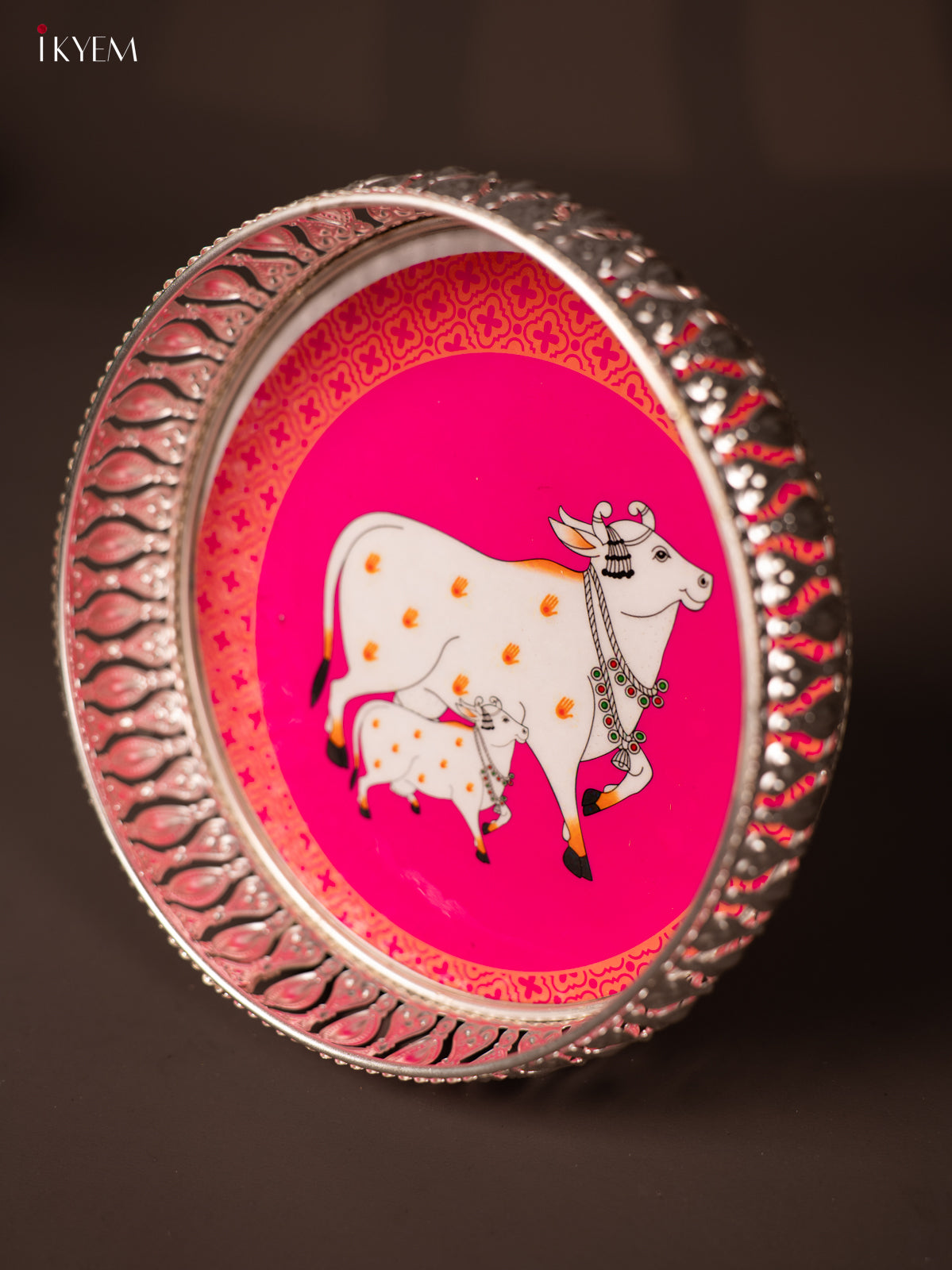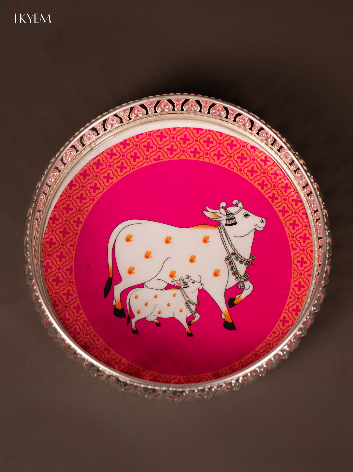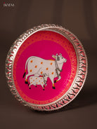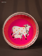 Digital Printed German Silver Tray - Cow& calf pink - 8 inch - KG23136