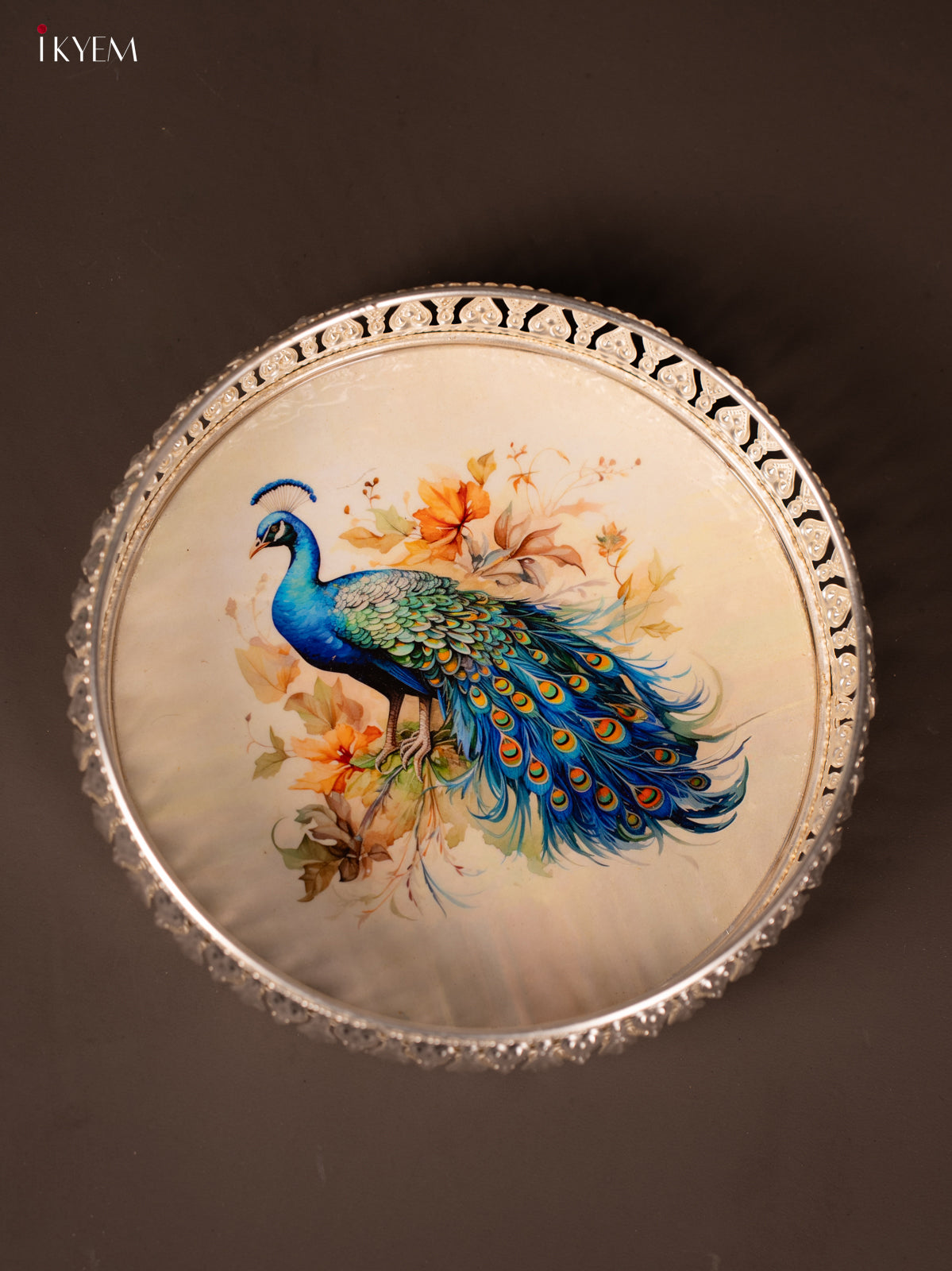 Digital Printed German Silver Tray - Peacock - 8 inch - KG23140