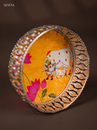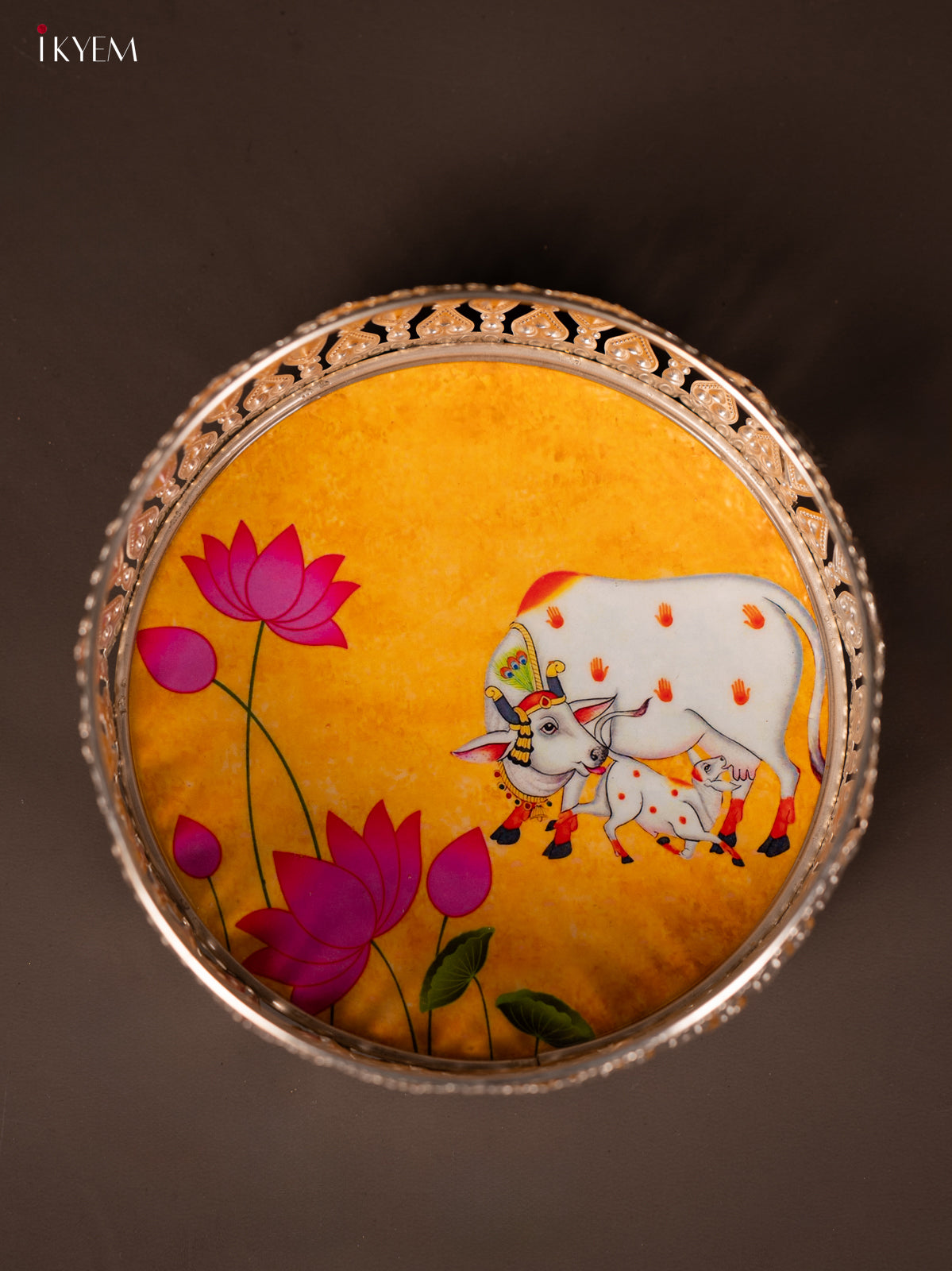Digital Printed German Silver Tray - Cow & calf yellow - 6 inch - KG23151
