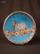 Digital Printed German Silver Tray - Cow sky blue - 6 inch - KG23152