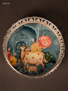 Digital Printed German Silver Tray - Cow & calf teal - 6 inch - KG23153