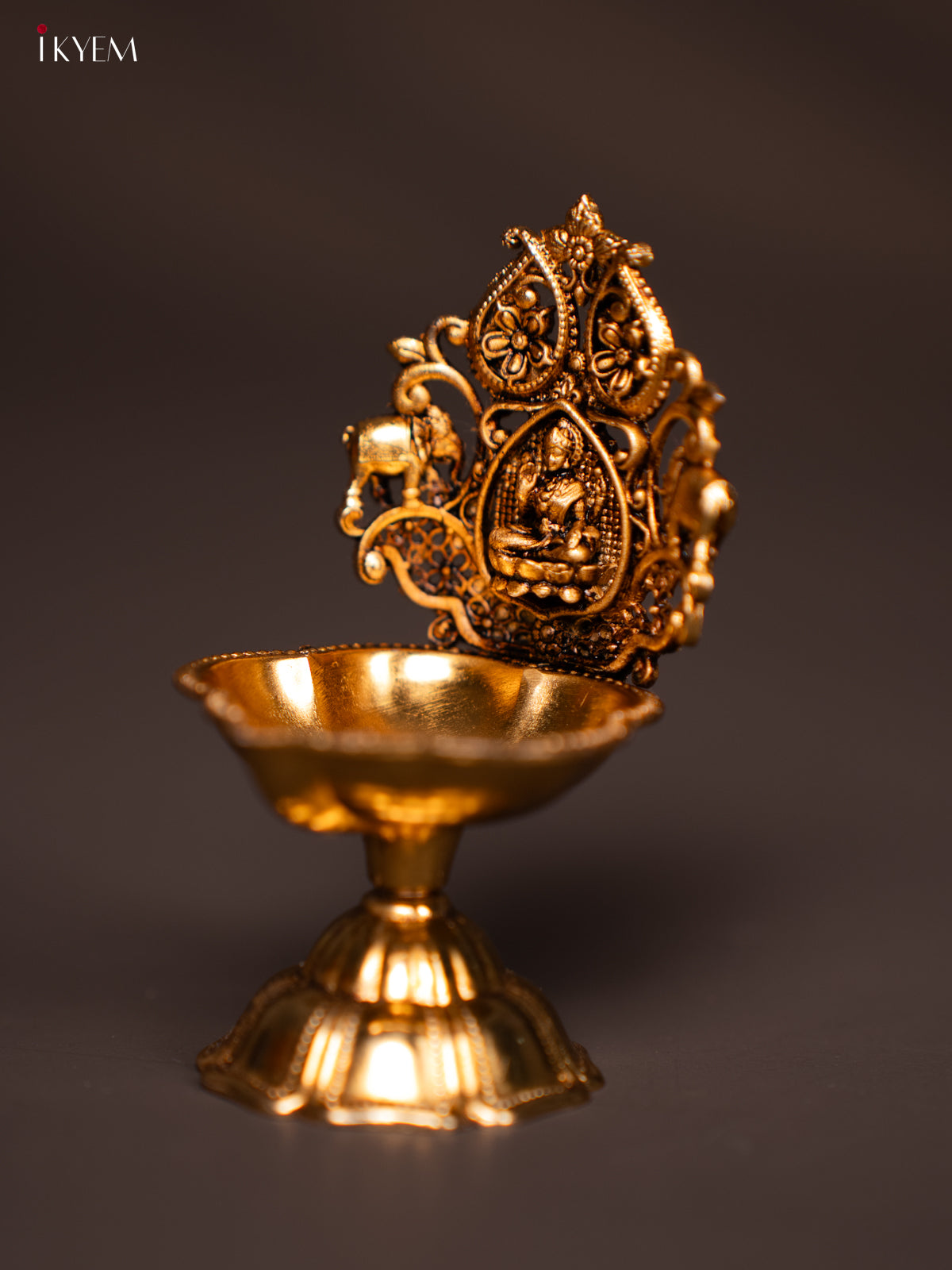 - Enhance your traditional pooja ceremonies with this Brass Diya adorned with the auspicious Gajalakshmi motif.