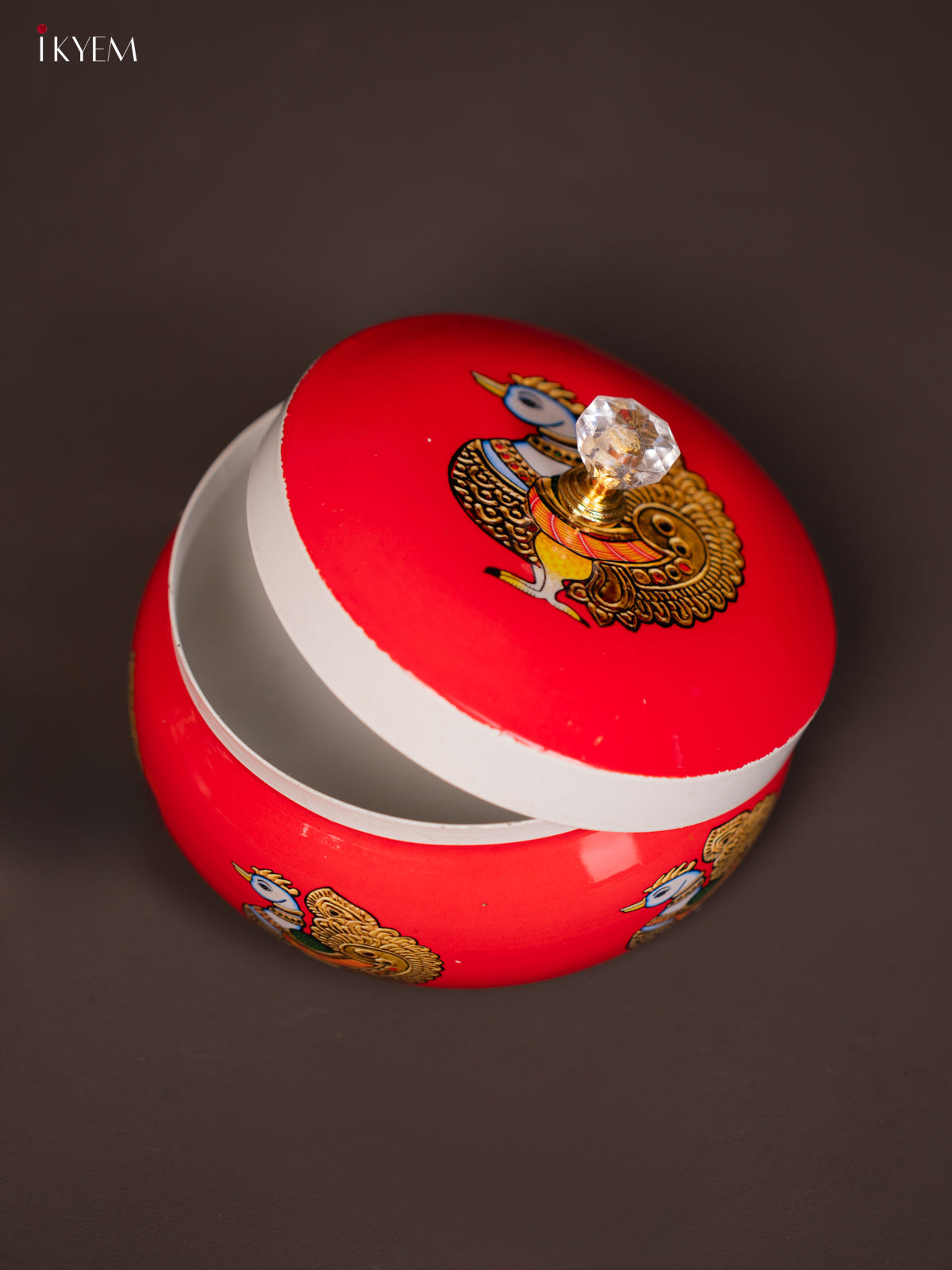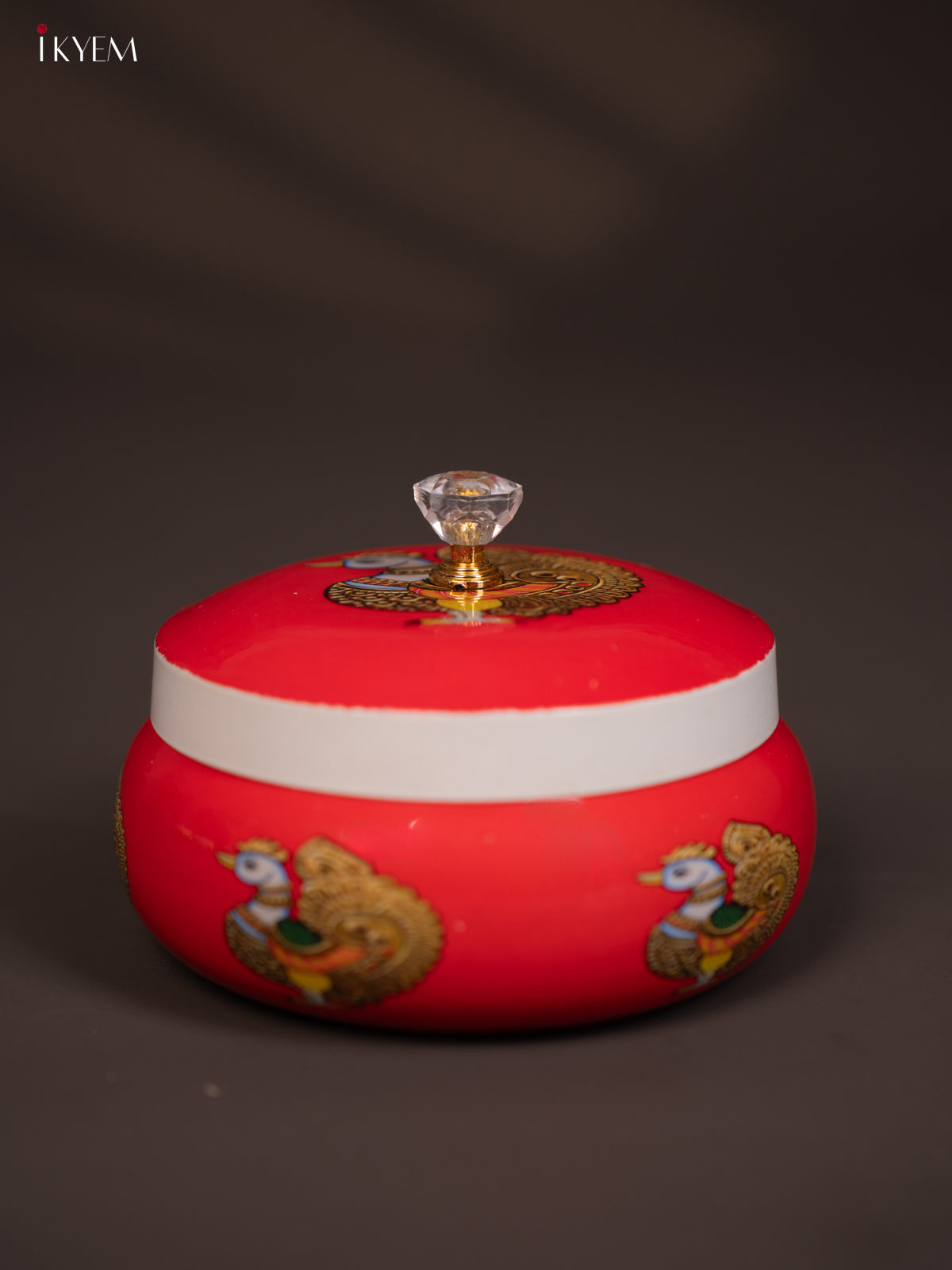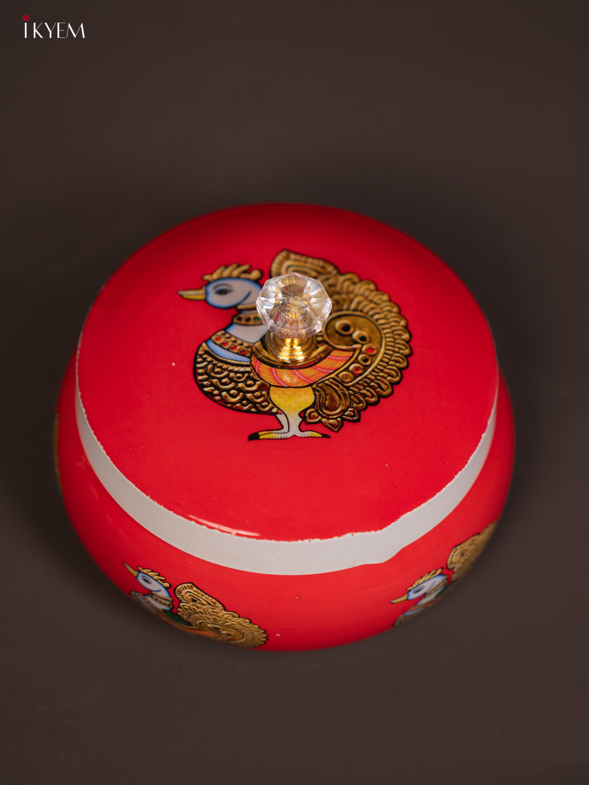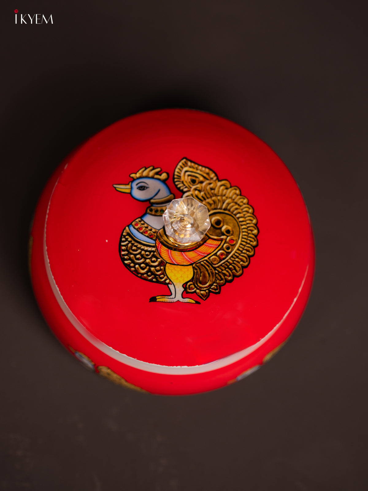 - Its vibrant red color and intricate Annapakshi print add a decorative touch, perfect for gifting or enhancing your home decor.