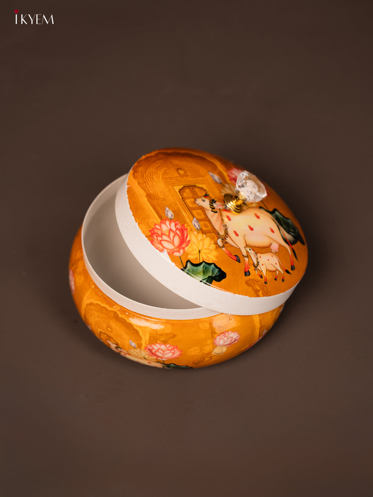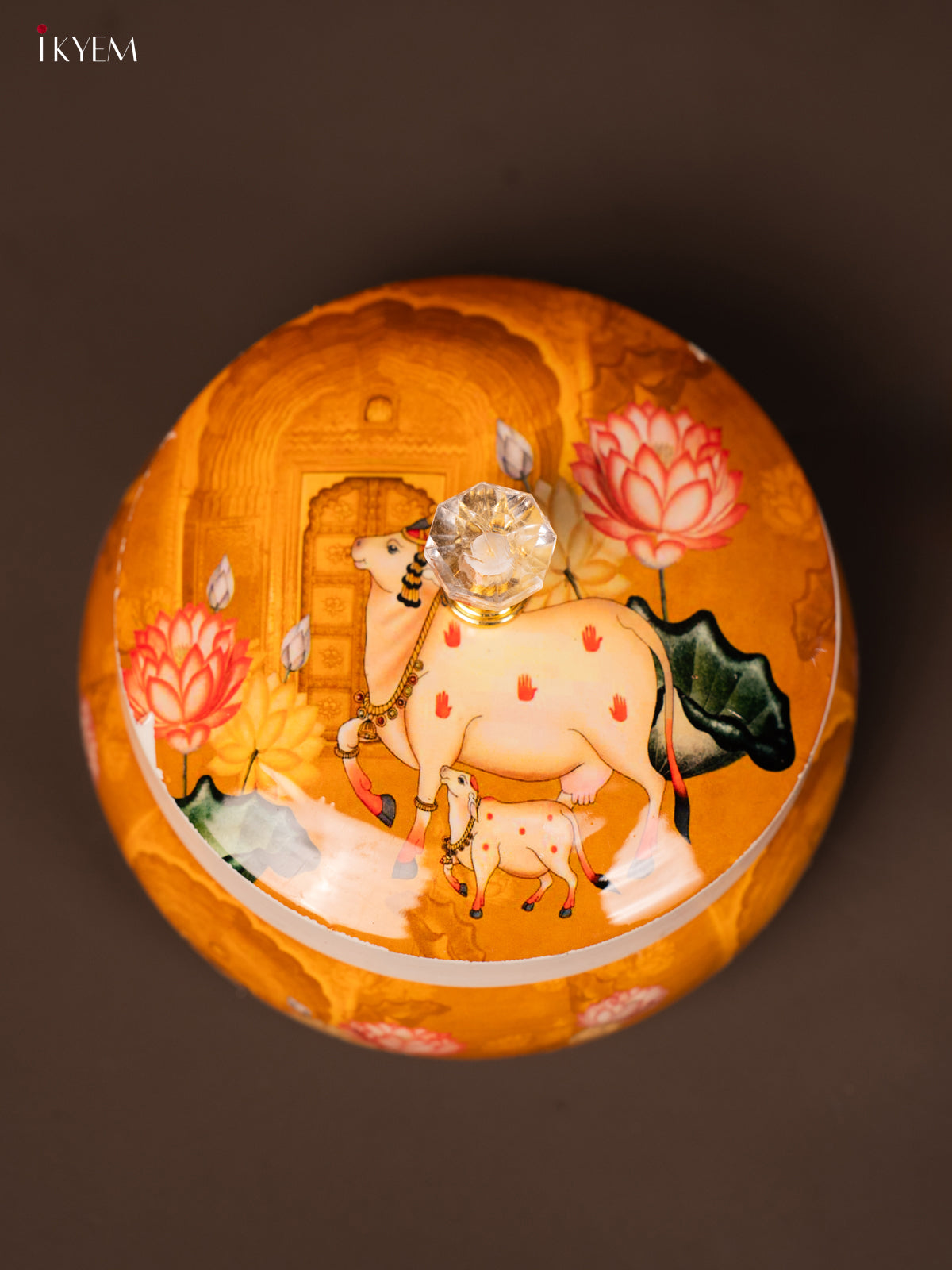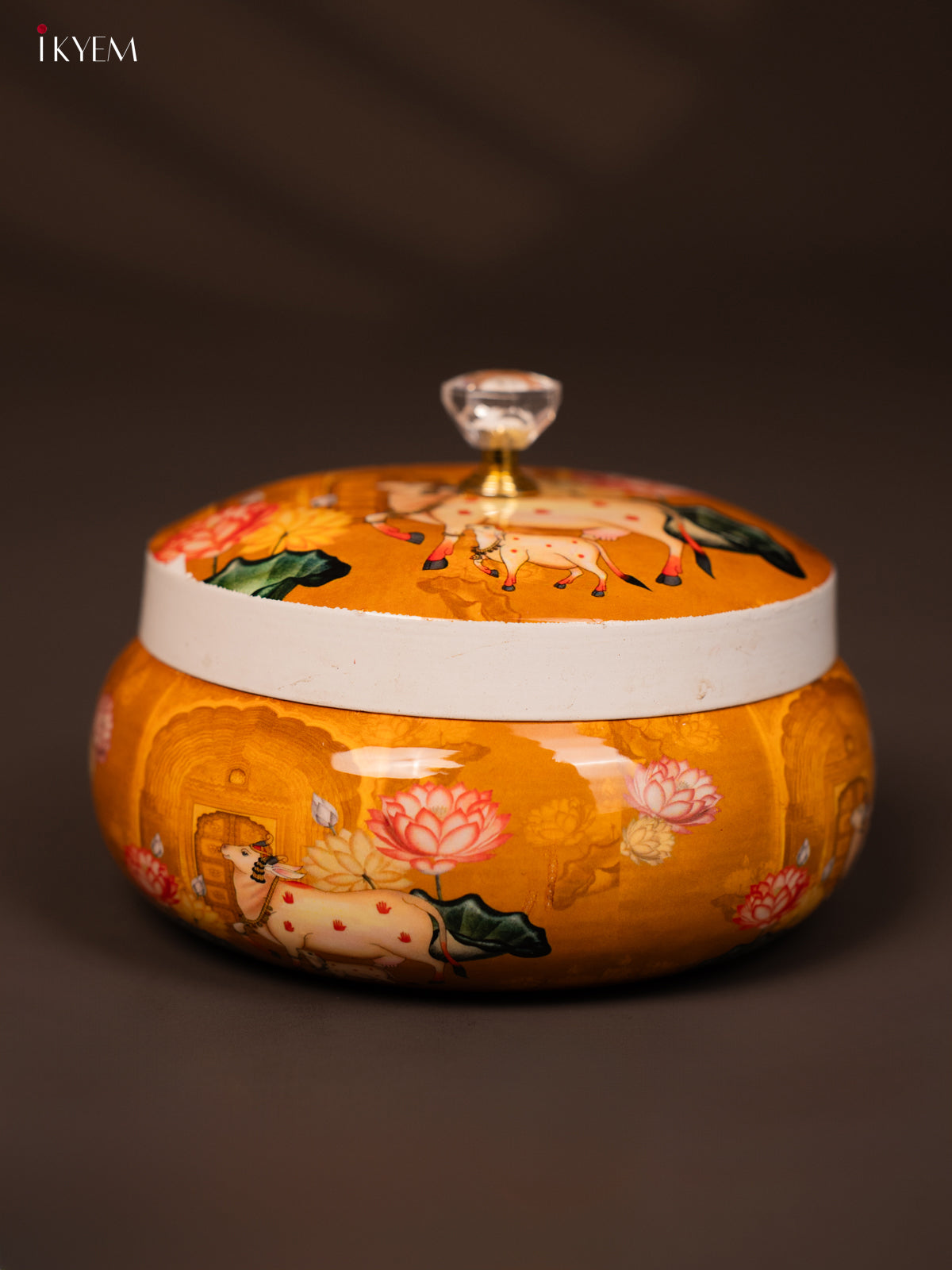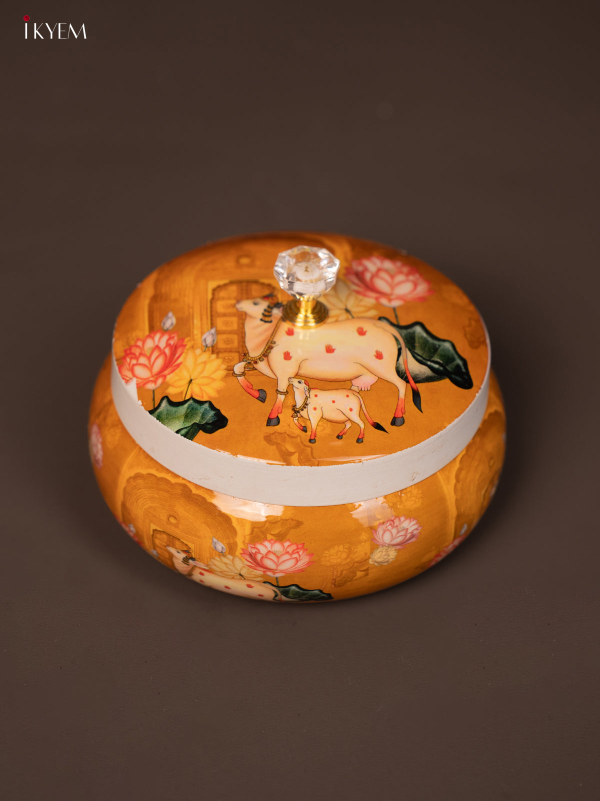 - This Cow & Calf Printed Mustard Round Dry Fruits Jar offers a traditional design perfect for return gifts and festive occasions.