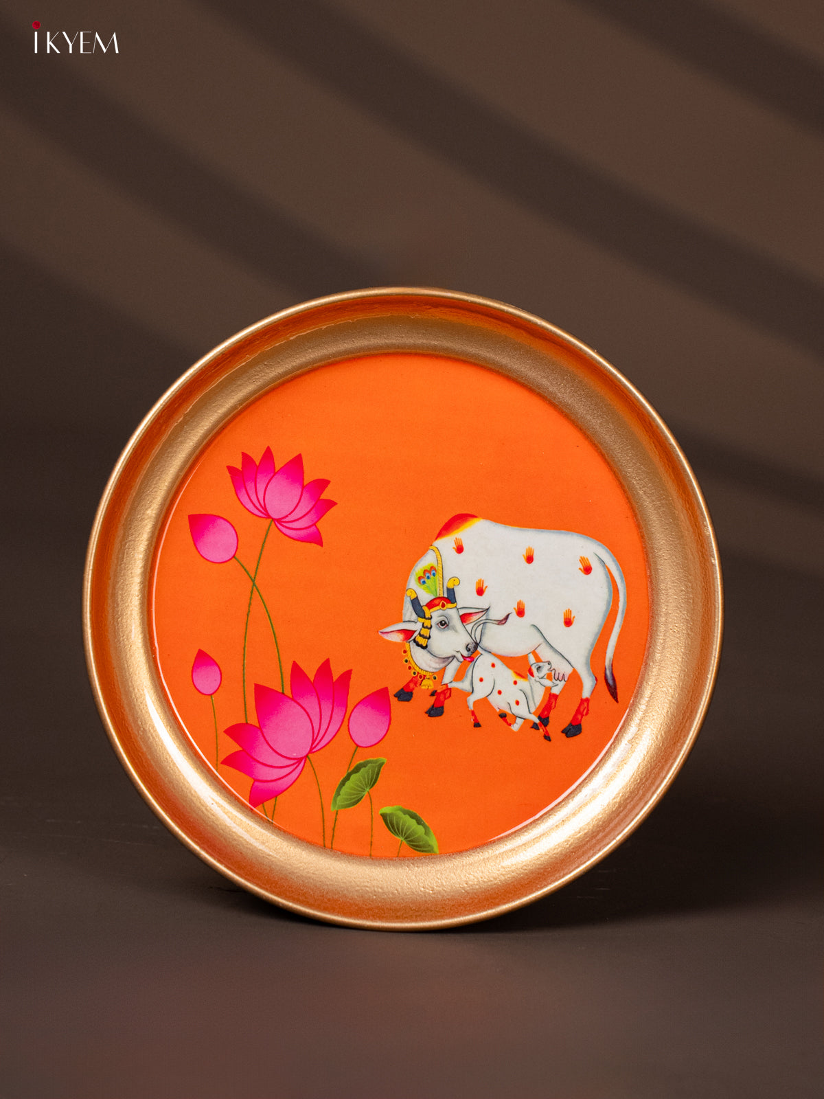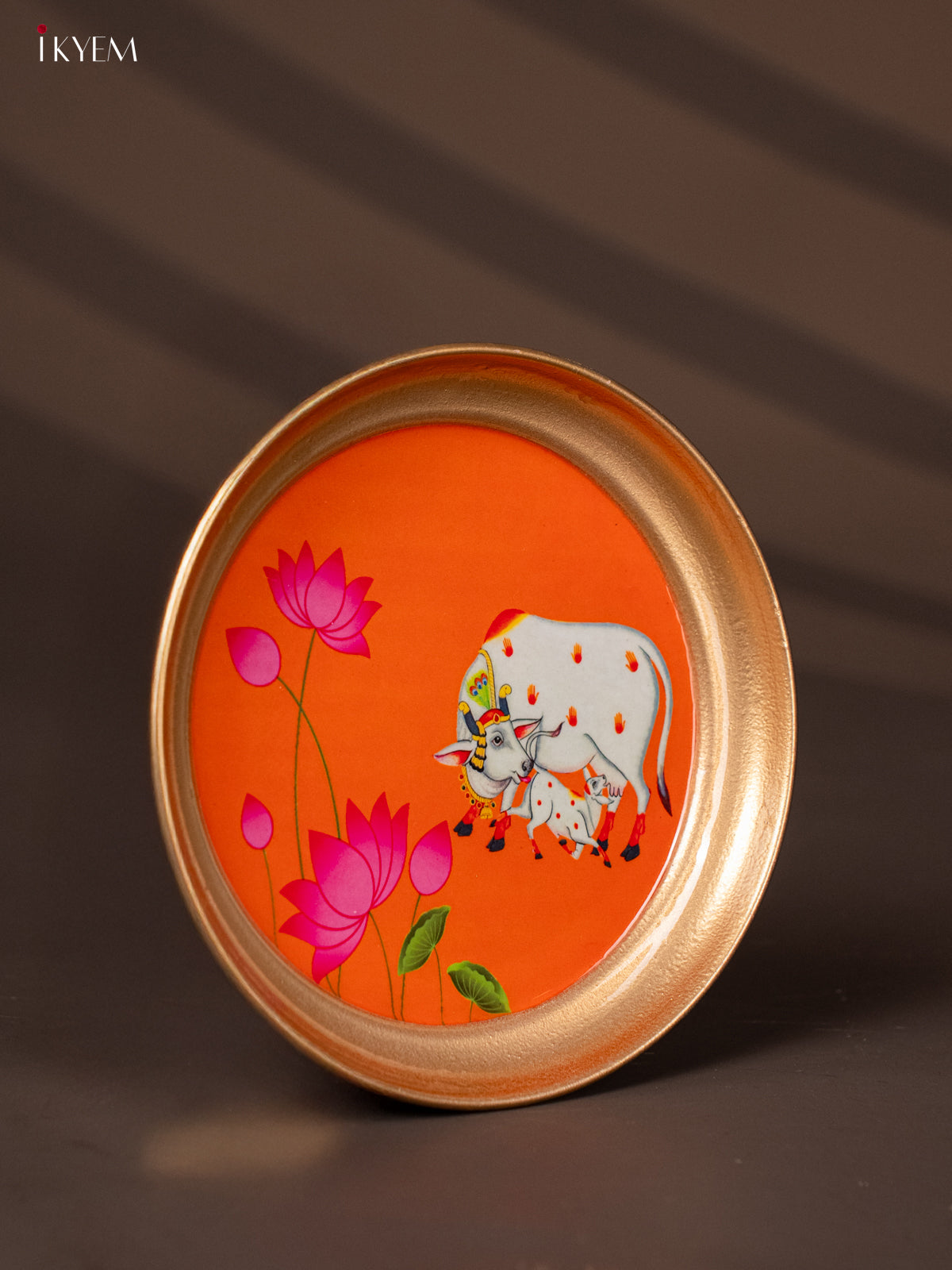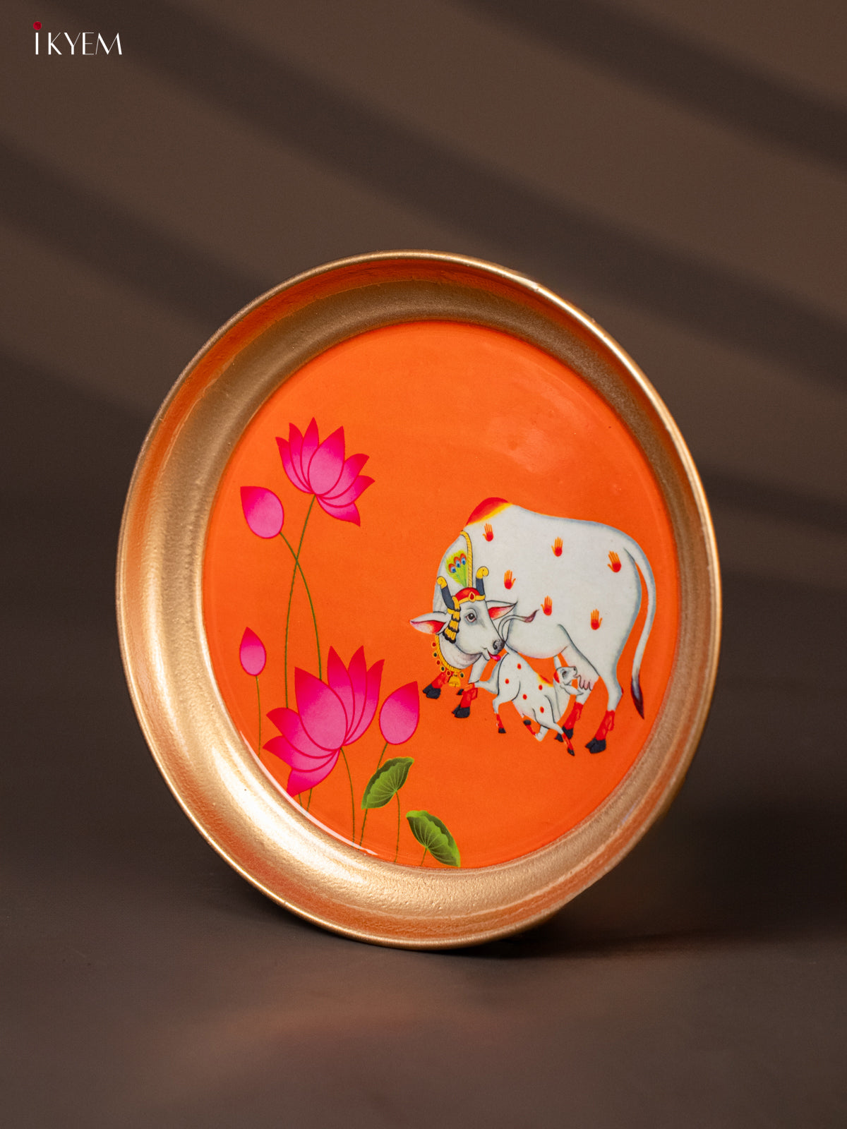 Cow & Calf Printed Orange Copper Coating Plate 6 Inch