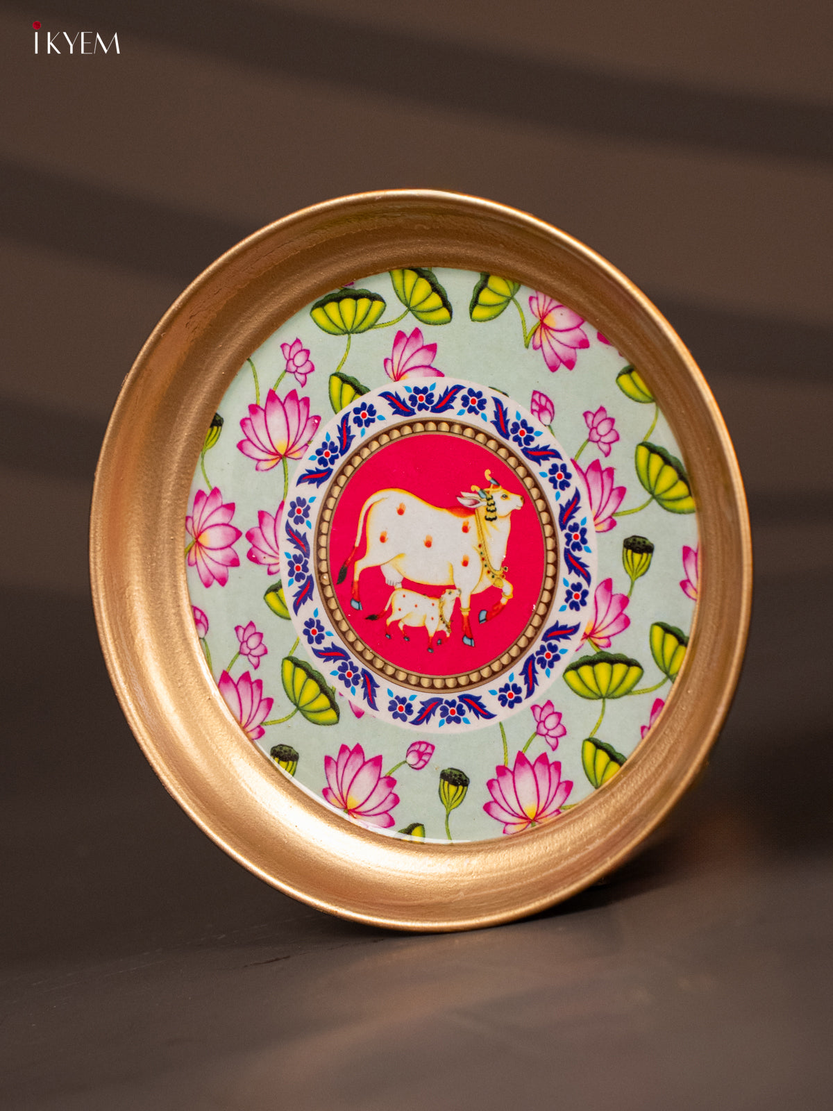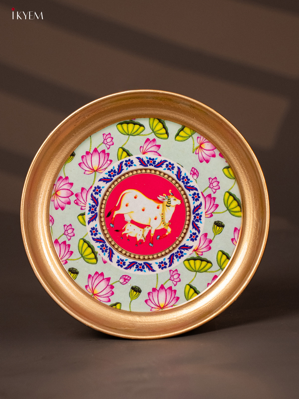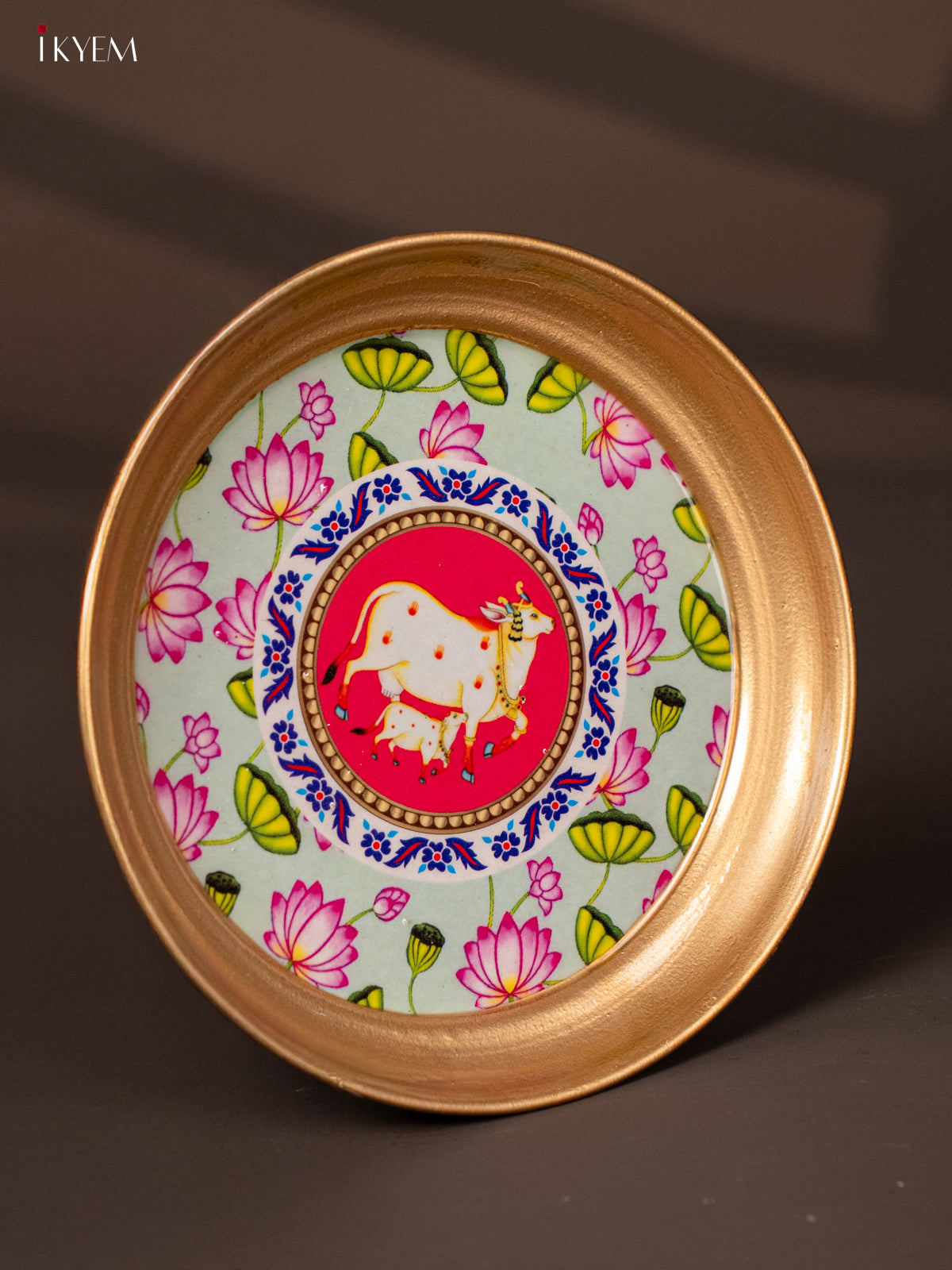 Cow & Calf Lotus Printed Pastel Blue Copper Coating Plate 6 Inch