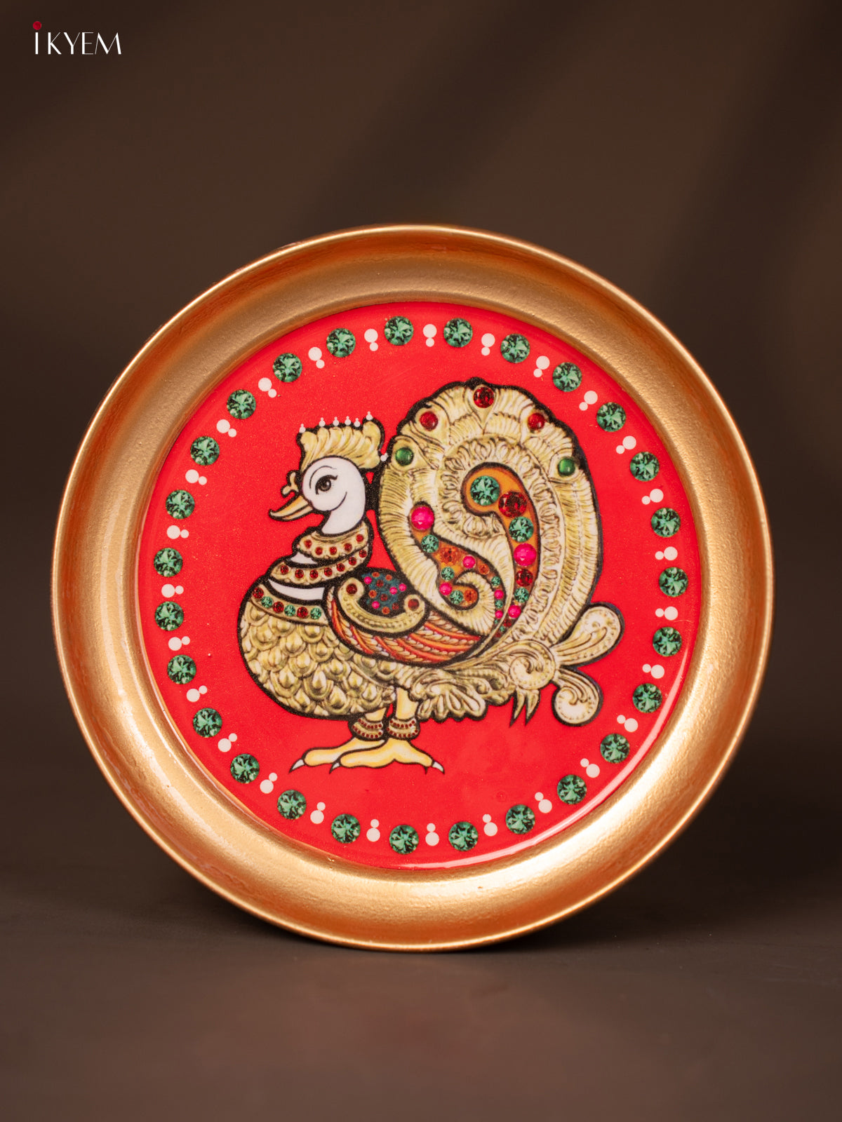 - The Annapakshi Printed Red Brass Plate, 6 inches in diameter, is perfect for pooja celebrations and traditional return gifts.