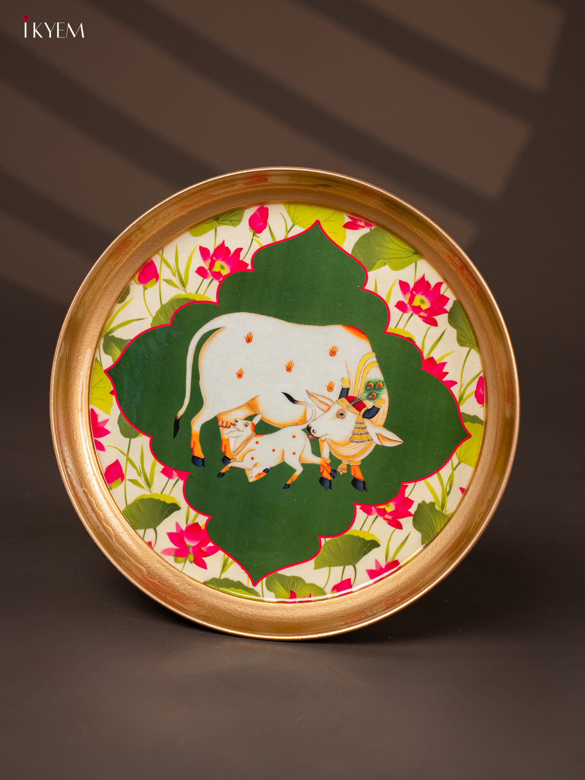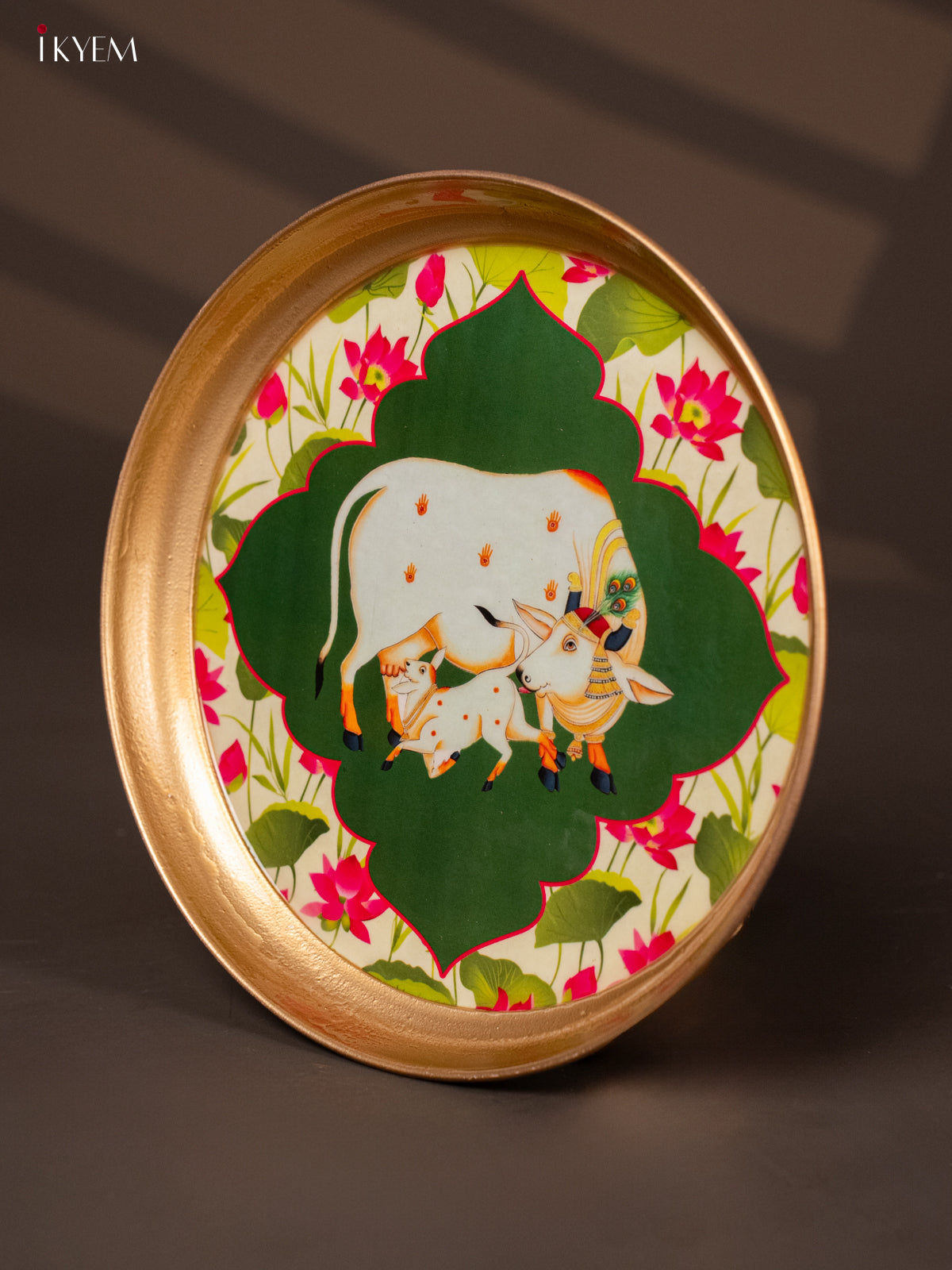 Cow & Calf Printed Green Brass Coated Plate - 8 inches - KG25156