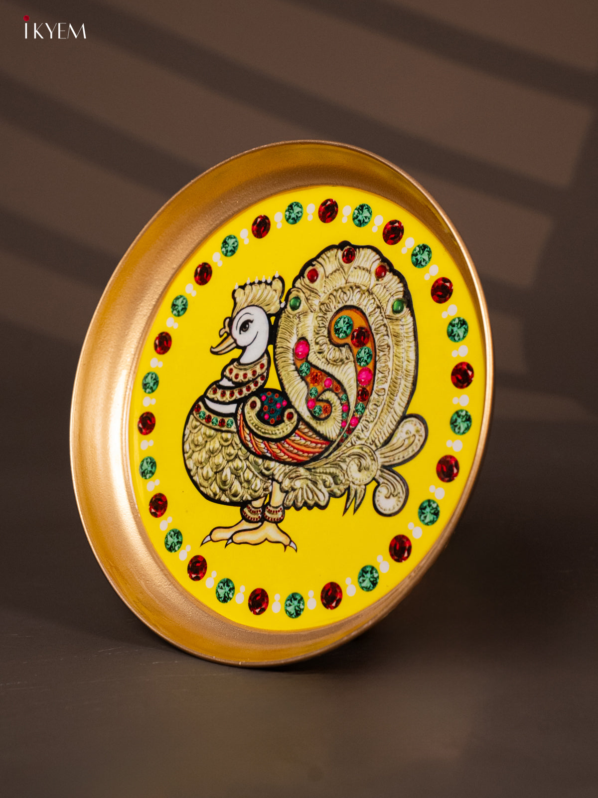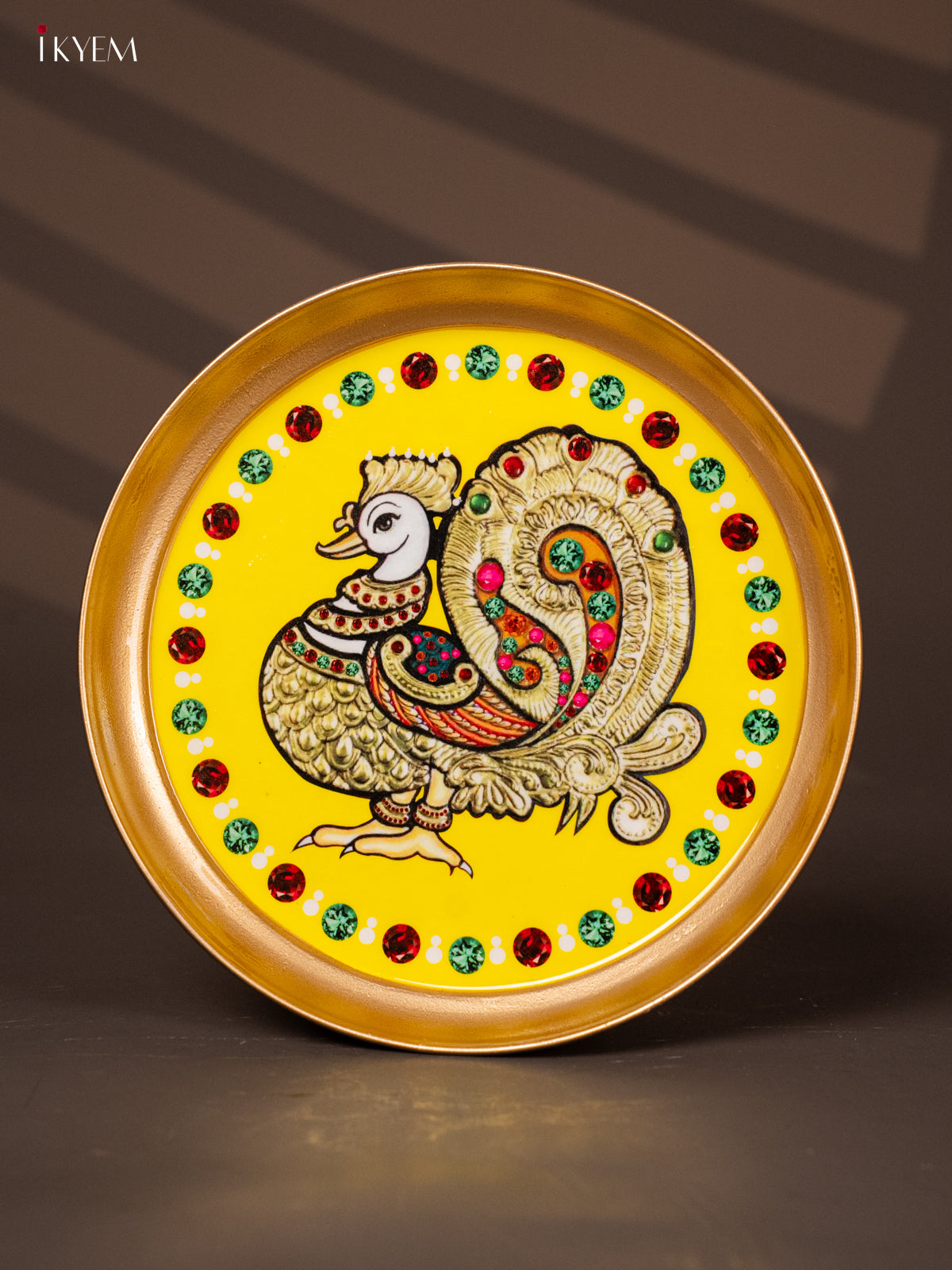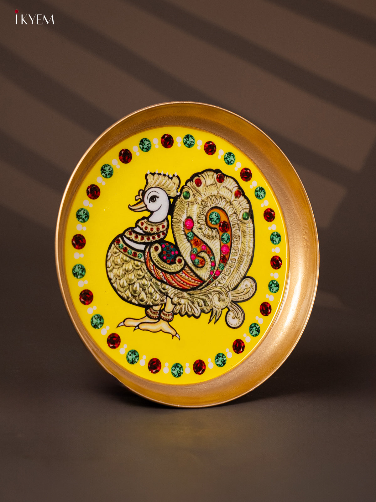 Annapakshi Printed Yellow Brass Coated Plate - 8 Inches - KG25159