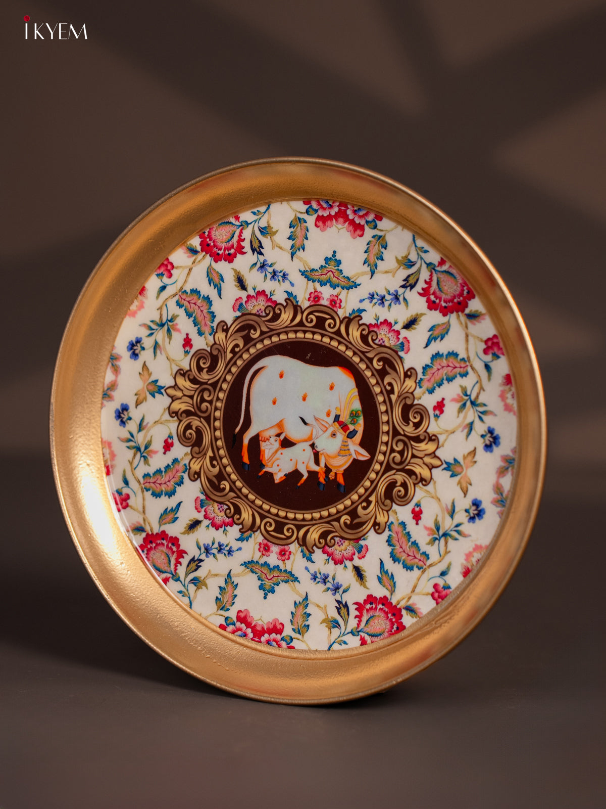 Cow & Calf Printed White Copper Coating Plate 8 Inch