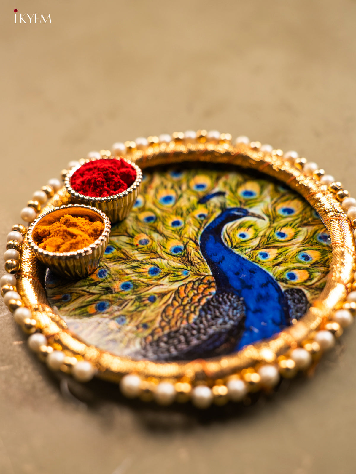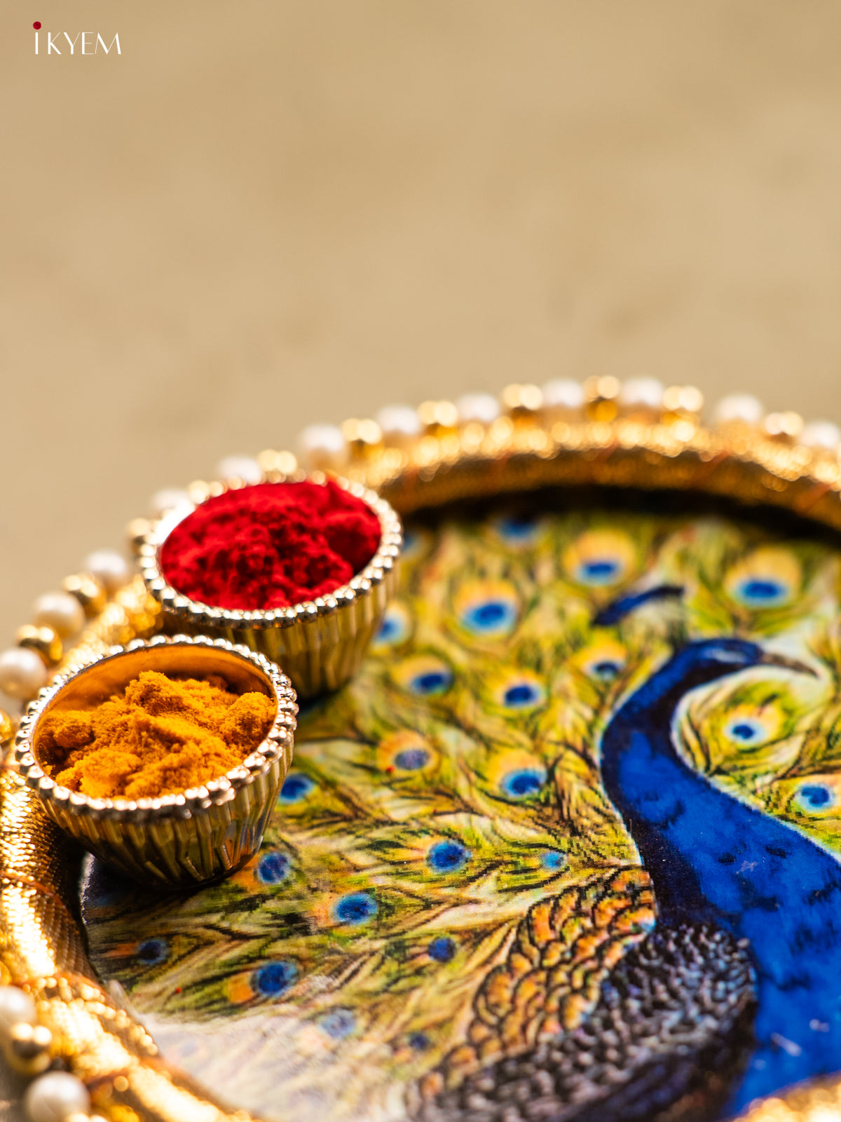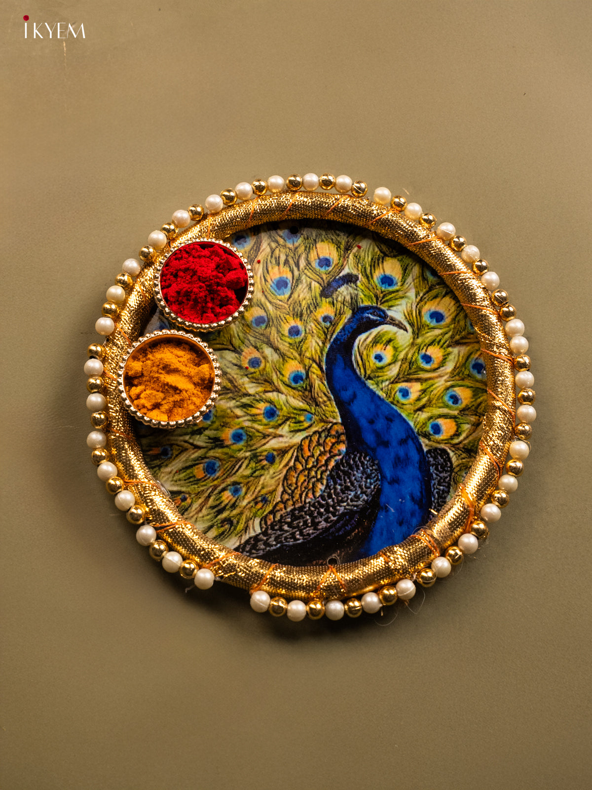 - Enhance your pooja rituals with this elegant Haldi & Kum Kum holder featuring a beautifully crafted peacock design.