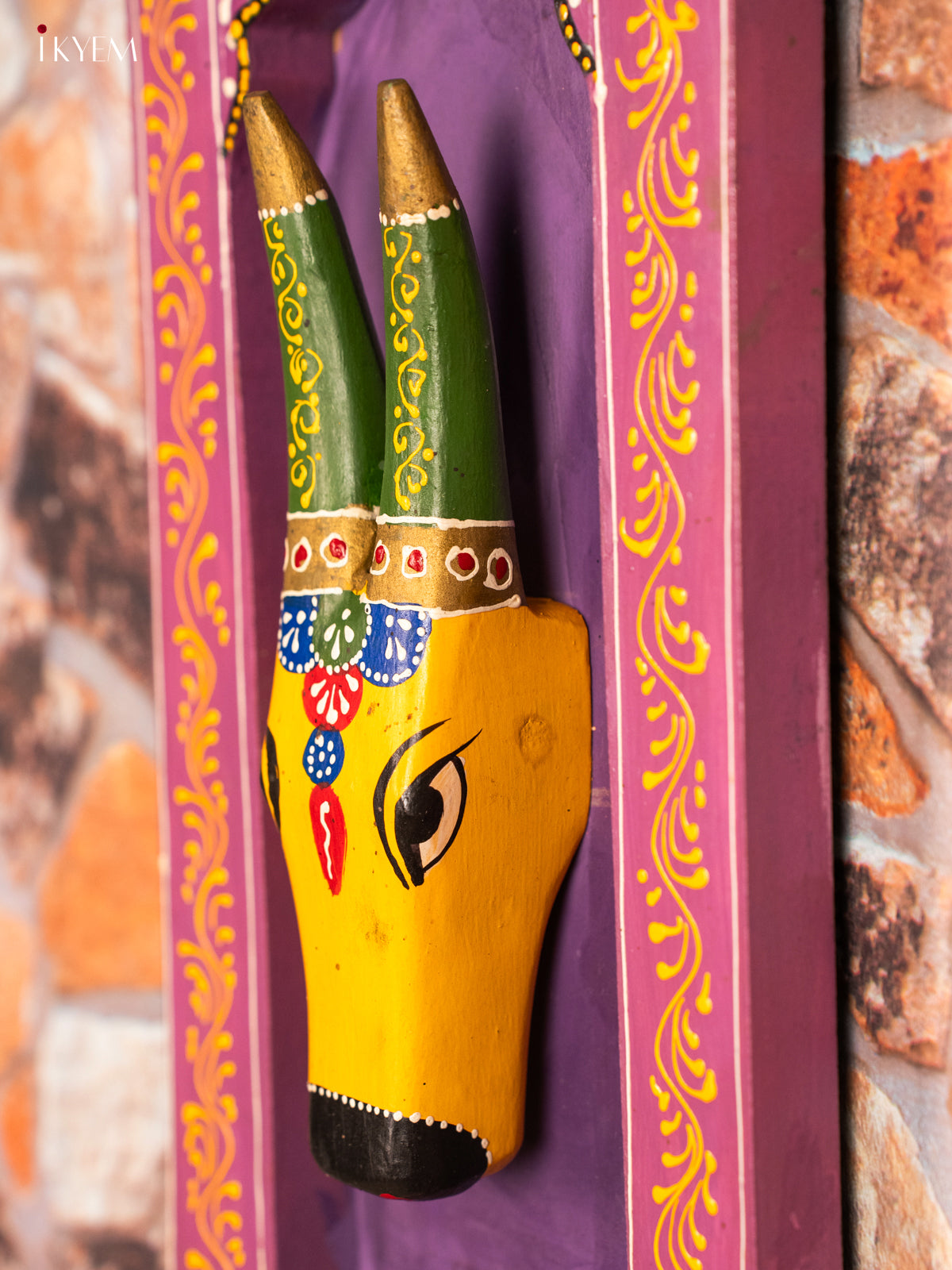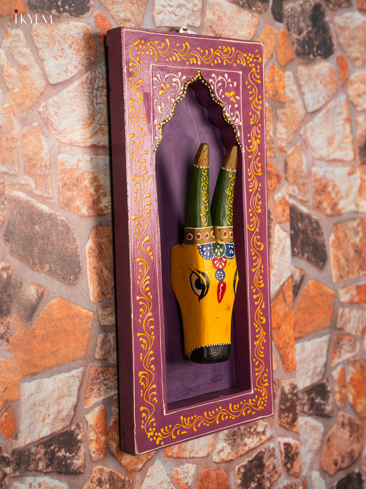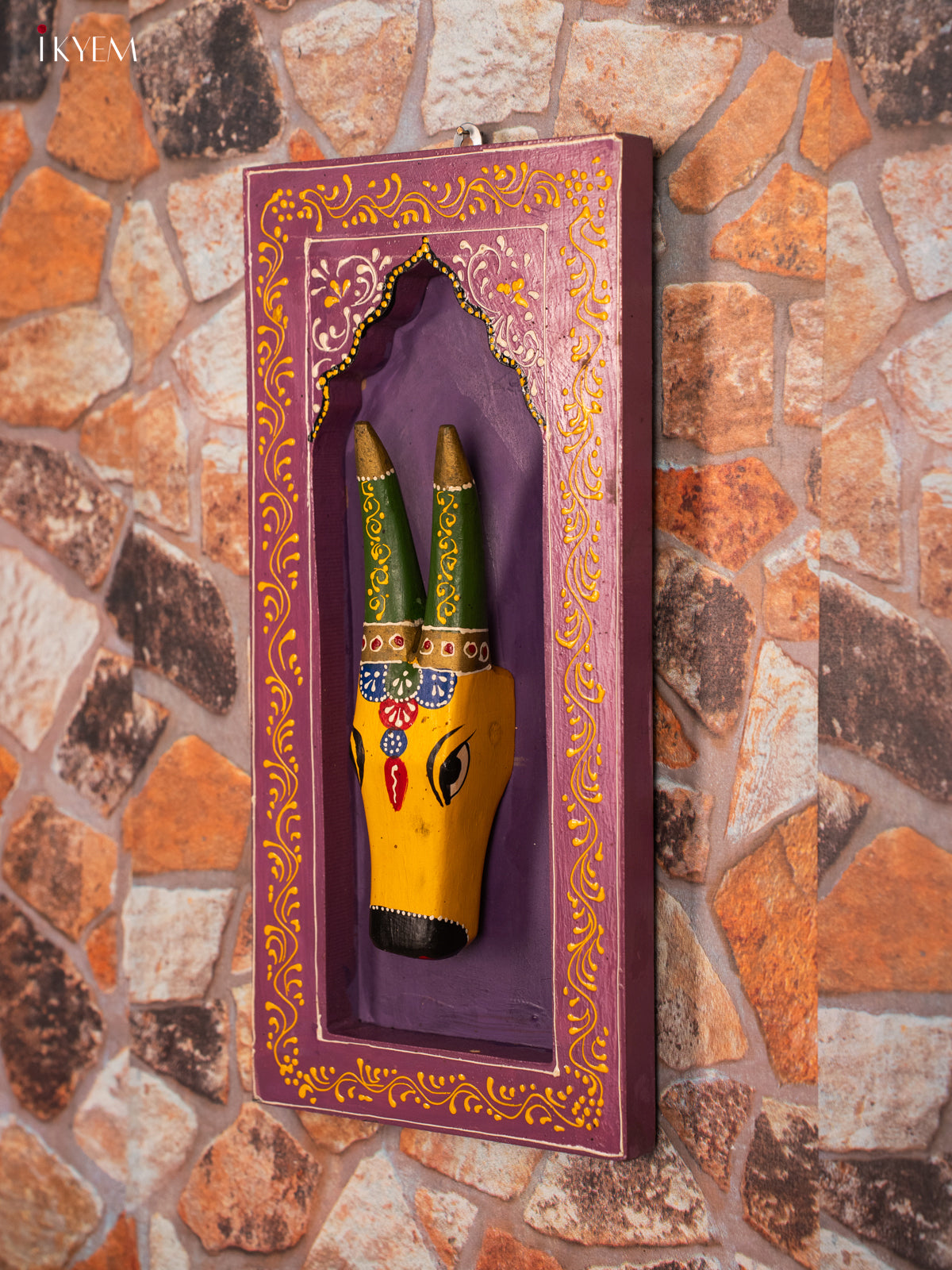 Charming Hand Carved Cow Wooden Wall Hanging Frame Painted in Purple - KG31148