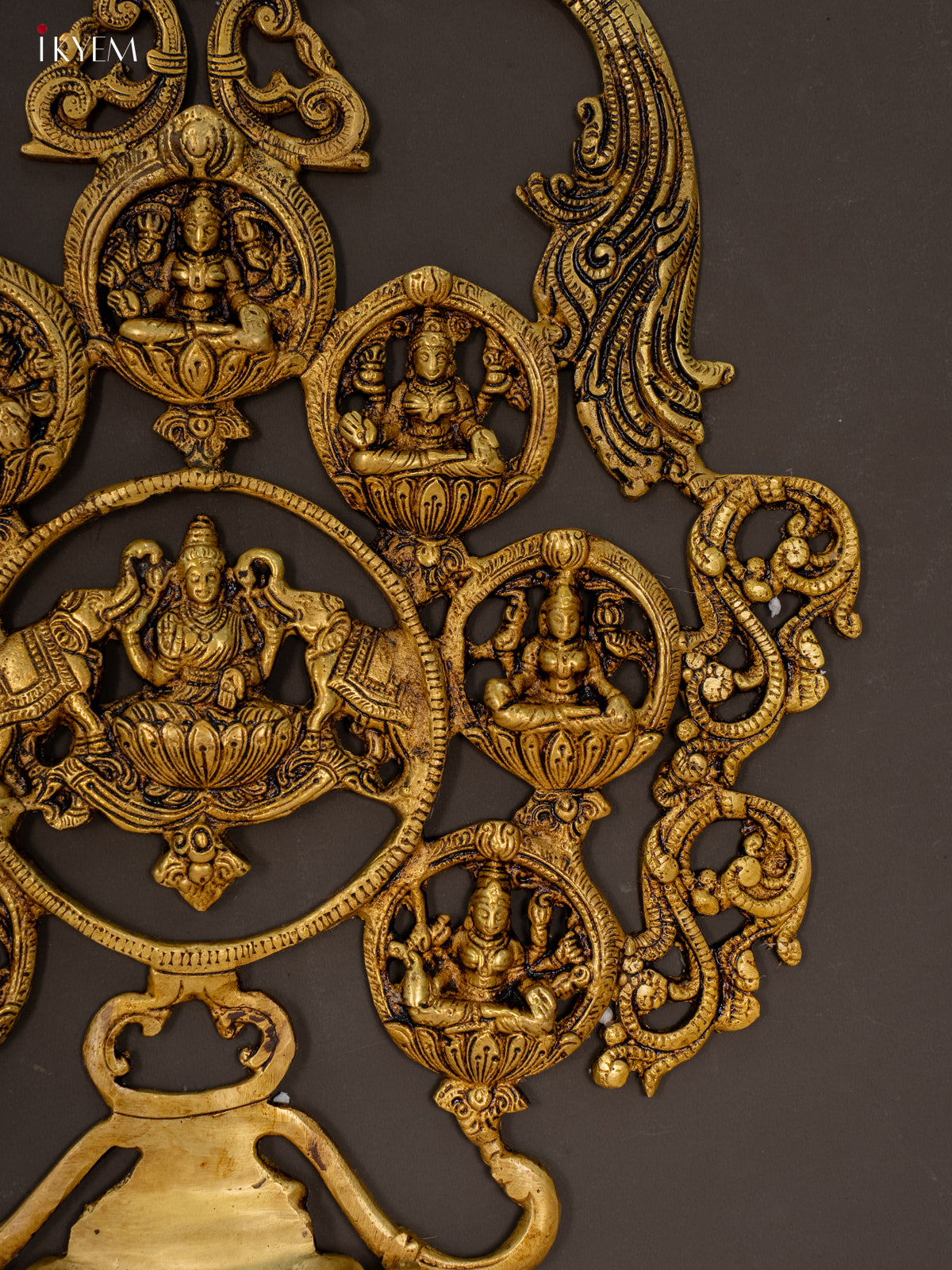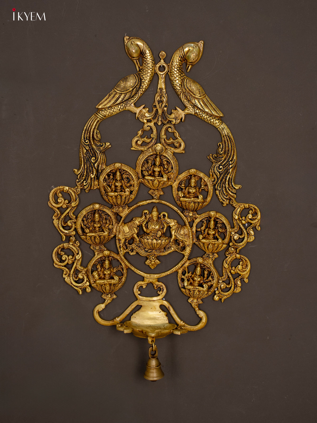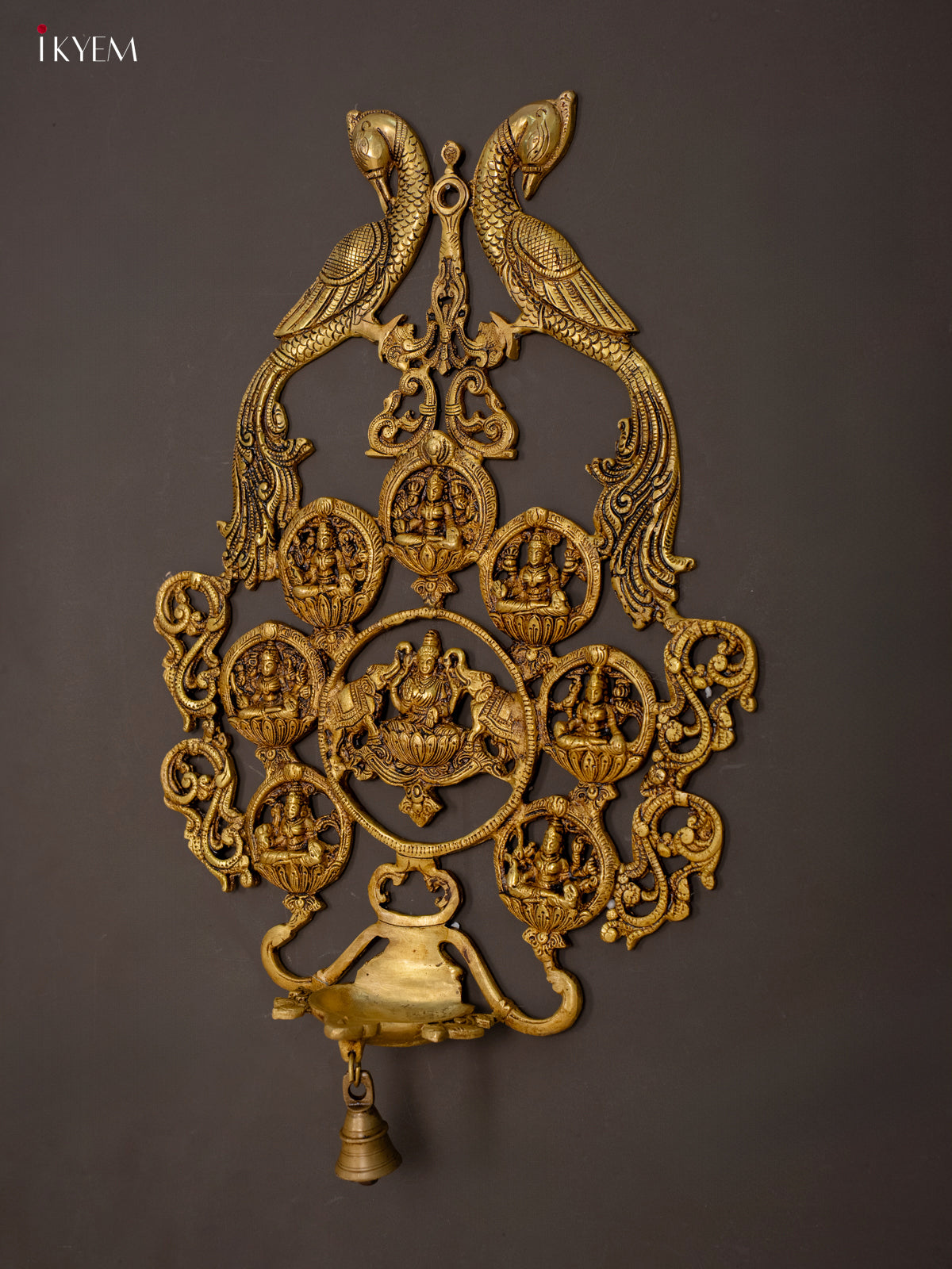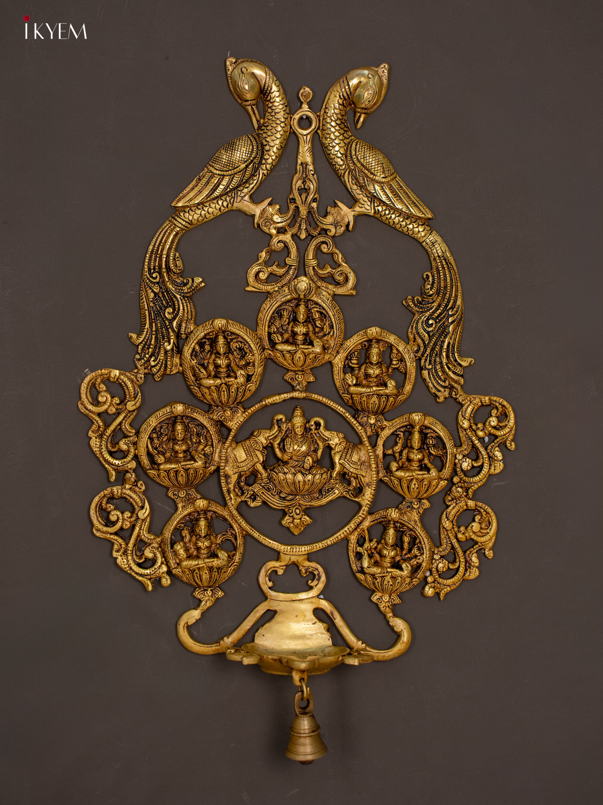 - This Brass Ashtalakshmi & Peacock Wall Hanging Diya with Bell features a finely crafted design combining the auspicious Ashtalakshmi motif and an elegant peacock, symbolizing prosperity and beauty.
