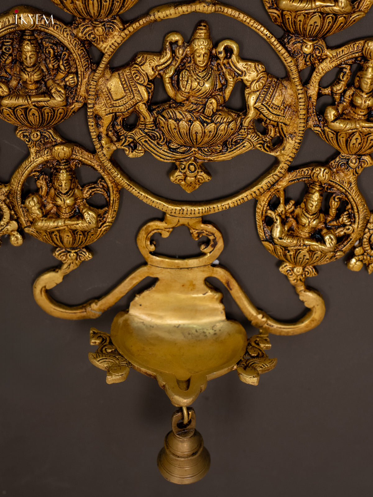 Brass Ashtalakshmi & Peacock Wall Hanging Diya with Bell - KH01115