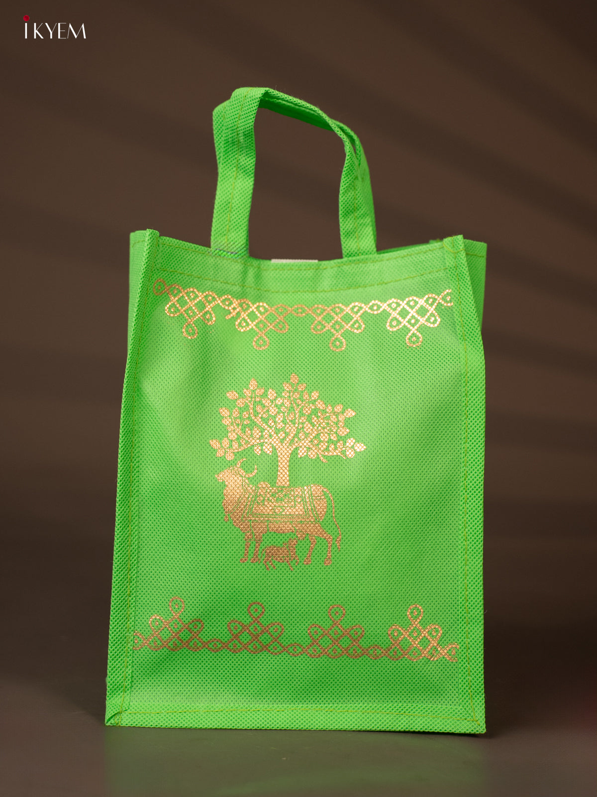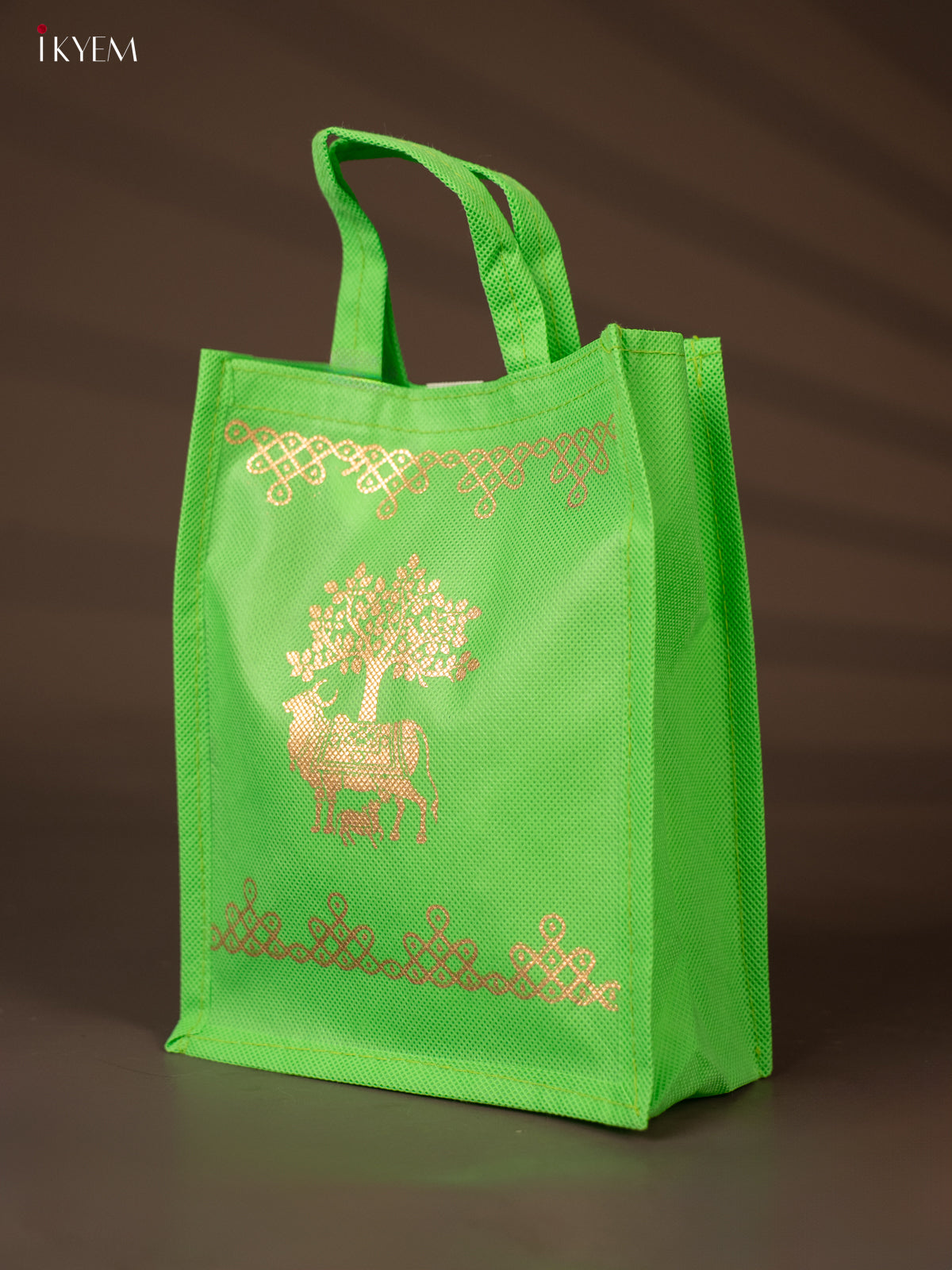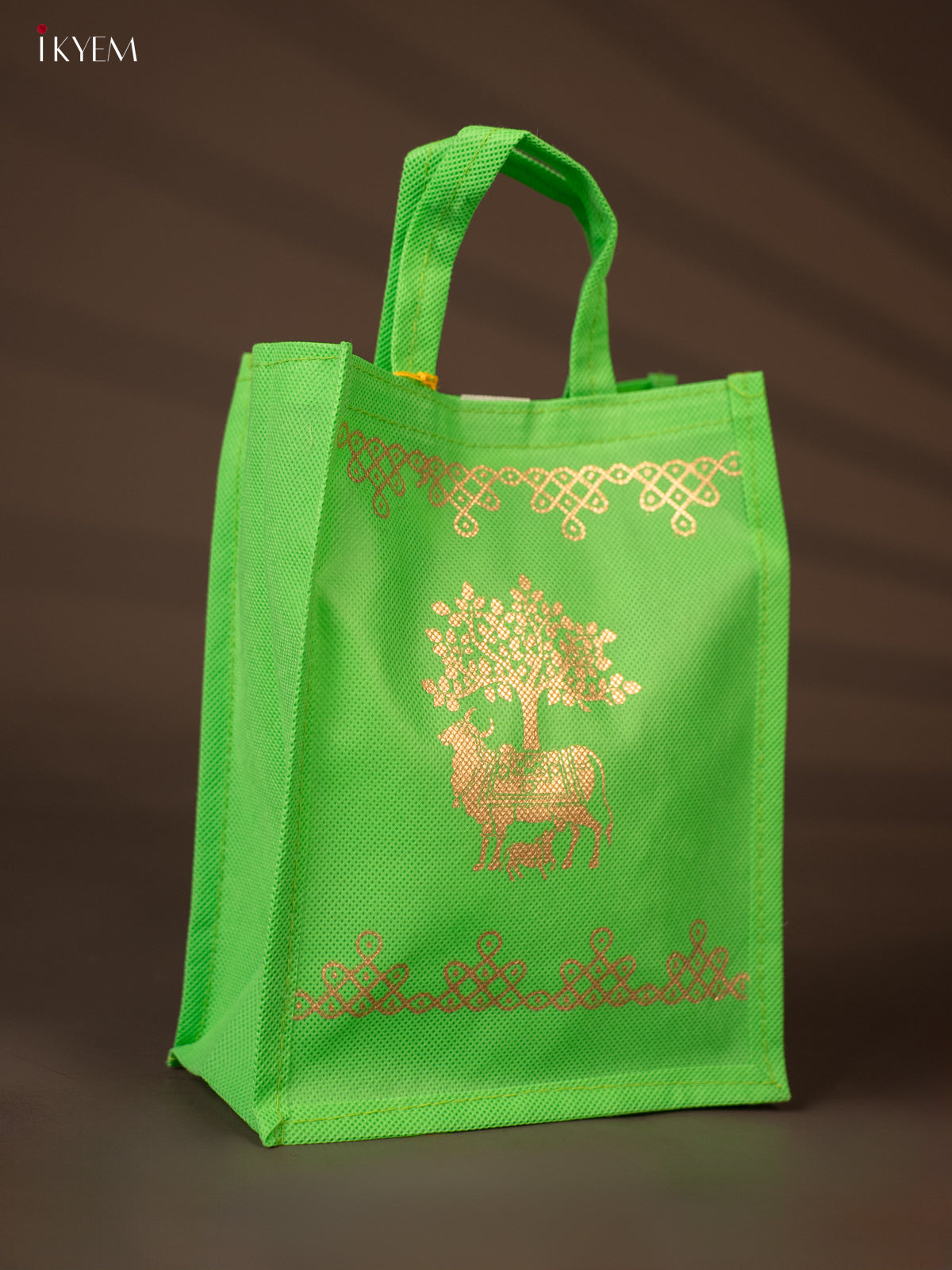 - The Cow & calf Printed Non Woven Bag in green is an eco-friendly, durable option ideal for return gifts at special occasions.