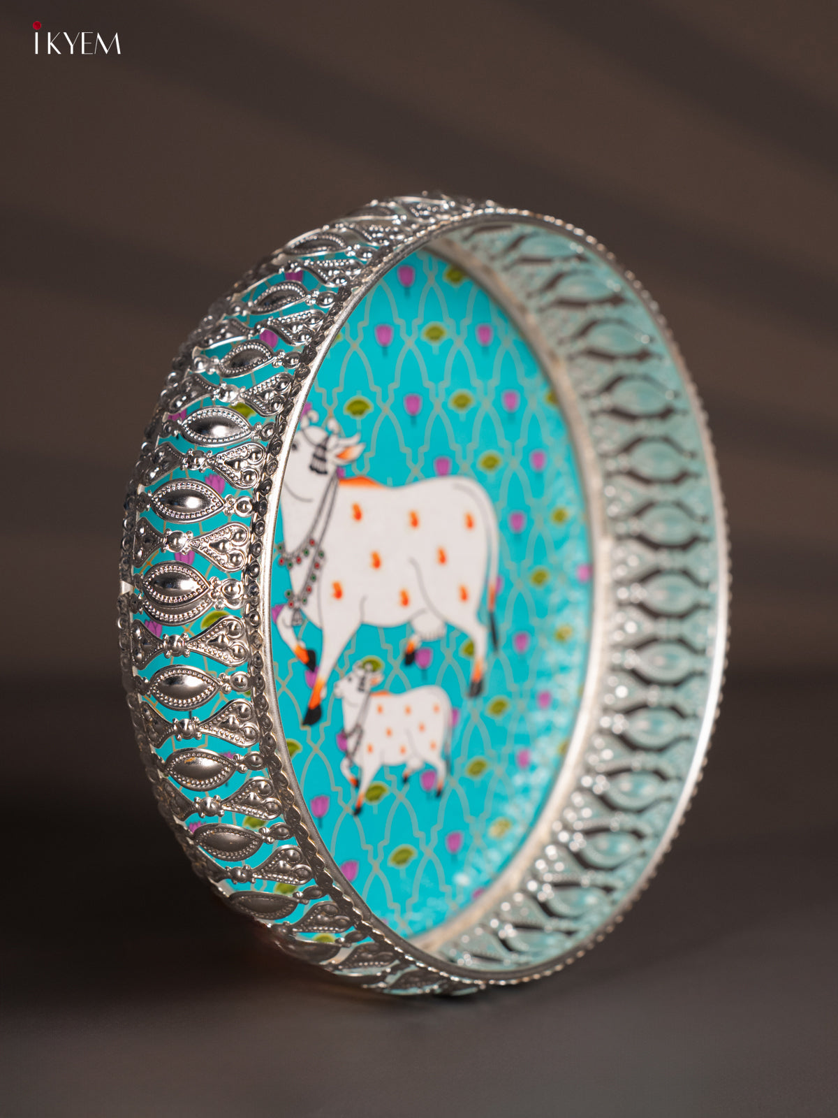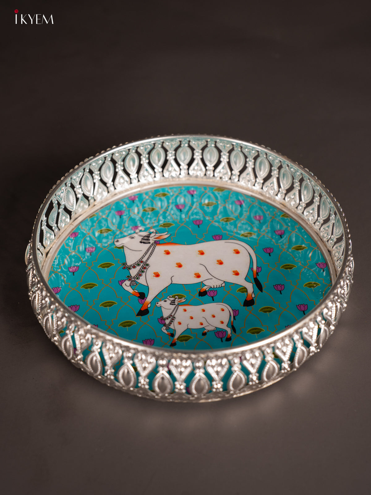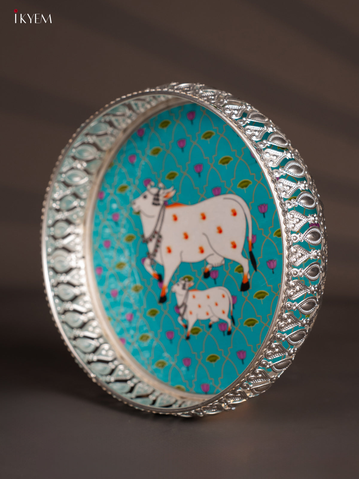 Digital Printed German Silver Tray - Cow & calf Teal Green - 8 Inches - KH07191