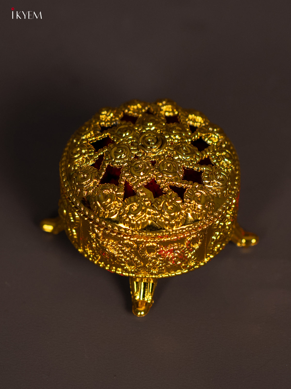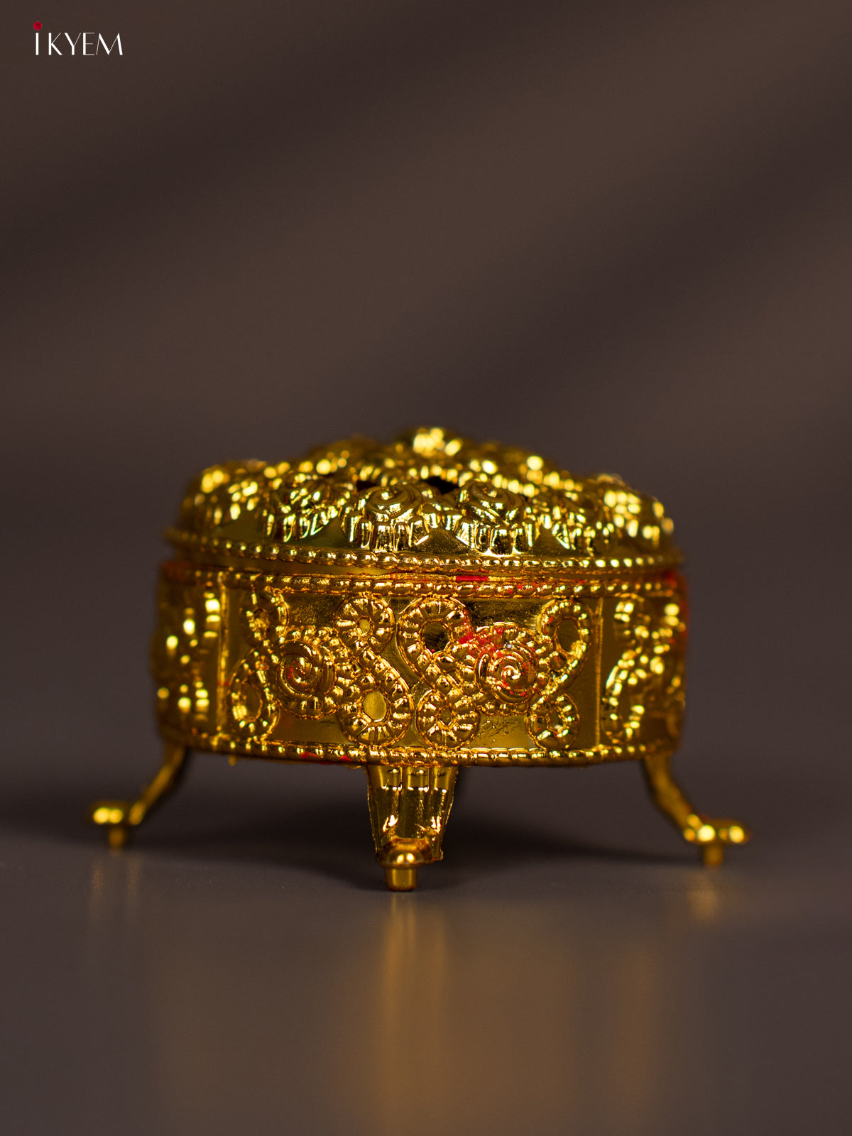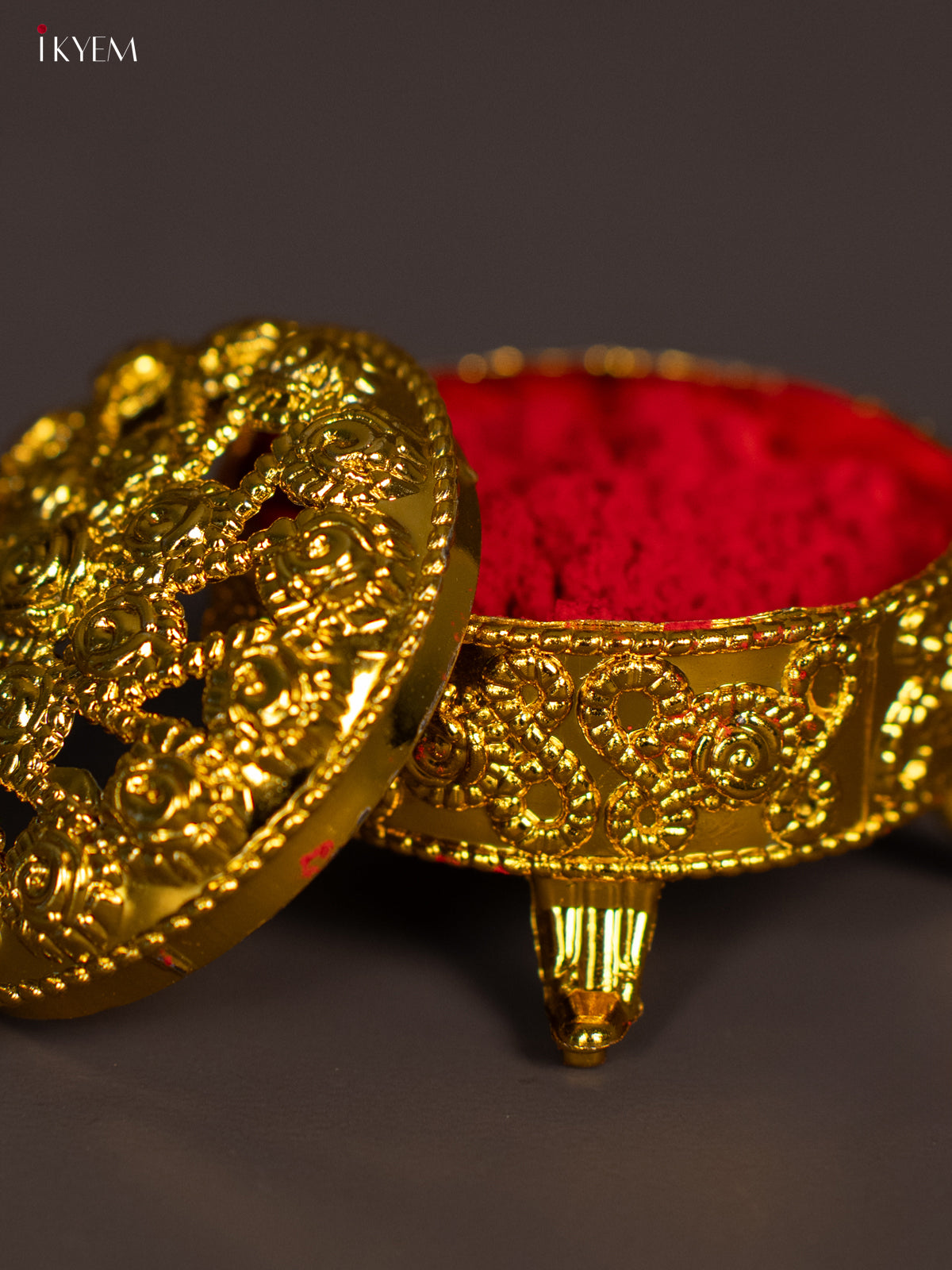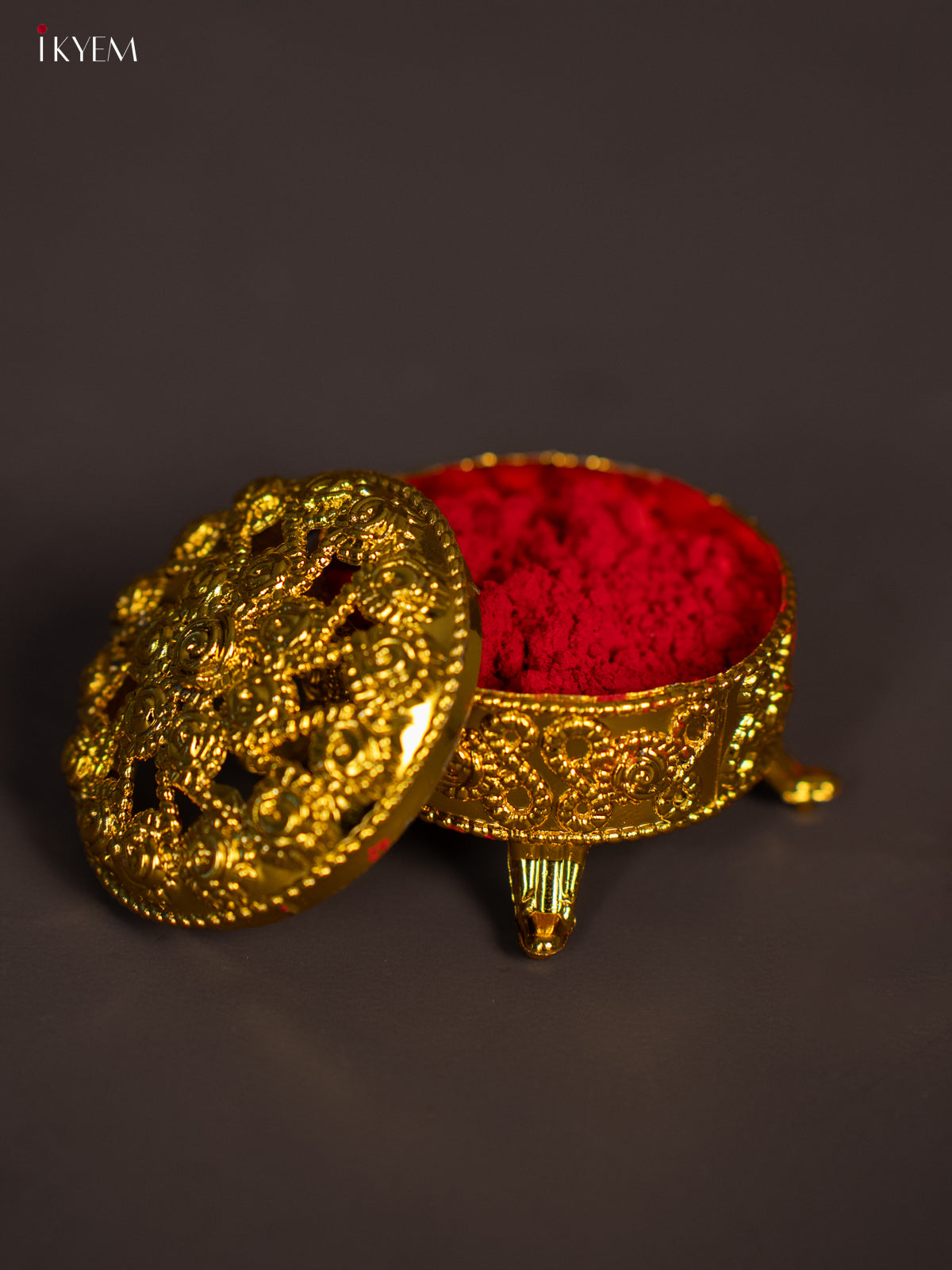 - This elegant Gold Kumkum Holder with Stand offers a refined way to present kumkum during traditional rituals.