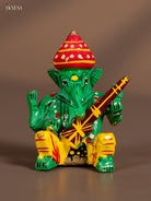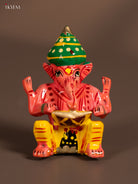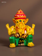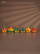 Wooden Kondapalli Hand Painted Set of 6 Small Sitting Musical Ganesh
