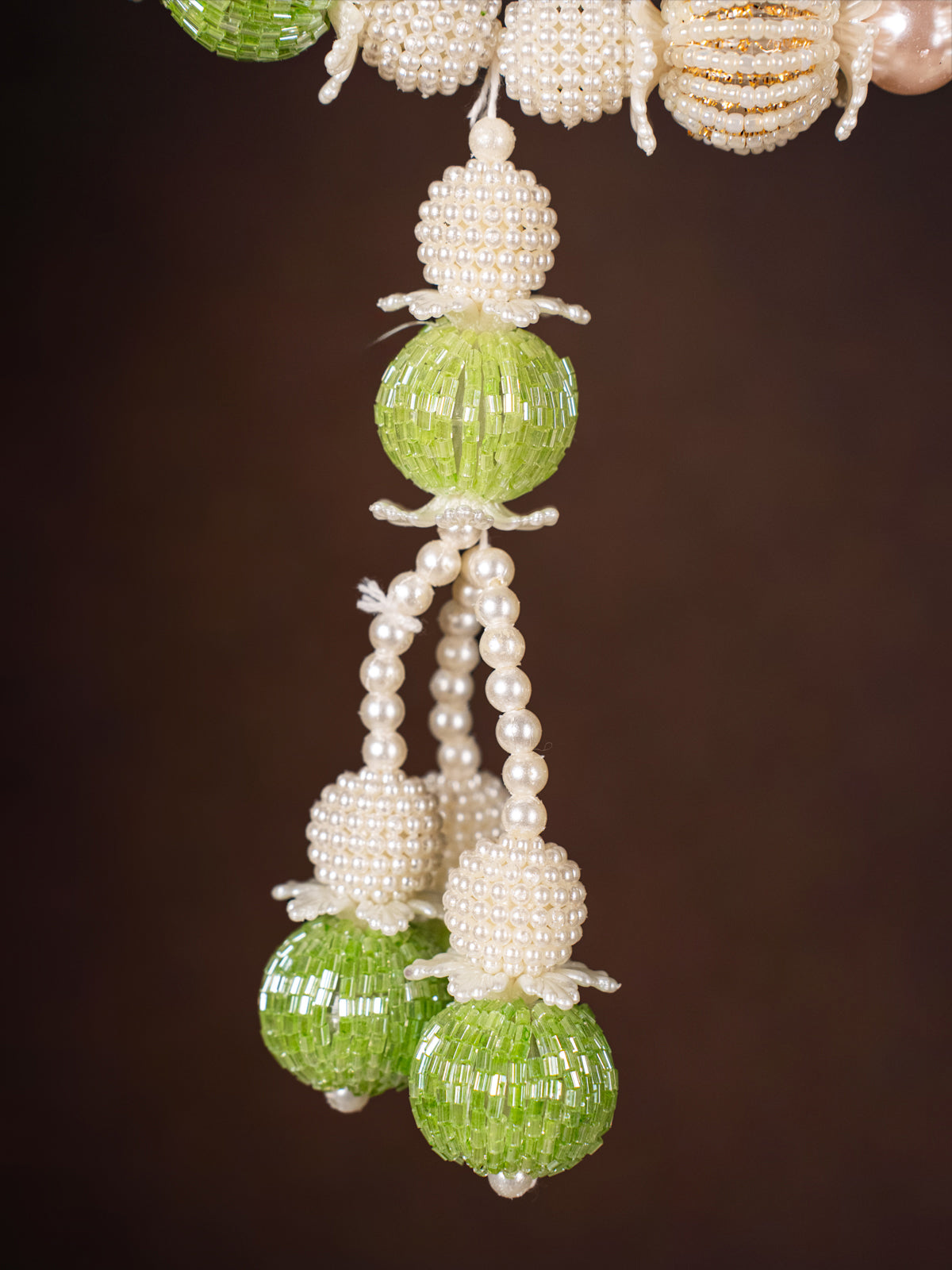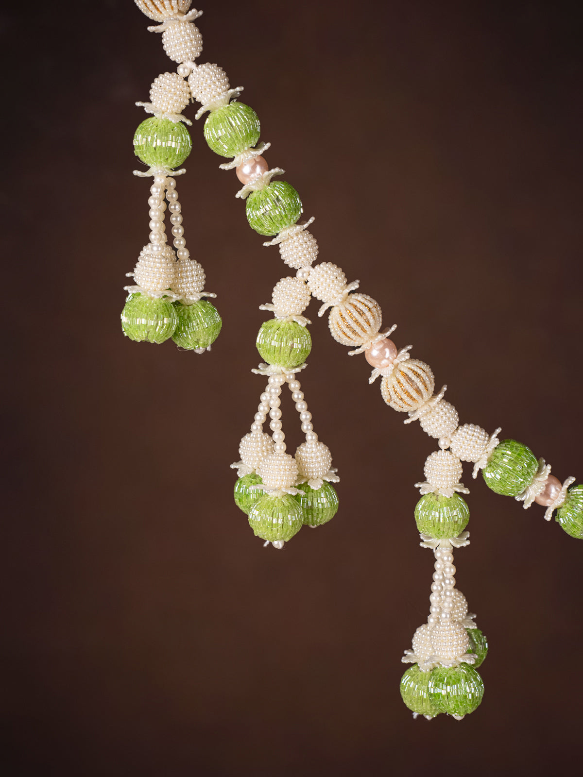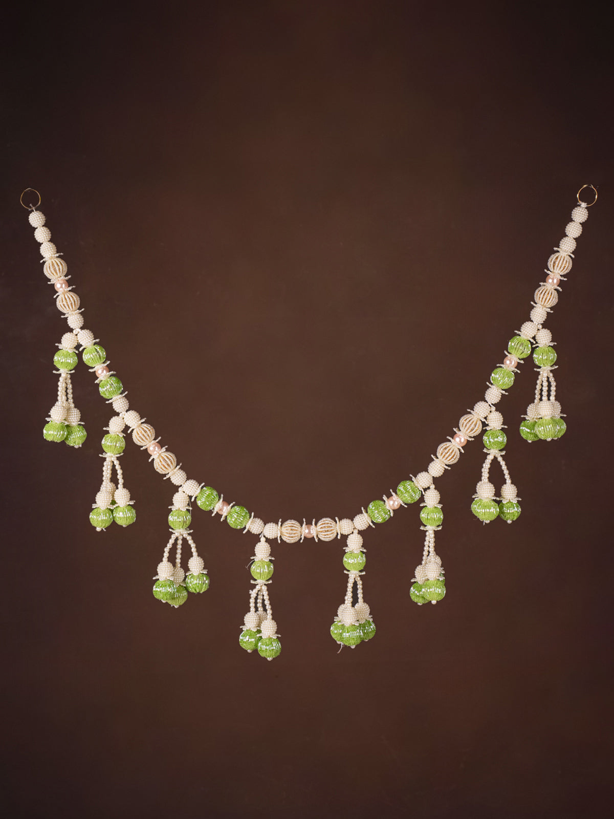 - The Artificial Flowers Toran in white and green is an elegant, low-maintenance decor piece ideal for pooja rooms.