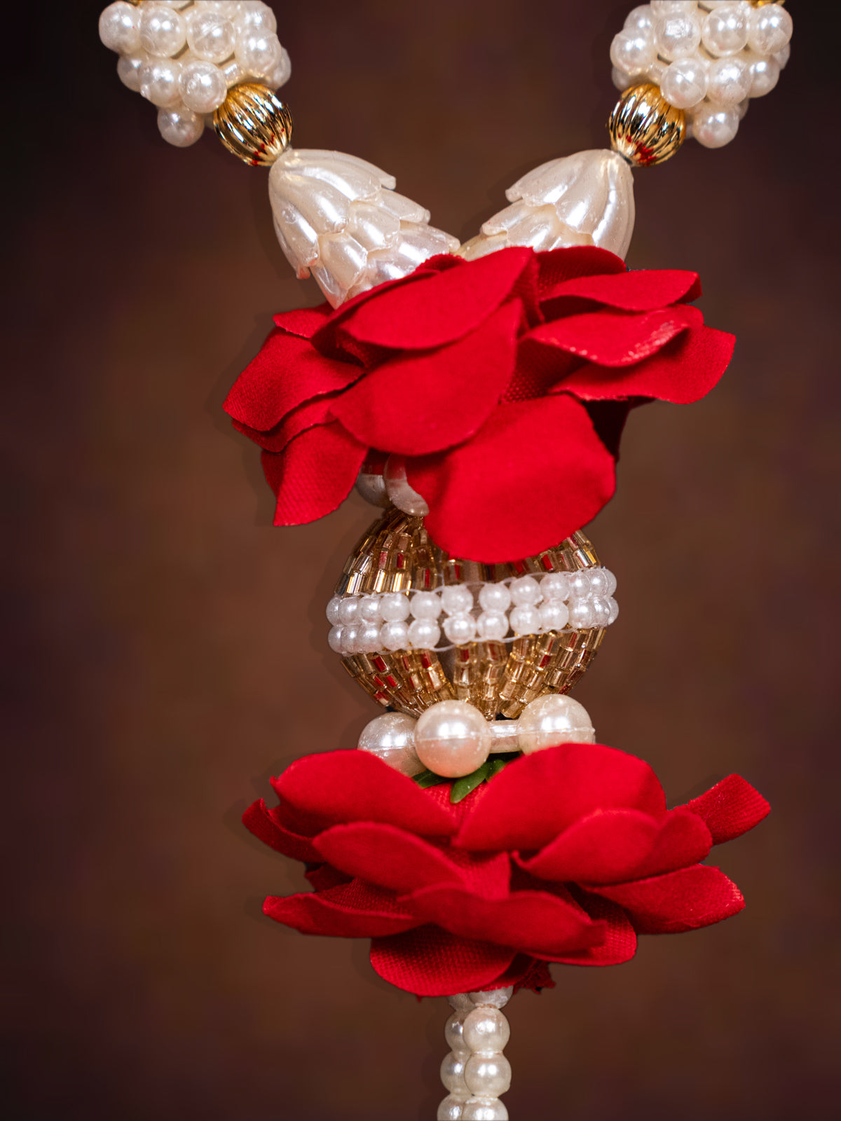 - Add a touch of elegance to your pooja area with the red Artificial Flowers Deity Garland.
