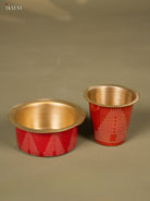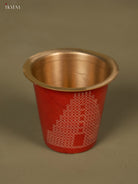 Gopuram Kolam Digital Printed Brass Coffee Dabara Set - Brick Red - KH22113