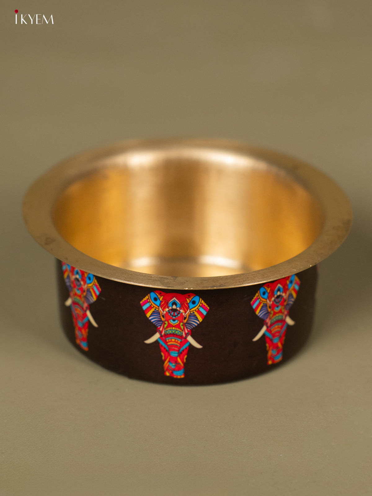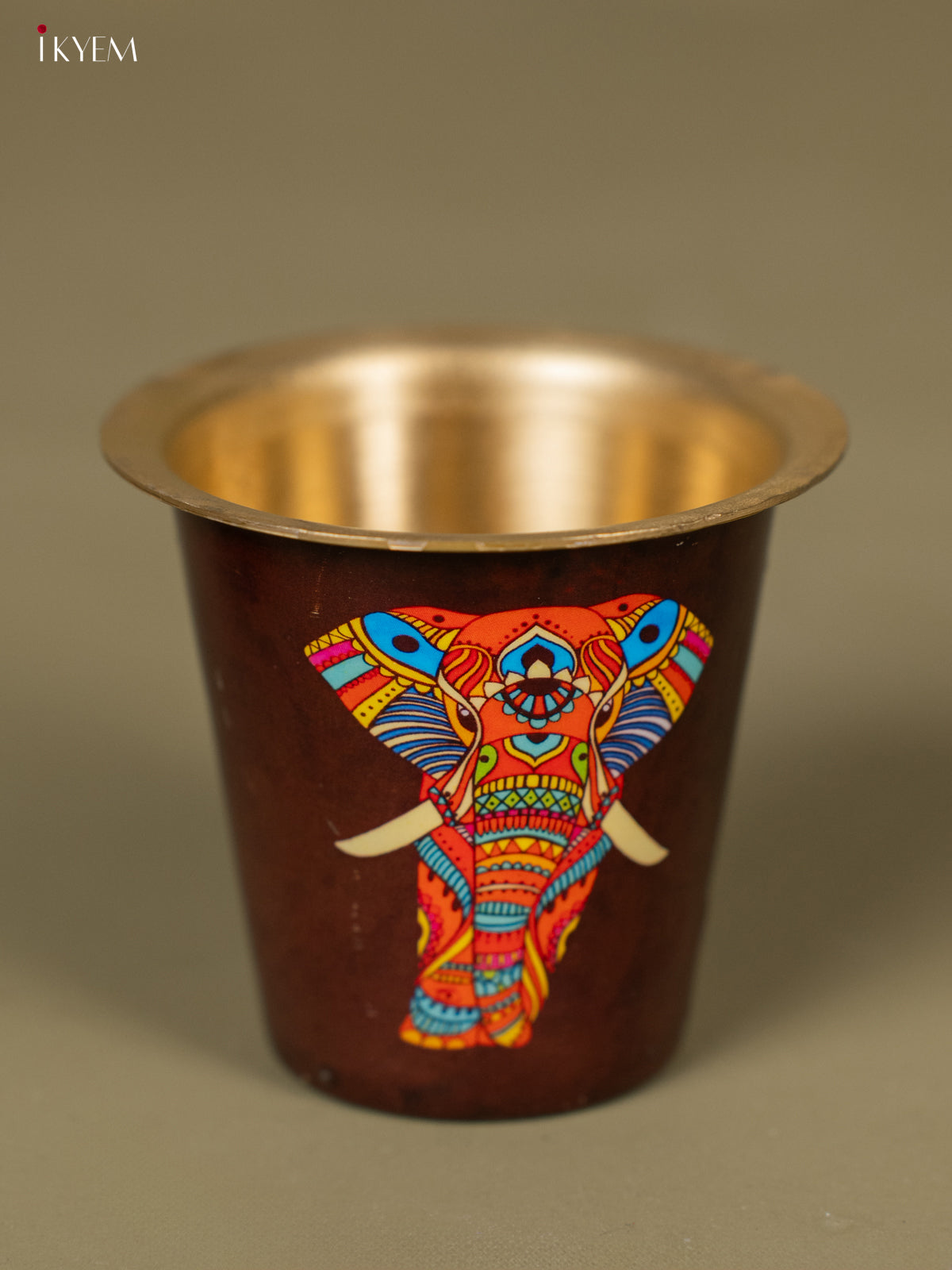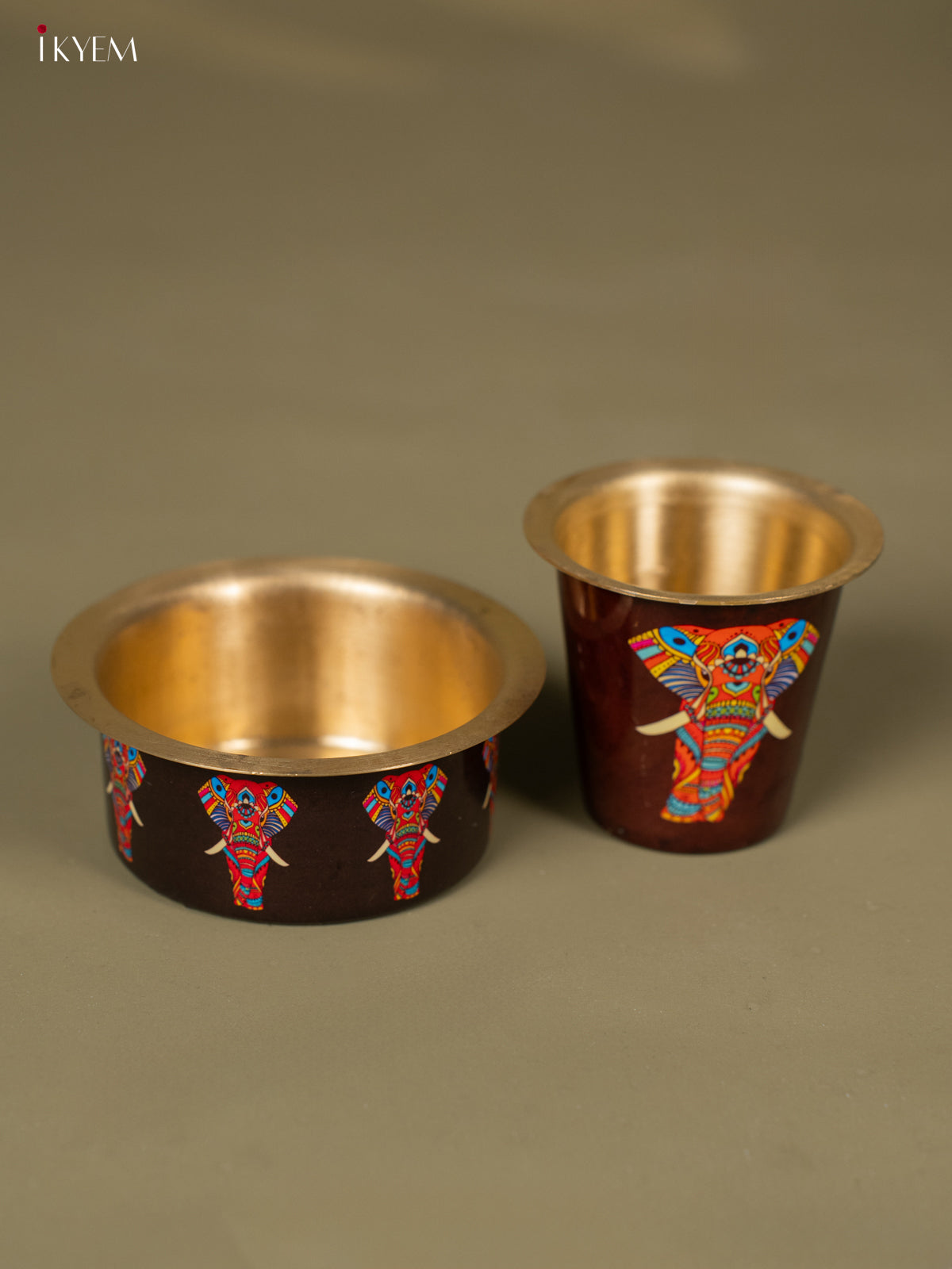 Elephant Digital Printed Brass Coffee Dabara Set - Brown - KH22122