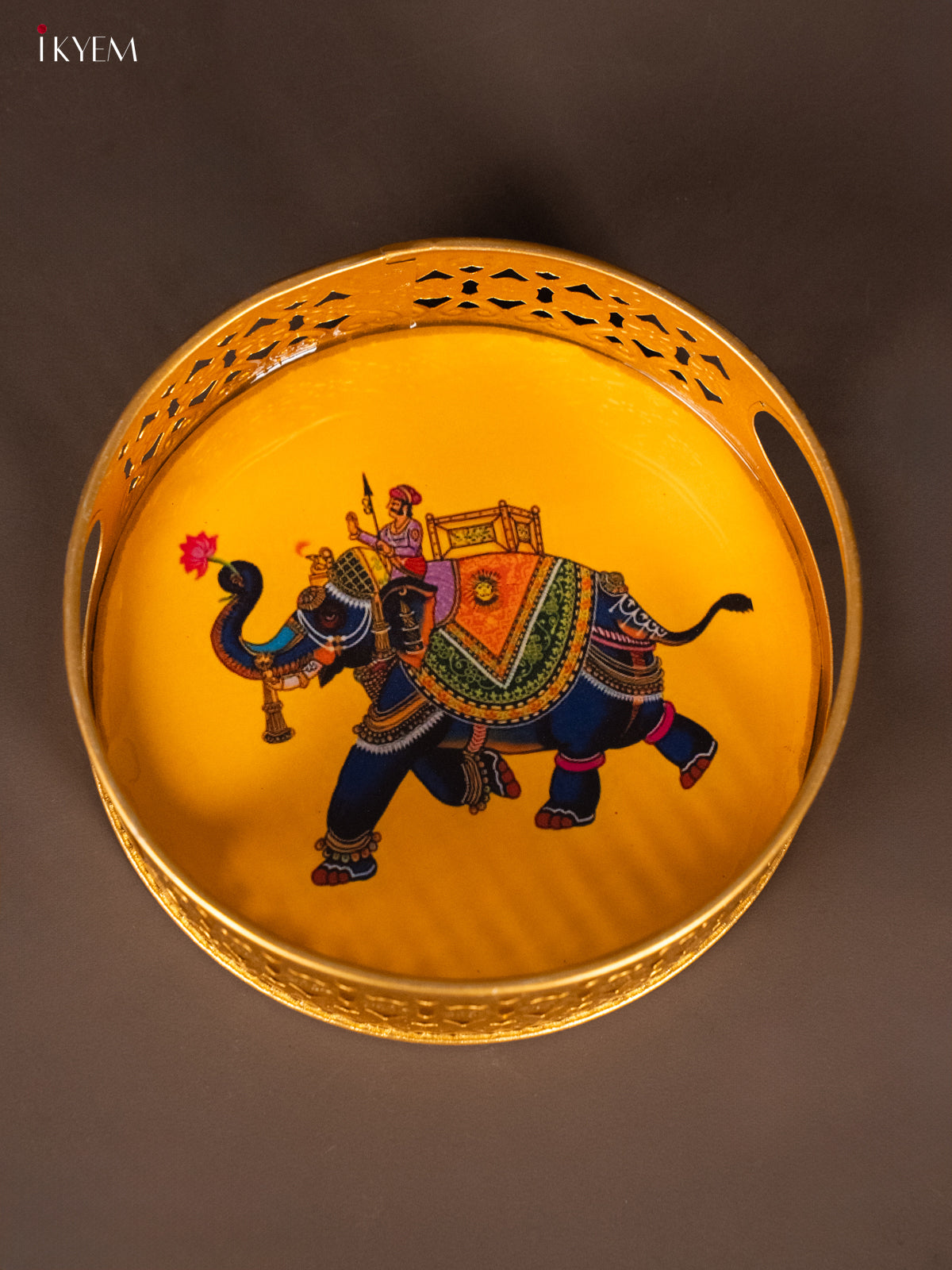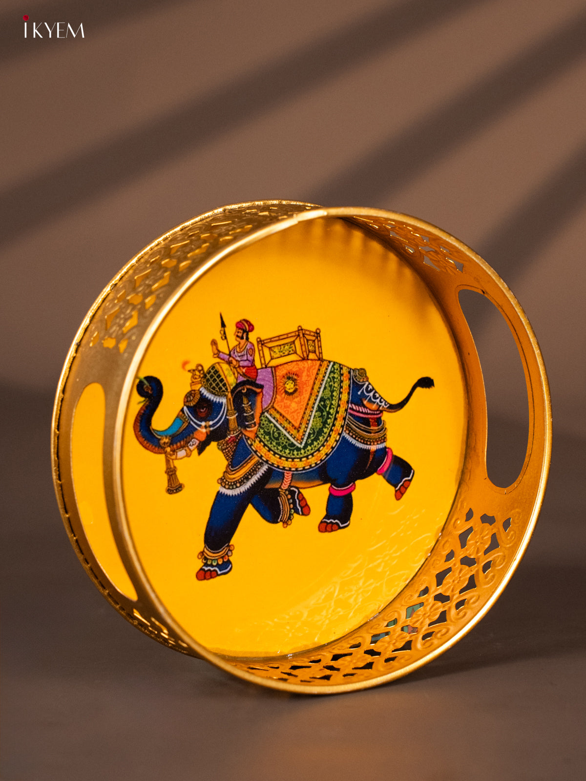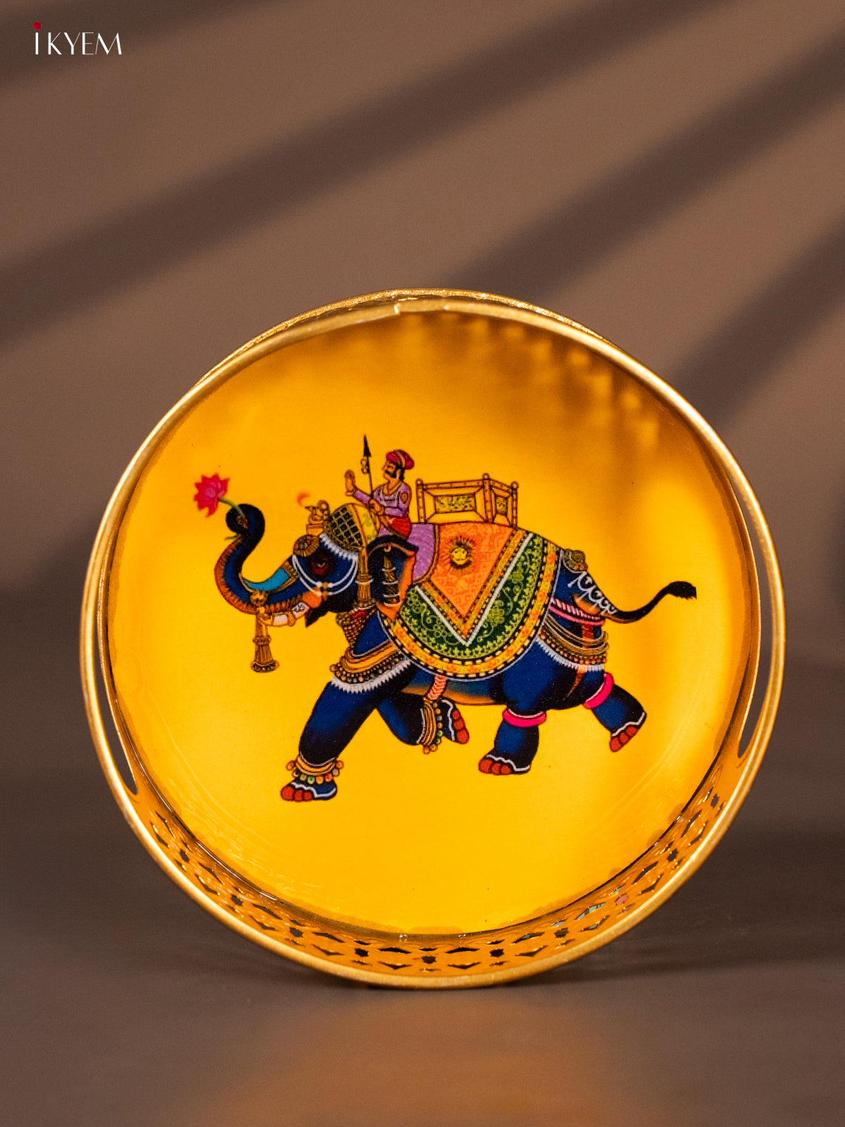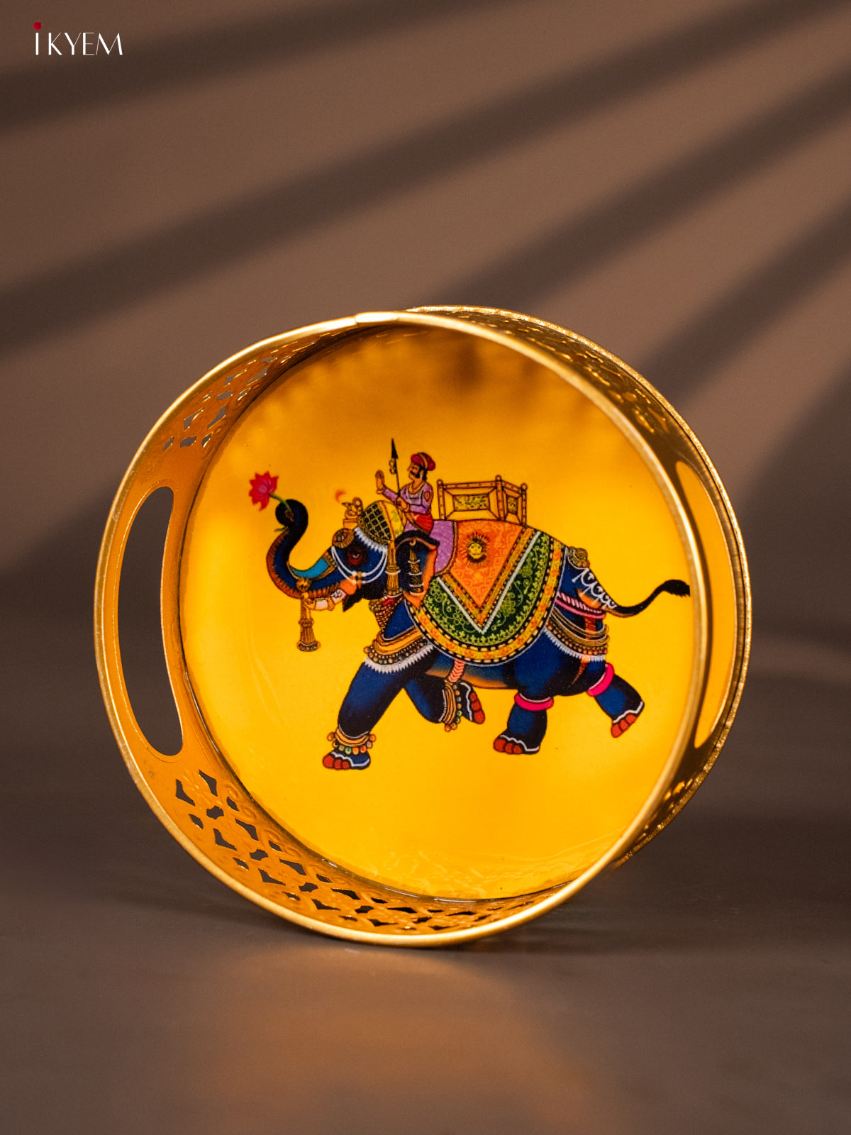 Digital printed Round Metal Tray Elephant - Yellow - 6 Inches - KH22124