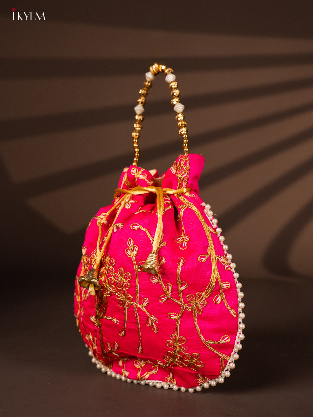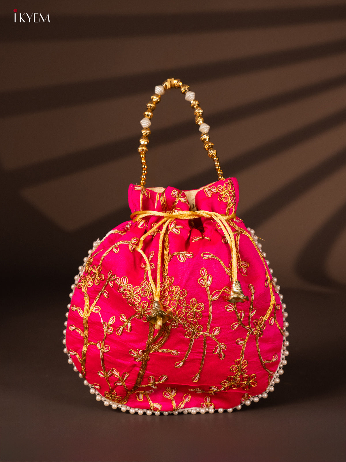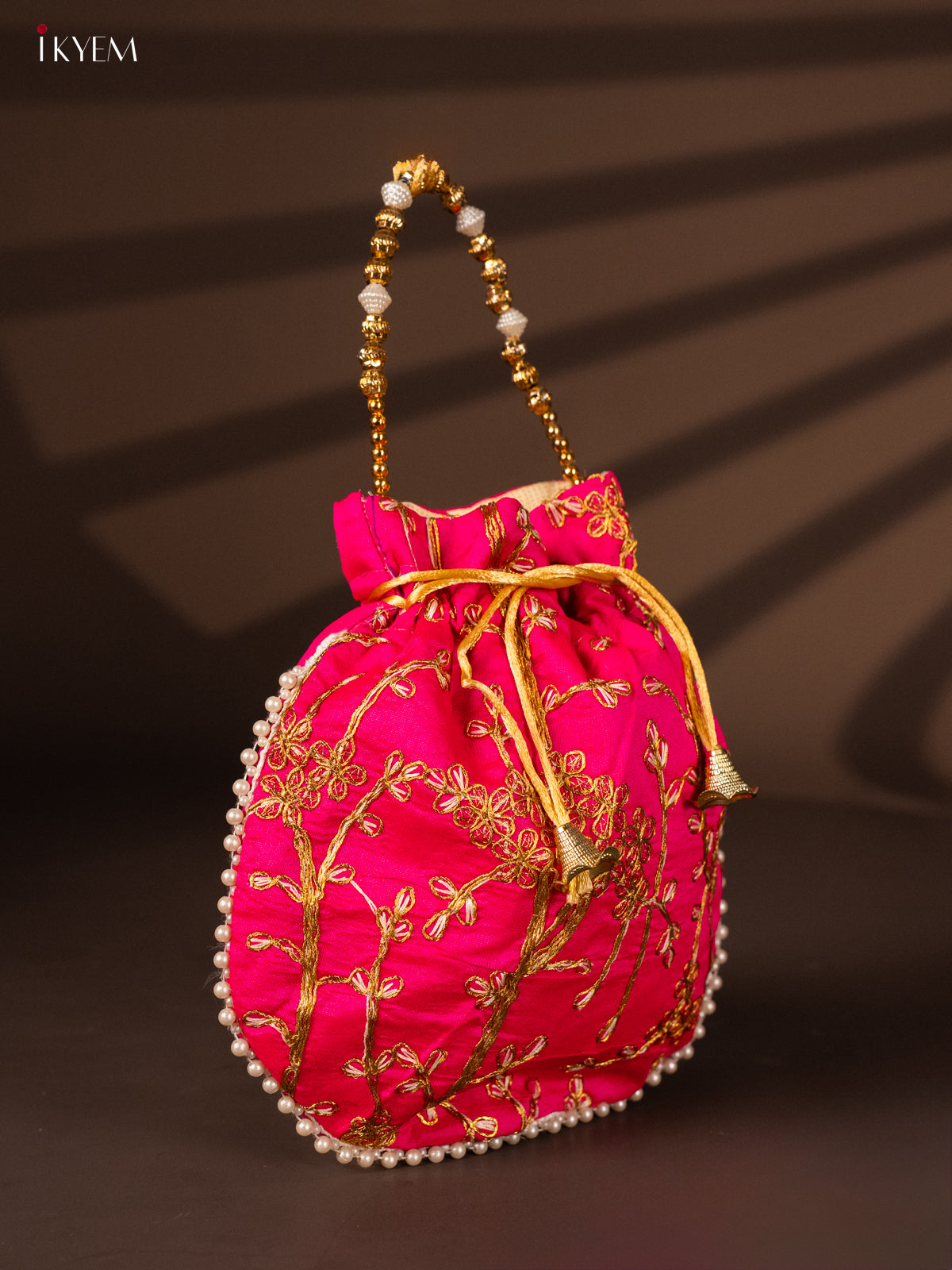 - The Designer Embroidered Potli Bag in pink combines elegant craftsmanship with practicality, making it an ideal option for return gifts.