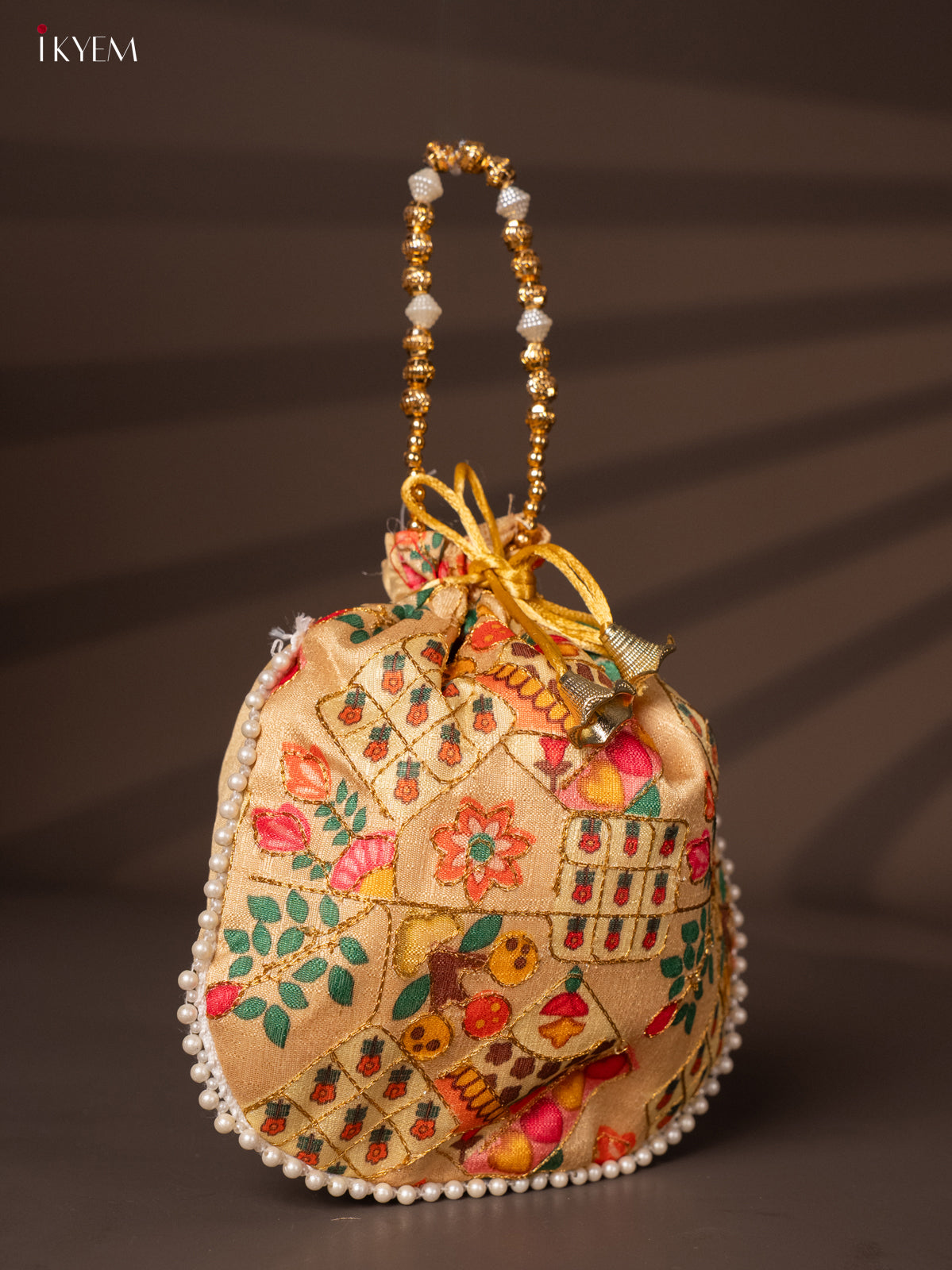 - This Sandle Embroidered Potli Bag combines traditional elegance with modern style, making it an ideal choice for return gifts.