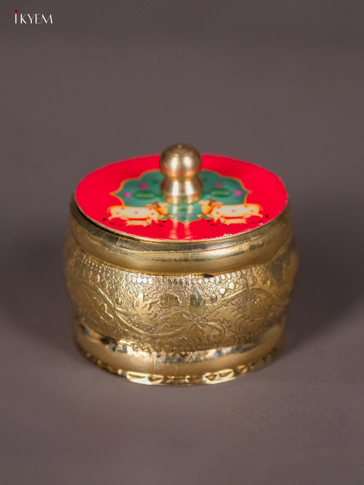 Brass coated Cow & Calf Digital Printed Kumkum Holder - Pink - KI01211