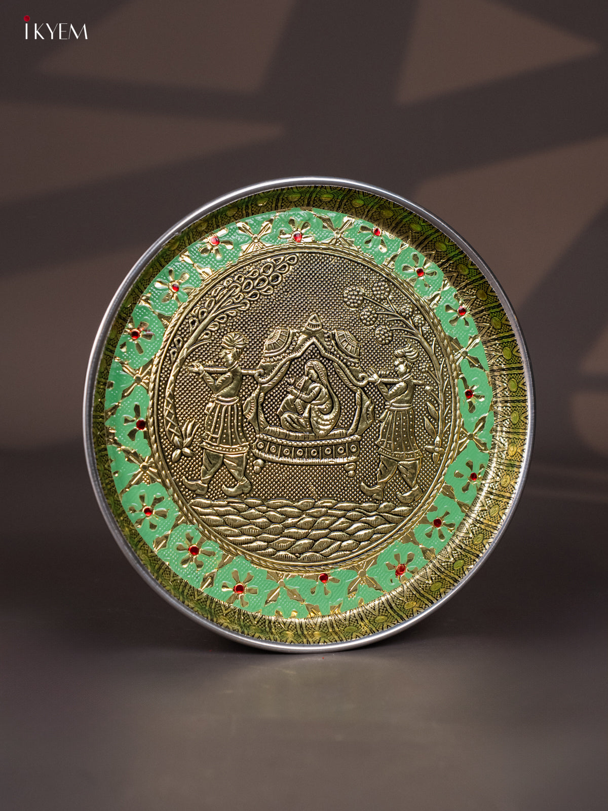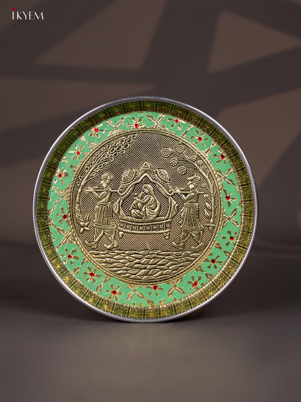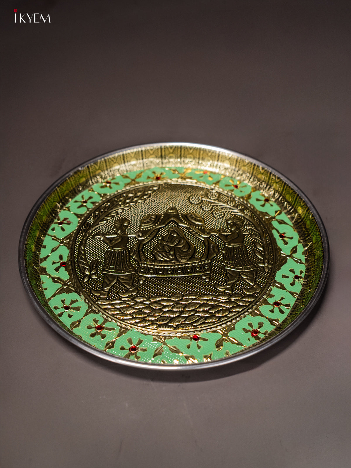 - This 8-inch Green Meenakari Plate showcases a refined oxidized Pallakku design, perfect for traditional pooja rituals and elegant return gifts.