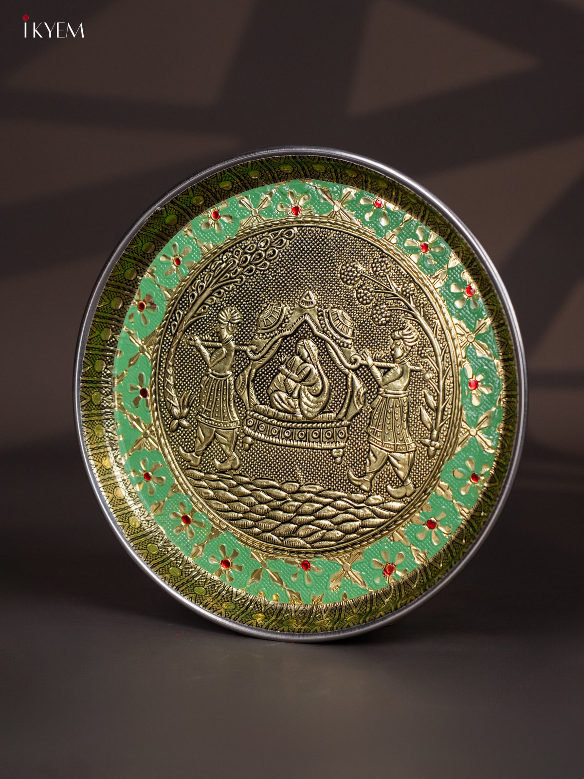 Green Meenakari Plate with Oxidized Pallakku Design - 8 Inches - KI02129