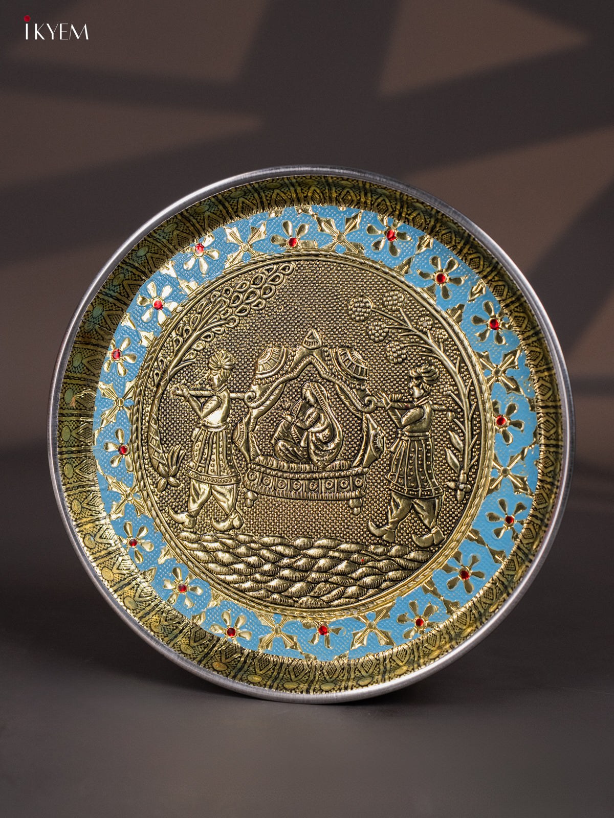 - The 8-inch Blue Meenakari Plate features an elegant oxidized Pallukku design, making it a perfect choice for pooja ceremonies and thoughtful return gifts.