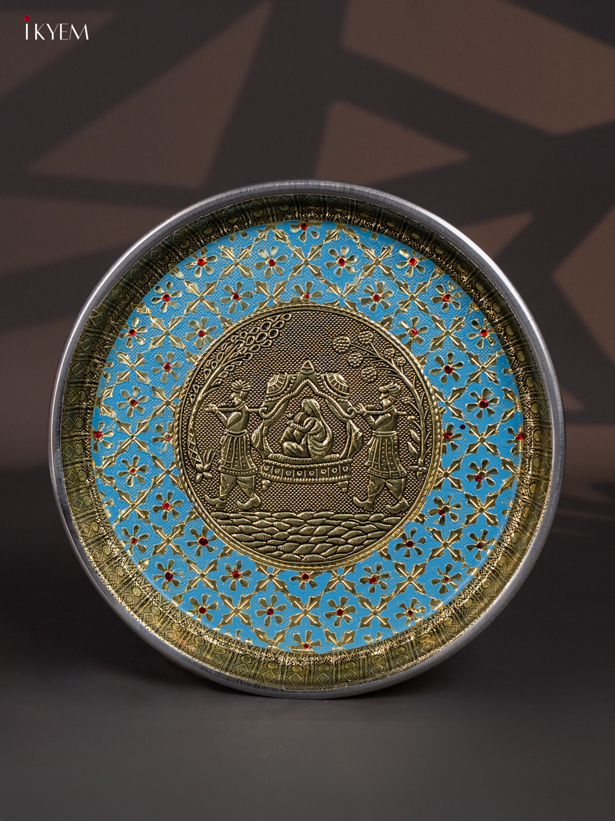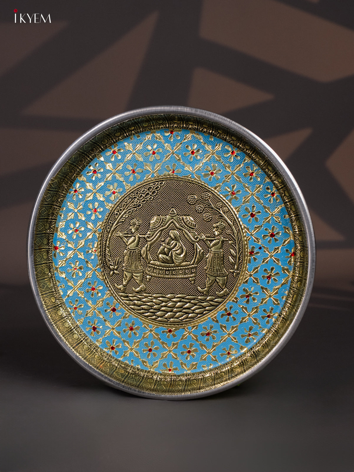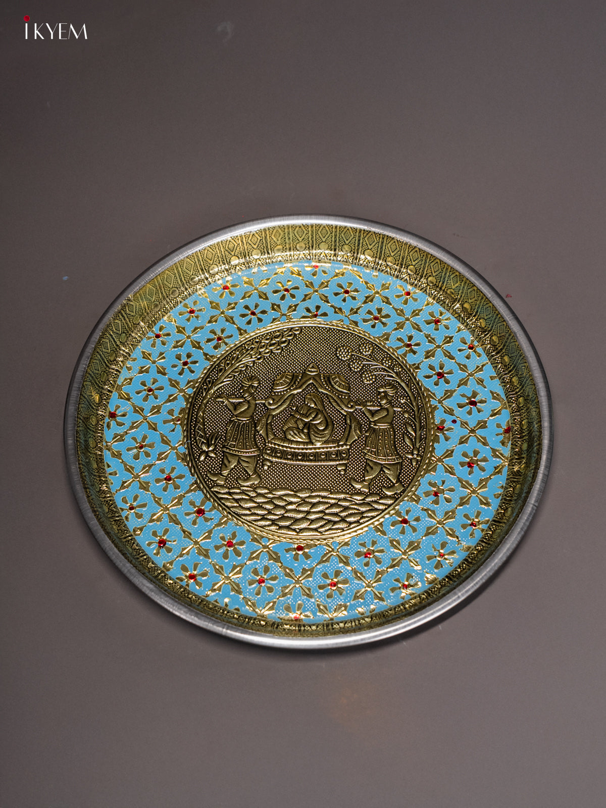- This 11-inch Blue Meenakari Plate showcases intricate oxidized Pallukku design, making it ideal for pooja ceremonies or as a thoughtful return gift.