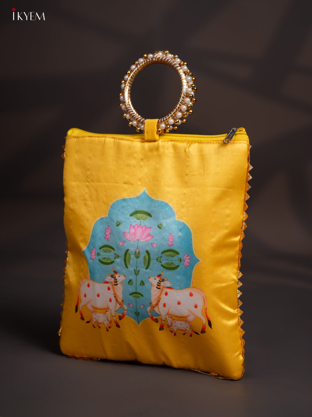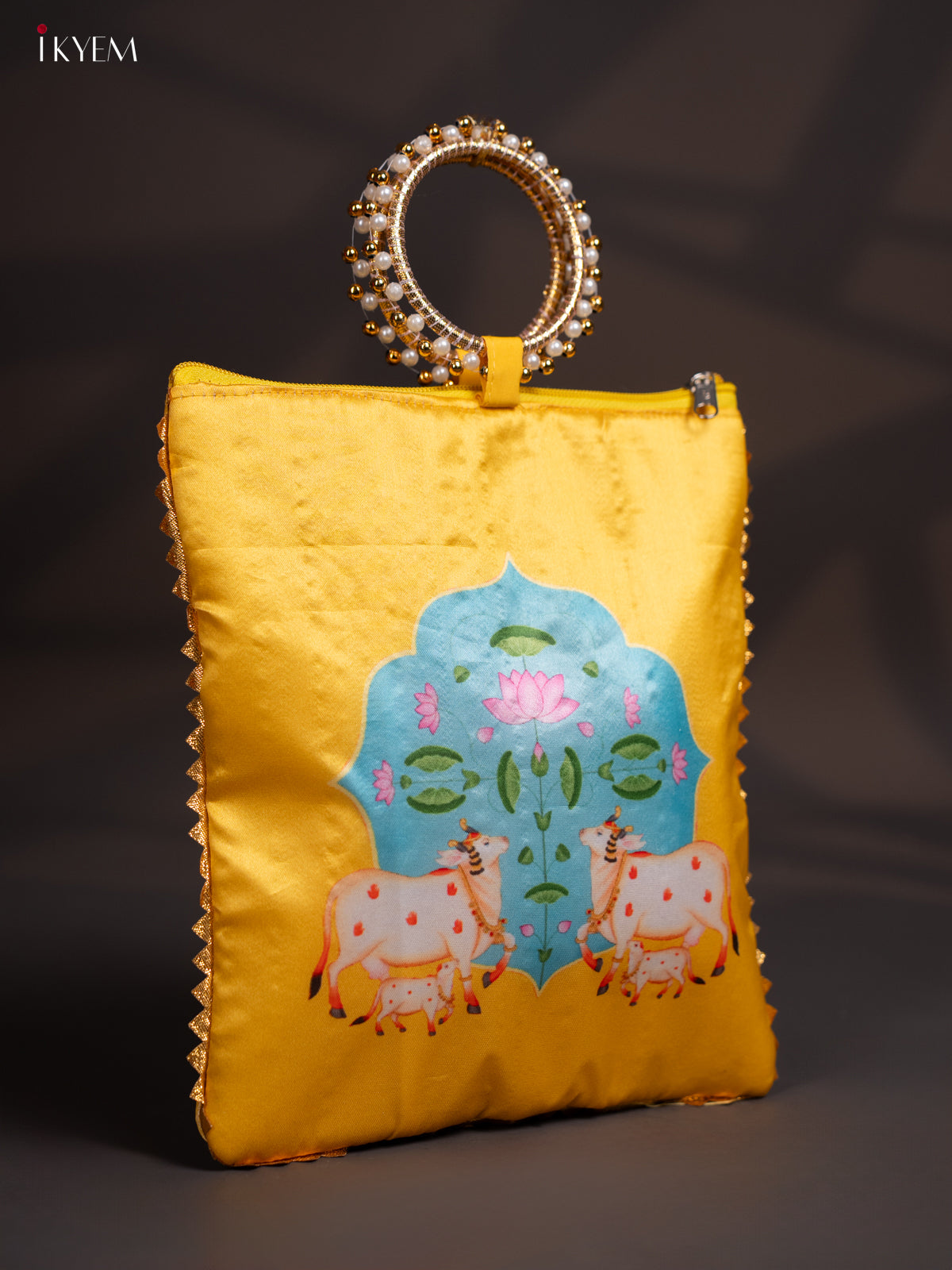 Cow & calf Bag with Bangle Handle -Yellow - KI06168
