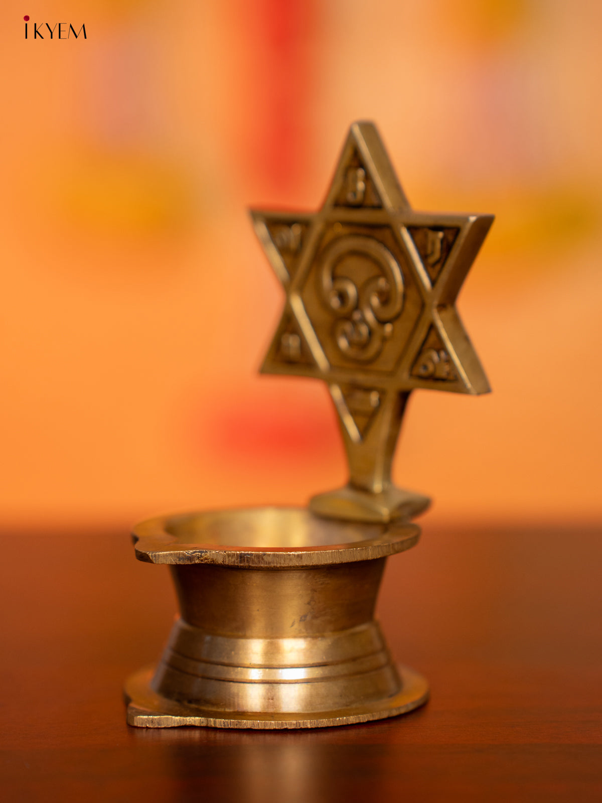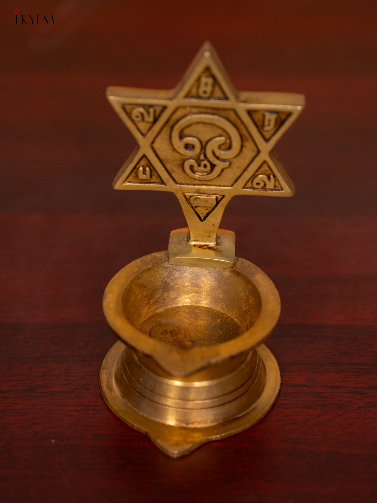 Brass Star Diya with Om Engraving - 4.5 Inches - KI07149