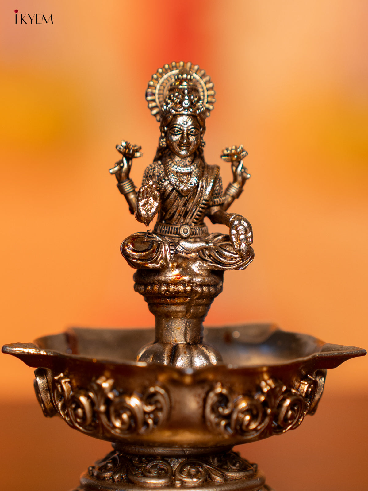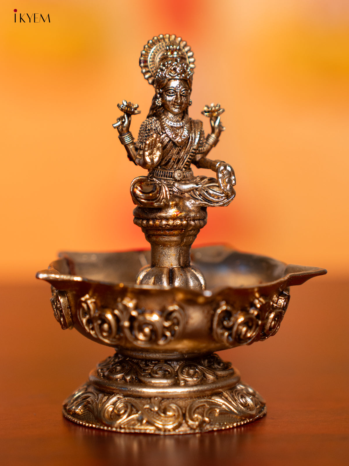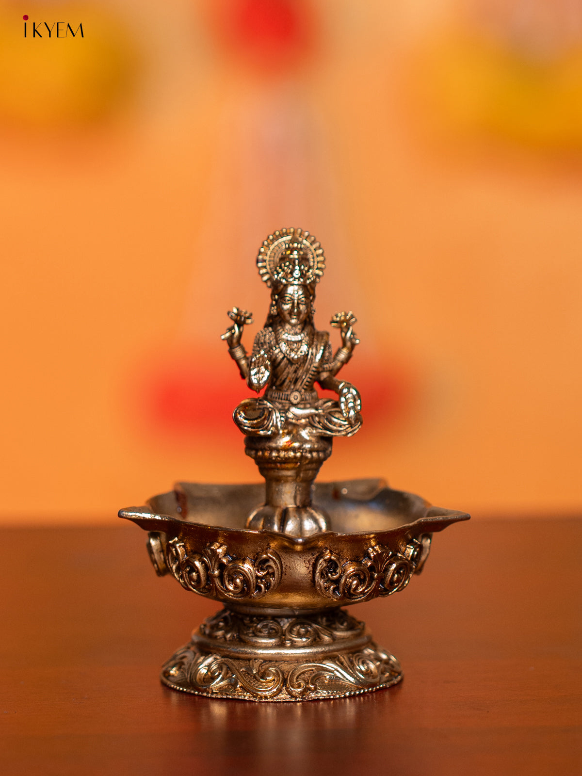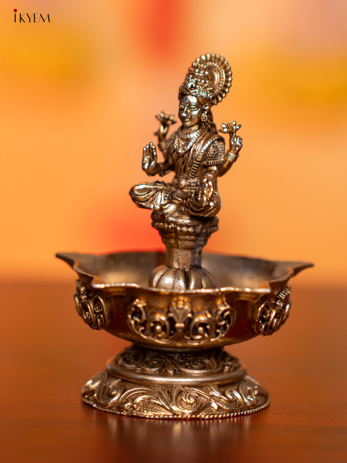 - This 4-inch Brass 5-face Lakshmi Diya is crafted for pooja rituals, offering five distinct compartments for oil and wicks.