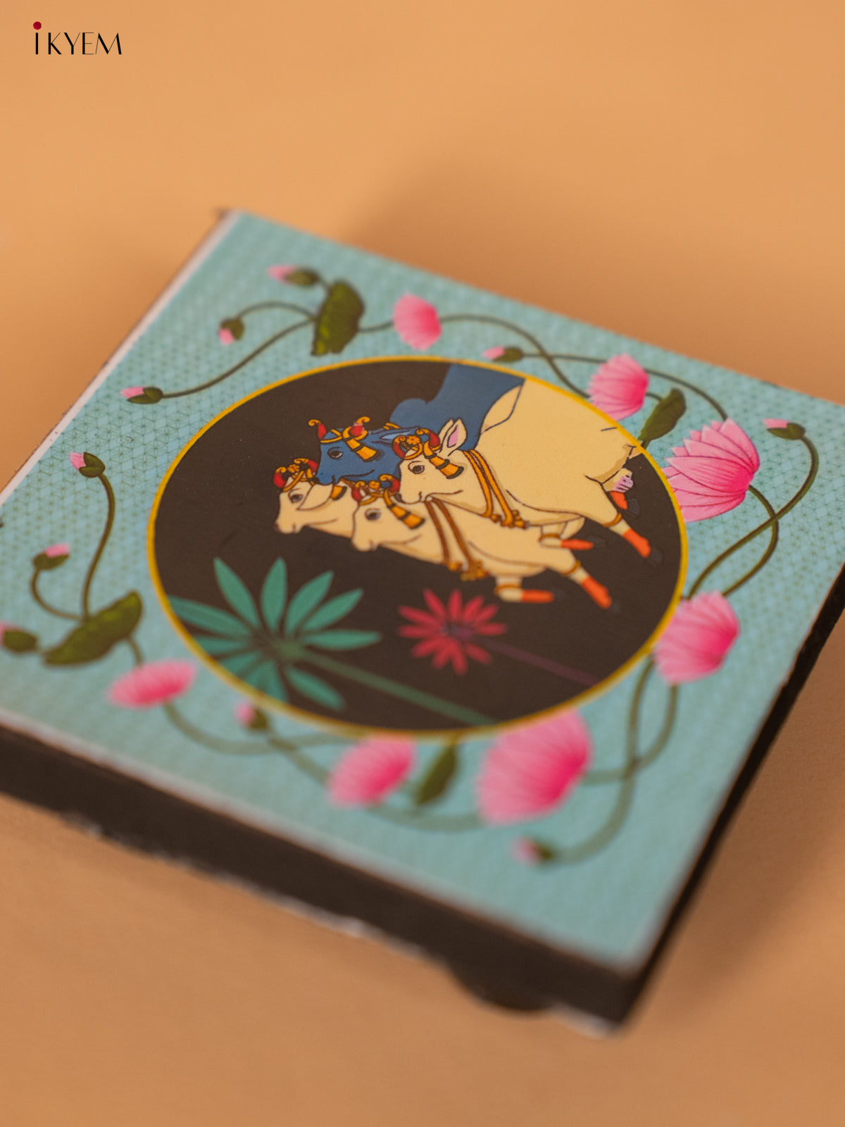 - The Digital Printed Cow Manai, sized at 2.5x2.5 inches, is designed to enhance your pooja rituals and serve as a memorable return gift.