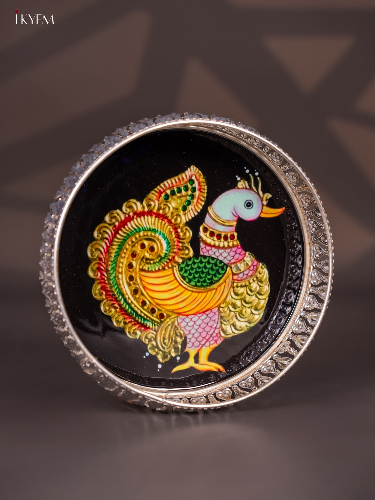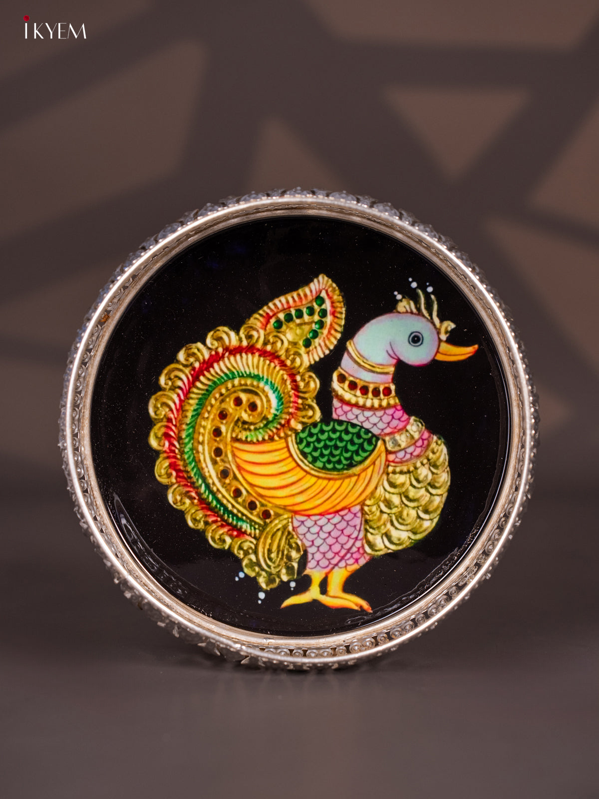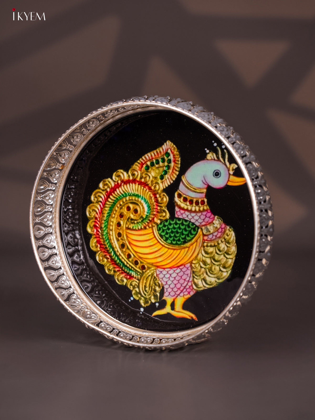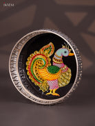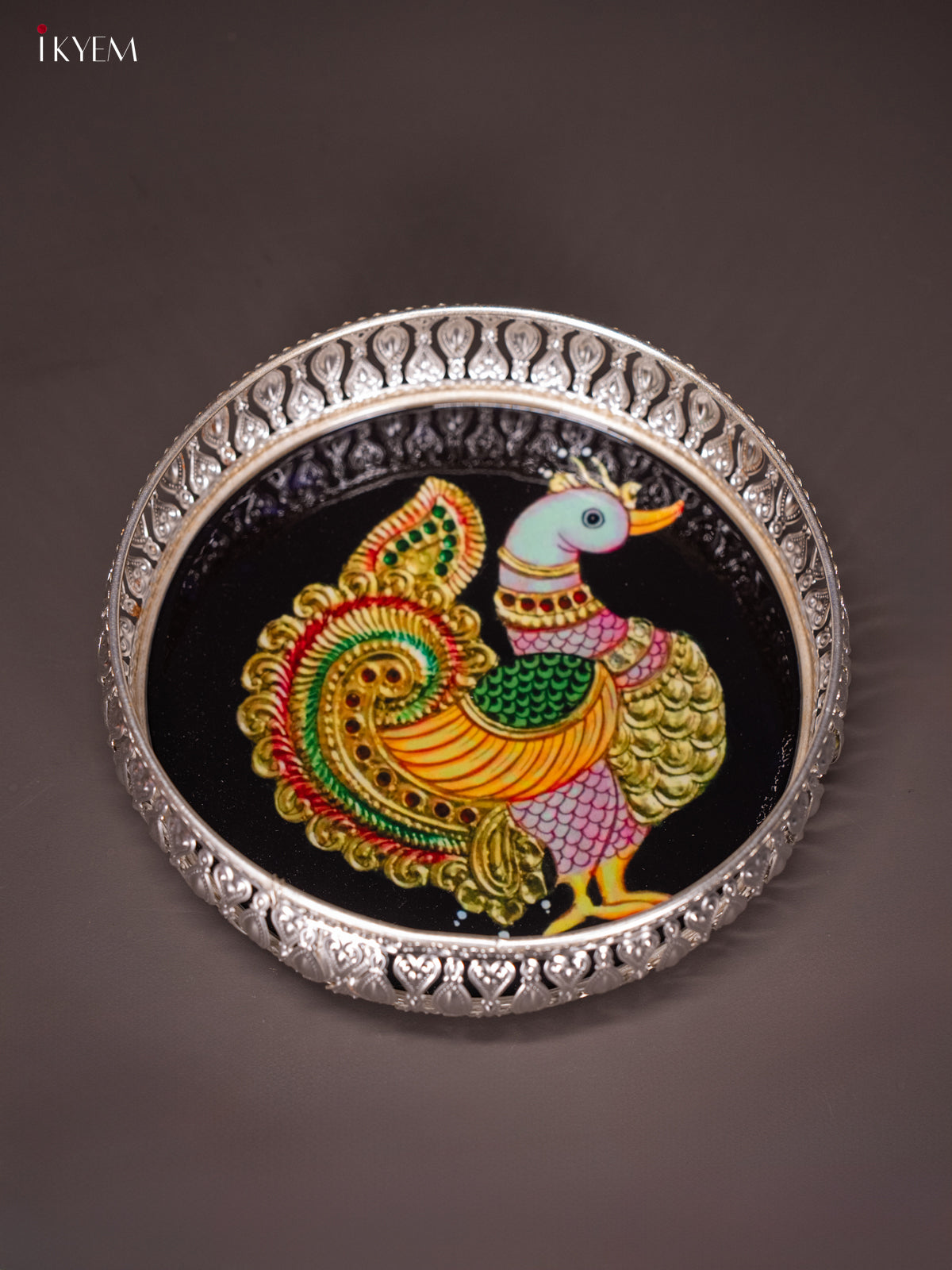 Digital Printed German Silver Tray - Annapakshi - Black - 8 Inches