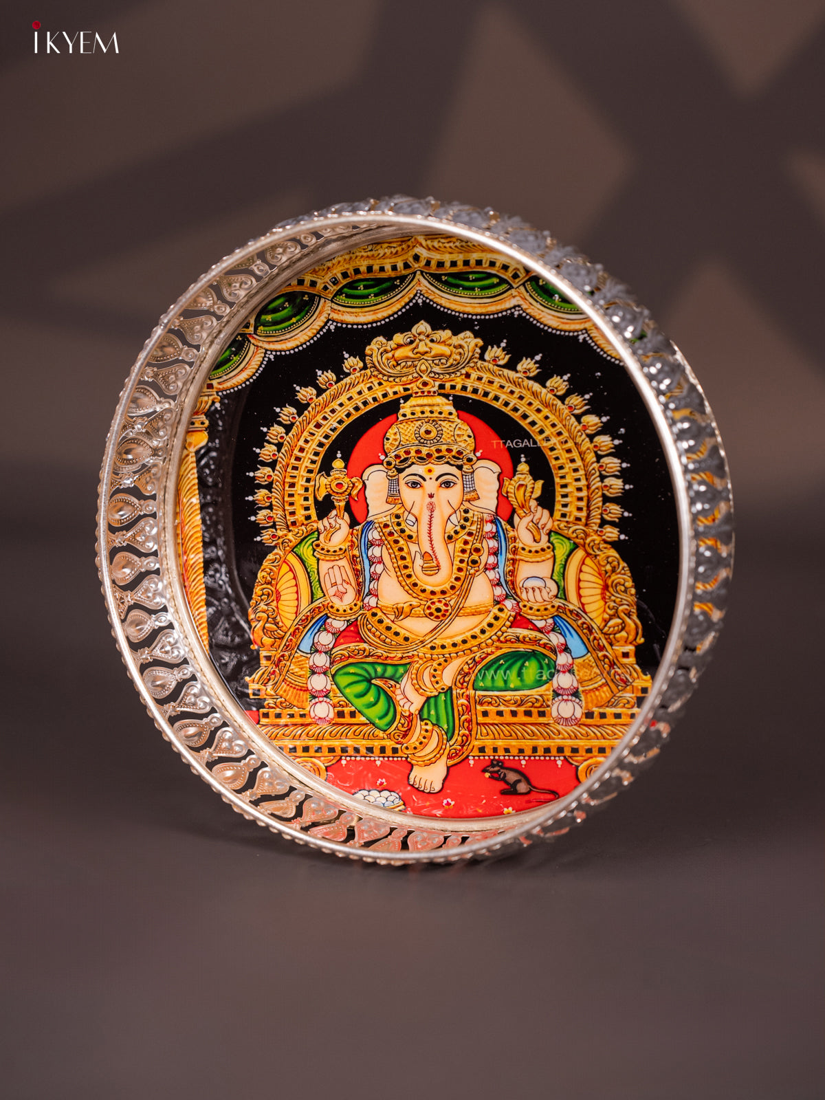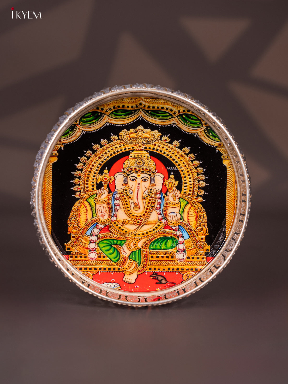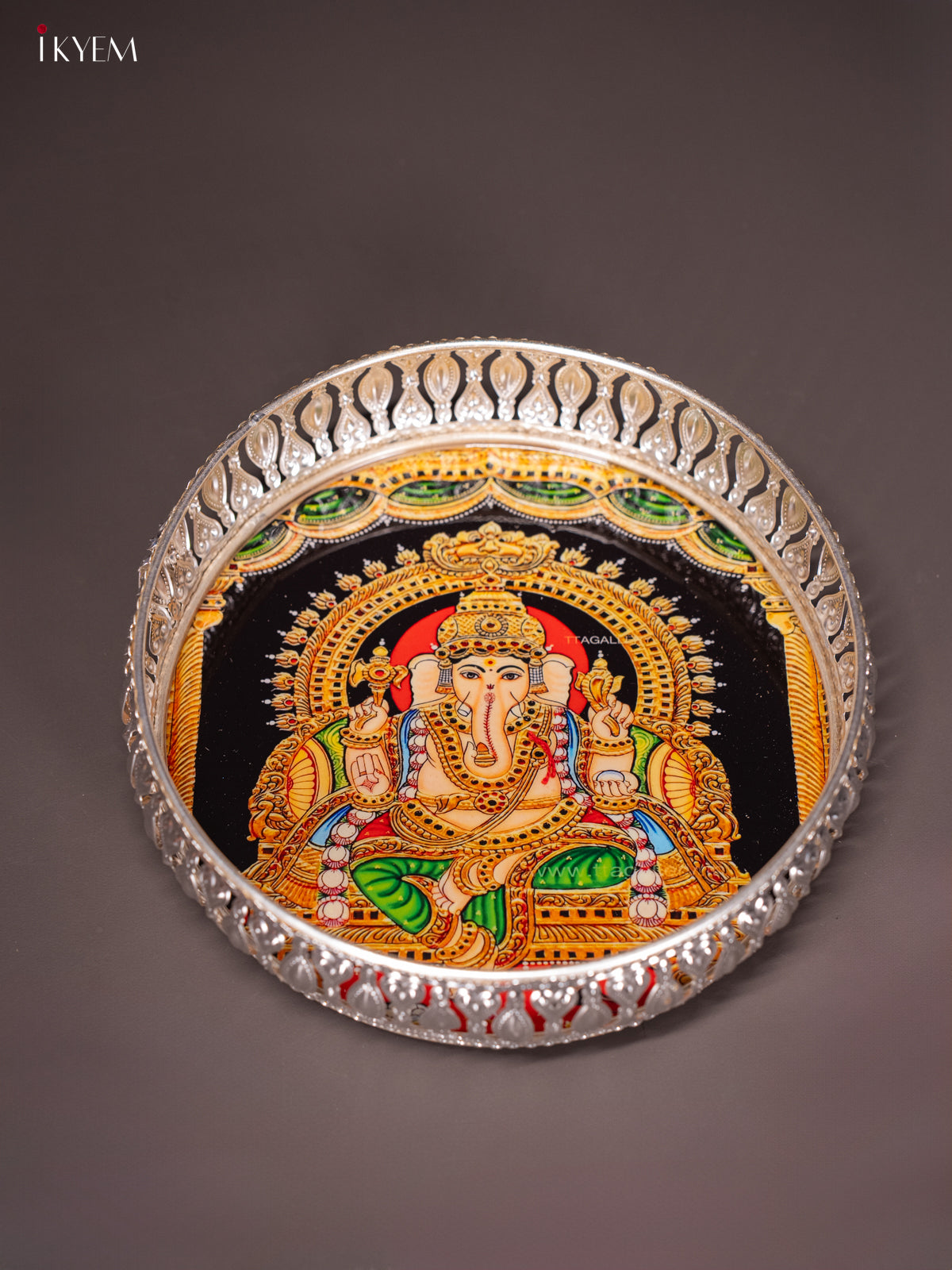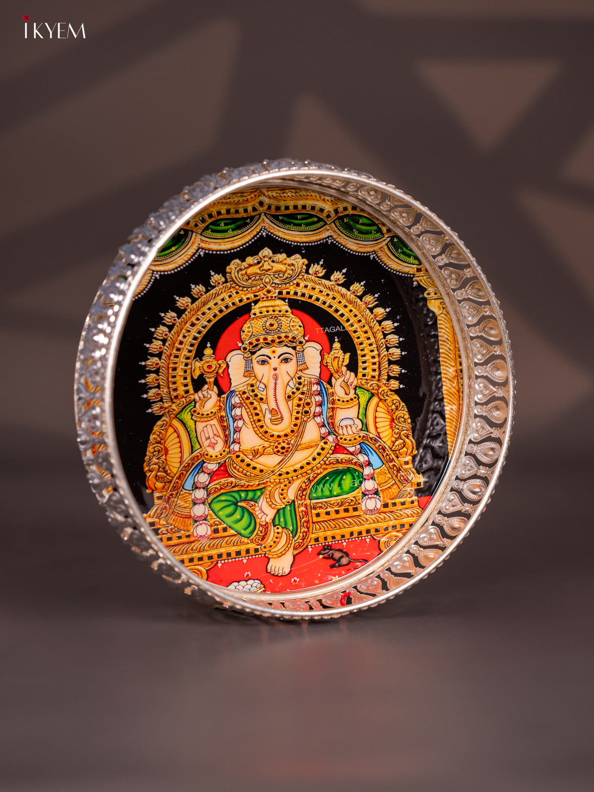 Digital Printed German Silver Tray - Ganesha - 8 Inches - KI12133