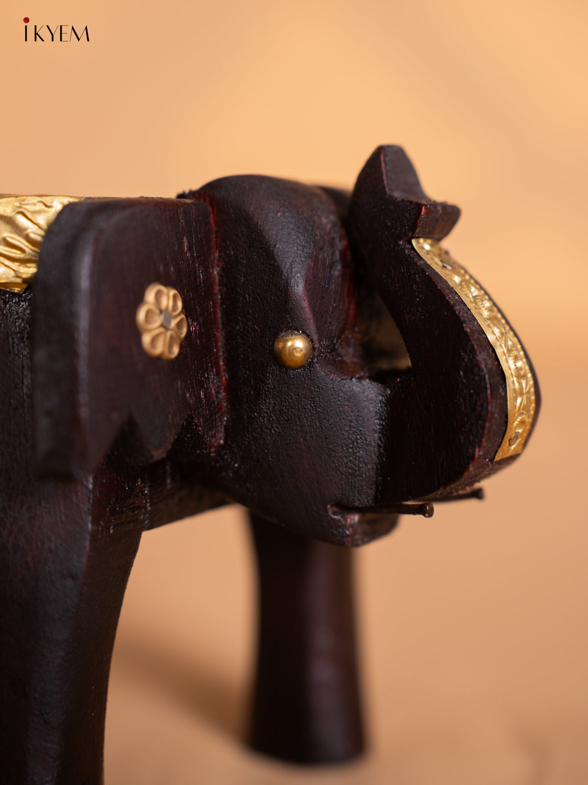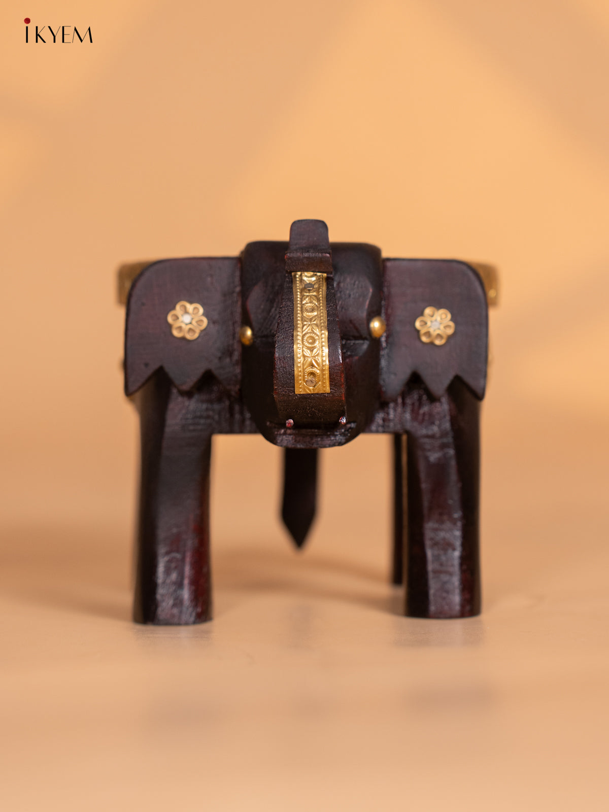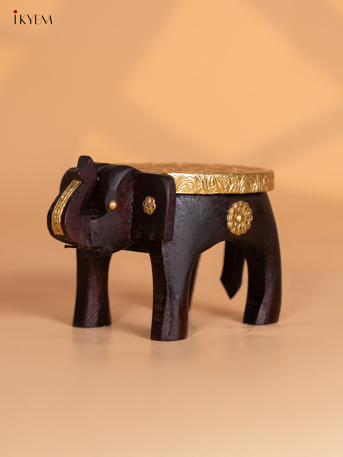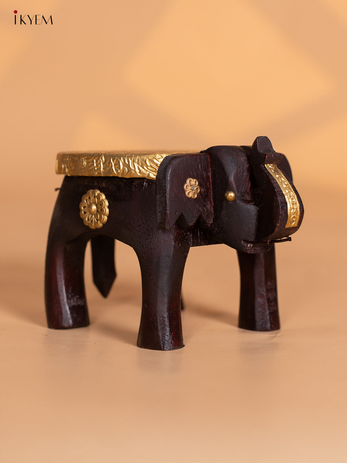 - This 4-inch wooden elephant stool features finely crafted brass fittings, blending traditional design with elegant decor.