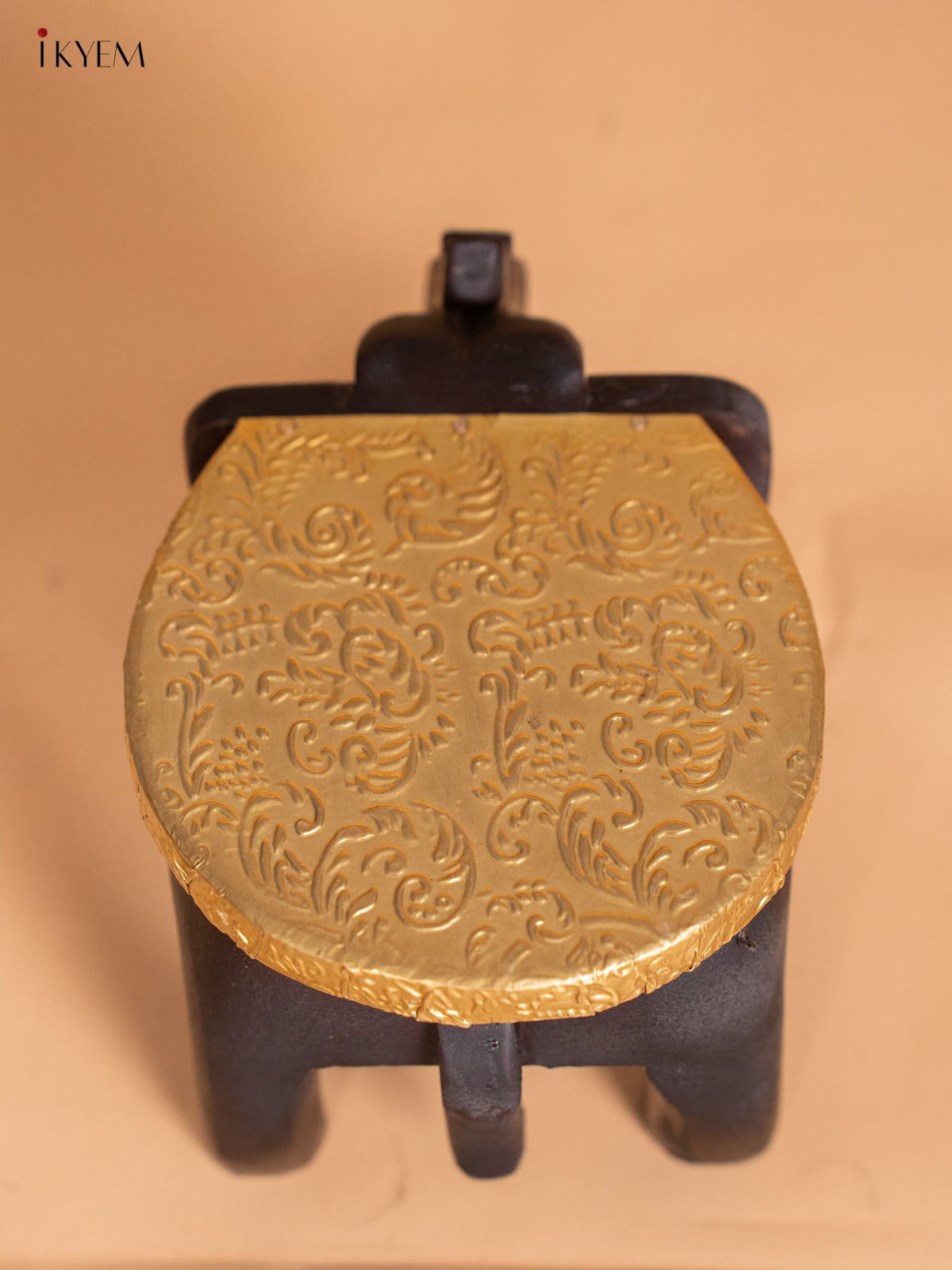 Brass Fitted Wooden Elephant Stool - 4 Inches - KI24135