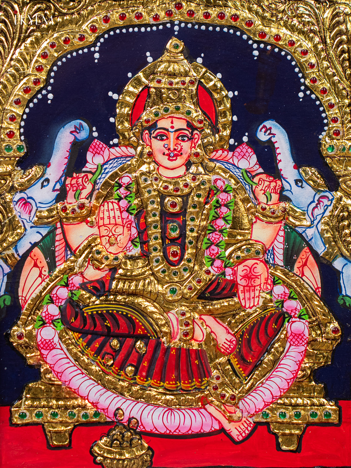 - This traditional Tanjore painting of Gajalakshmi is the perfect addition to any pooja room.