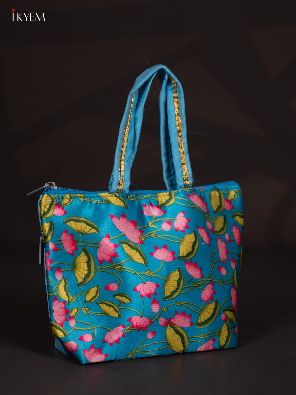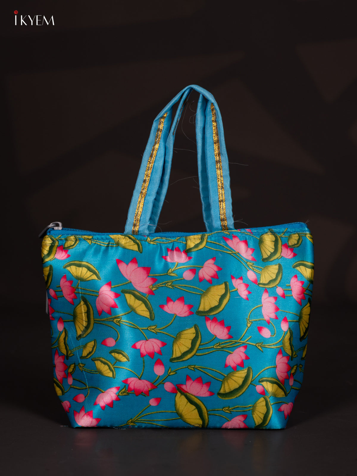 Pichwai Lotus Design Blue Handbag - 7.3 Inch - KJ04155