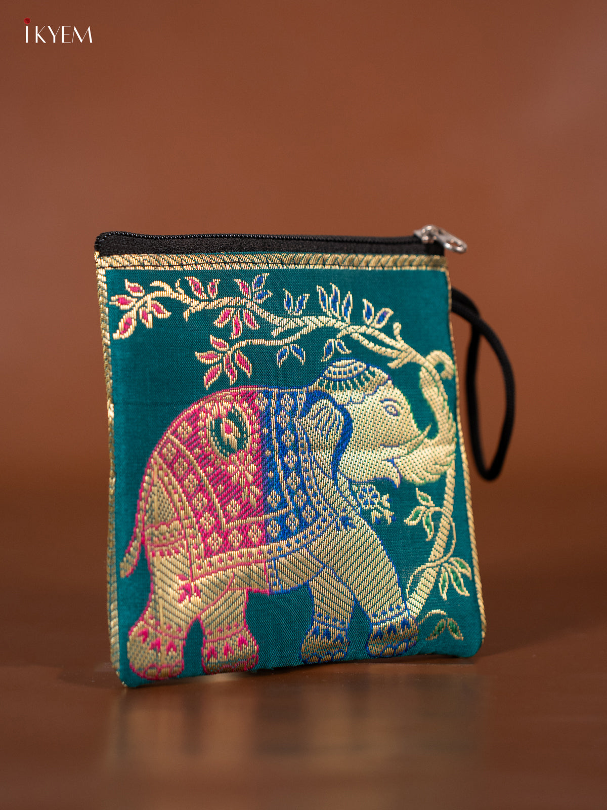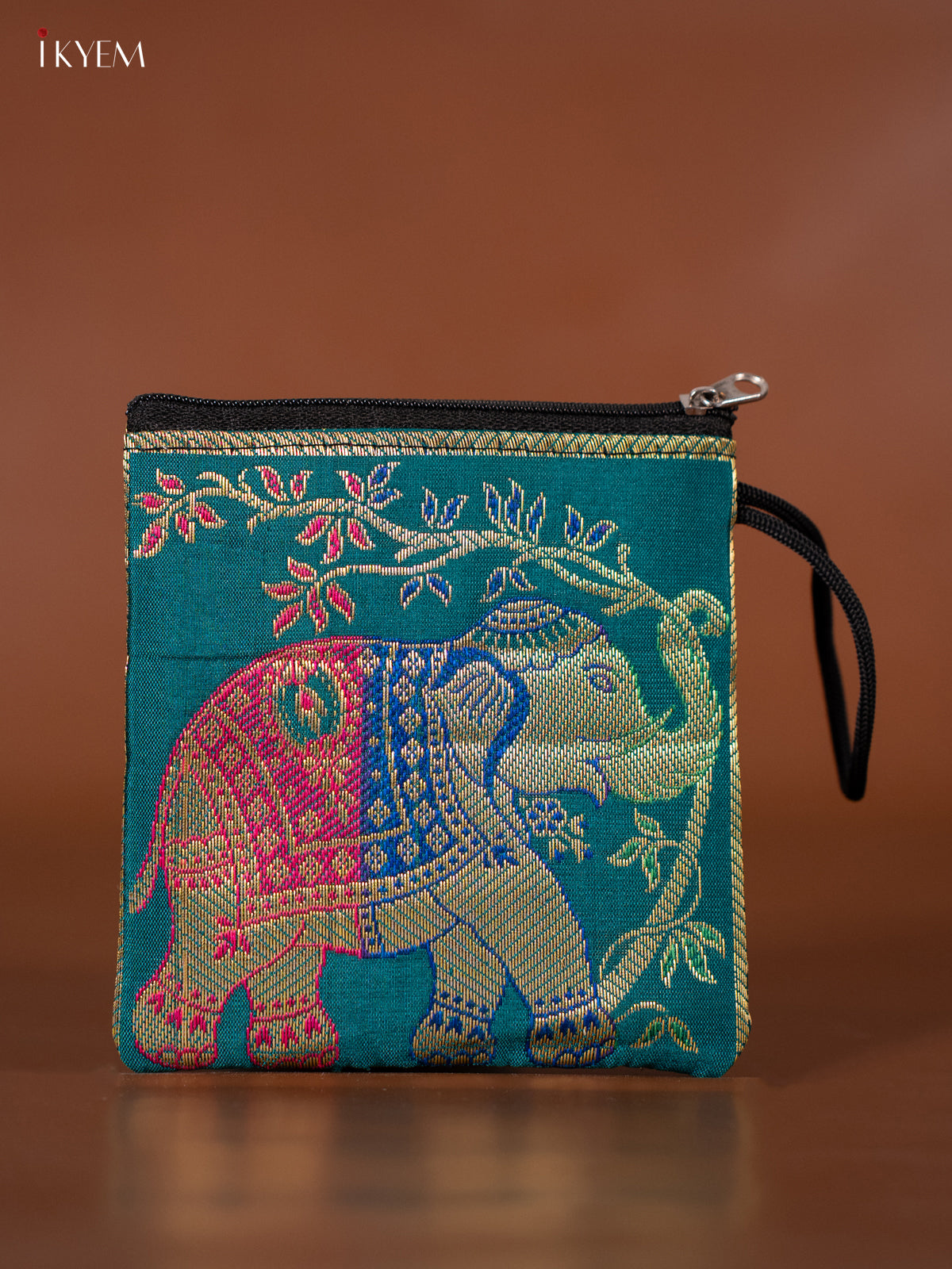 - This Elephant designed Banarasi Coin Pouch in green offers a stylish and practical way to carry coins.