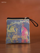 Elephant designed Banarasi Coin Pouch - Grey